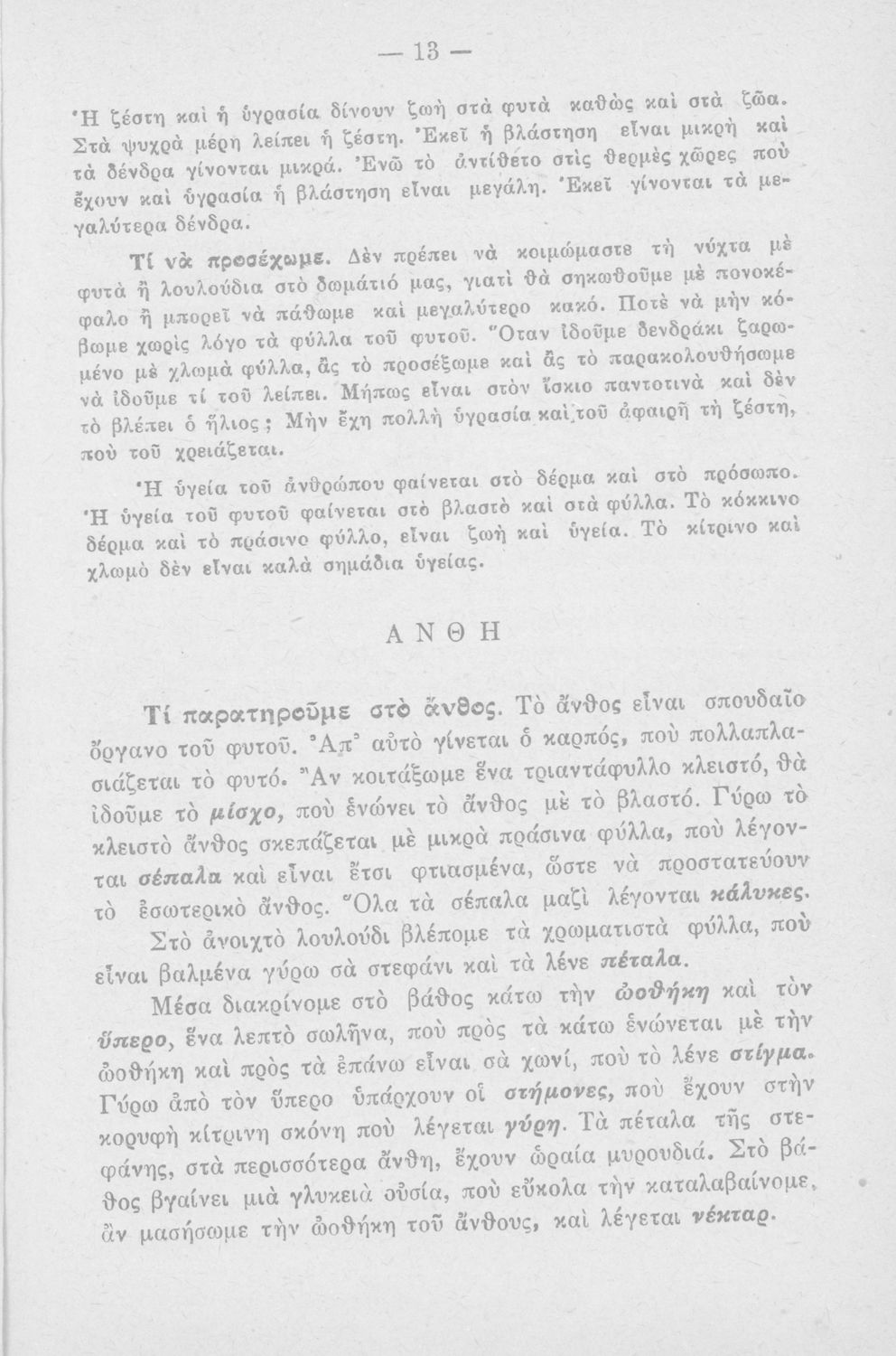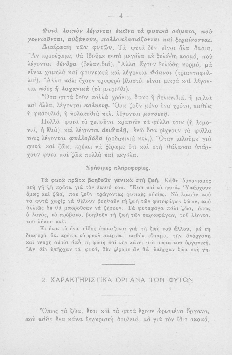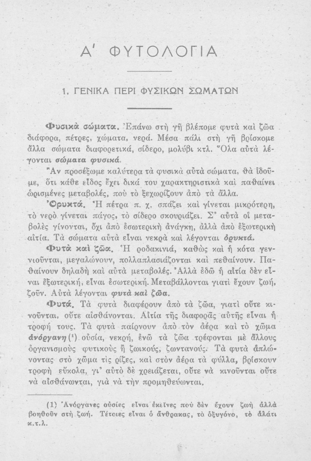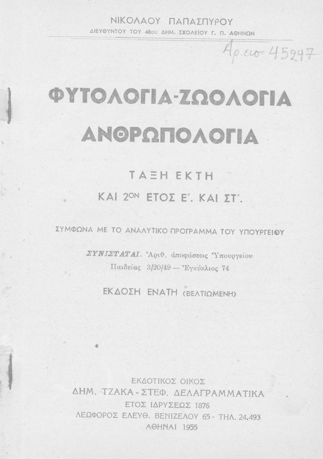 Φυτολογία- Ζωολογία Ανθρωπολογία, Τάξη έκτη και 2ον έτος Ε΄ και ΣΤ΄