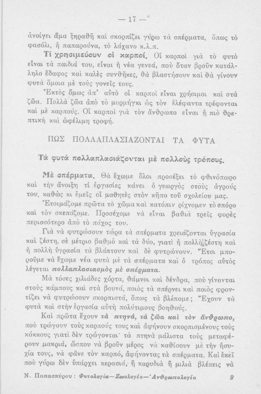 Τίτλος: Φυτολογία- Ζωολογία Ανθρωπολογία, Τάξη έκτη και 2ον έτος Ε΄ και ΣΤ΄