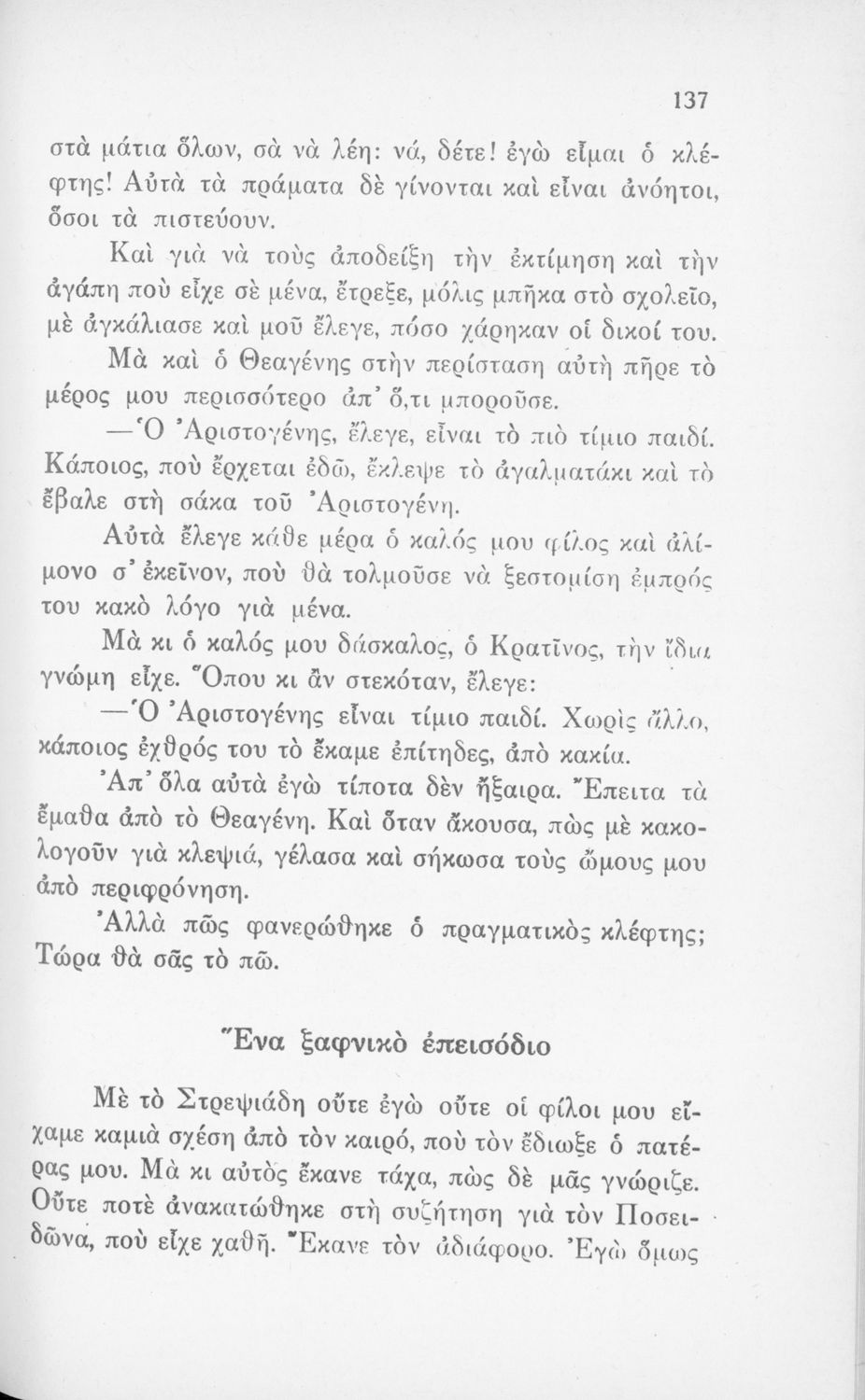Αναγνωστικό Δ΄ Δημοτικού που περιέχει πεζά και ποιήματα εμπνευσμένα από την ελληνική ιστορία και μυθολογία, την κοινωνική ζωή και την ελληνική φύση.
