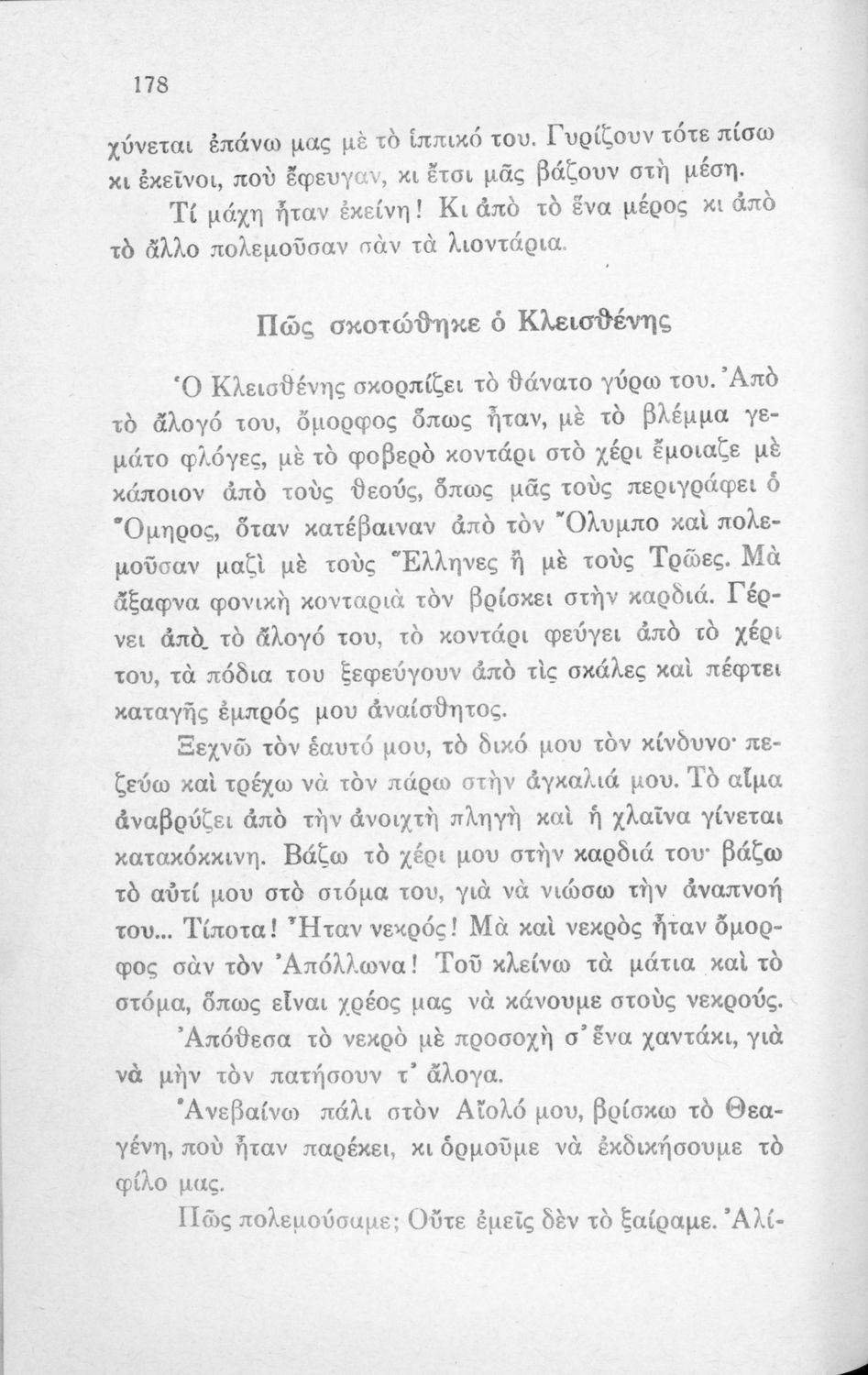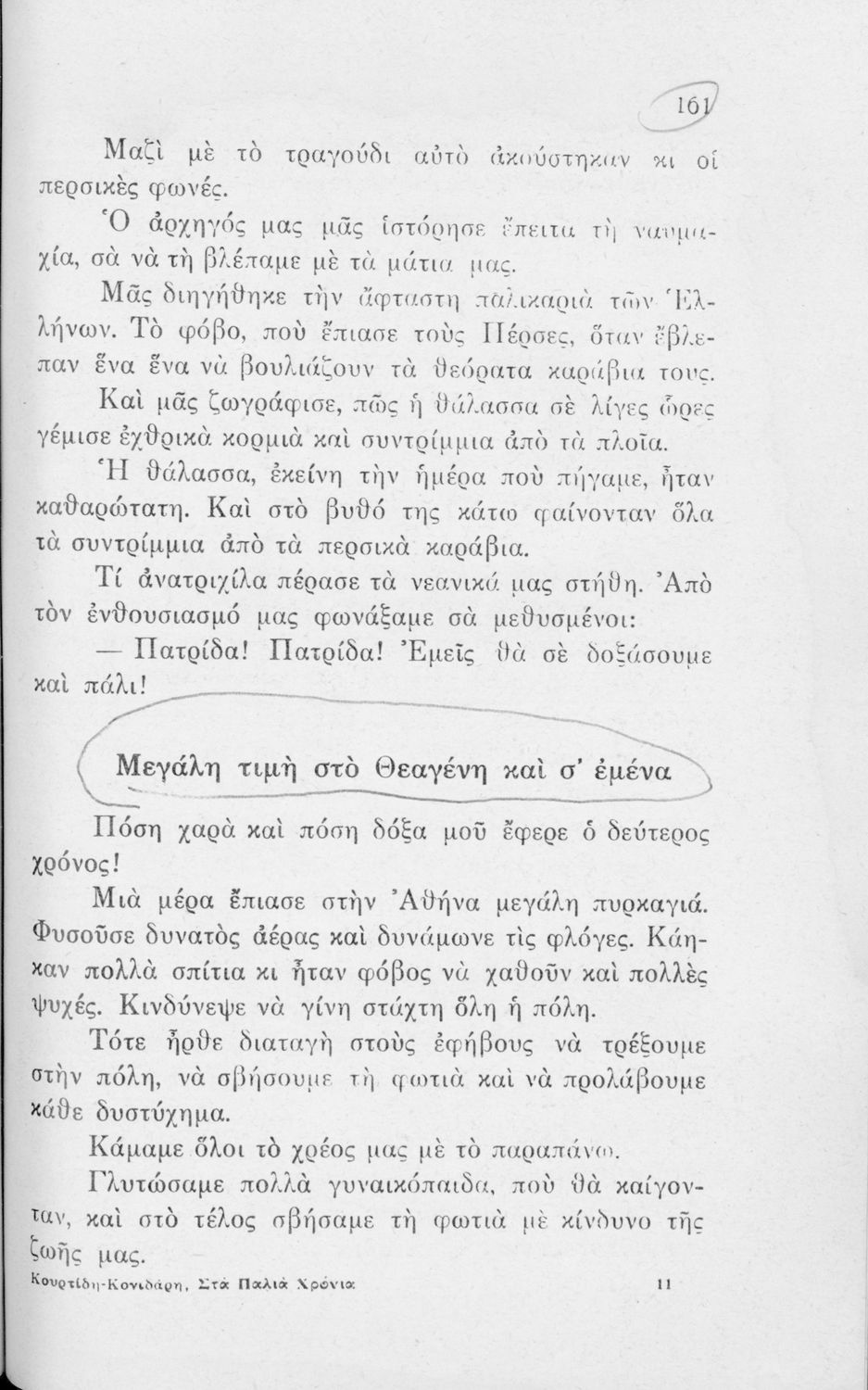 Αναγνωστικό Δ΄ Δημοτικού που περιέχει πεζά και ποιήματα εμπνευσμένα από την ελληνική ιστορία και μυθολογία, την κοινωνική ζωή και την ελληνική φύση.