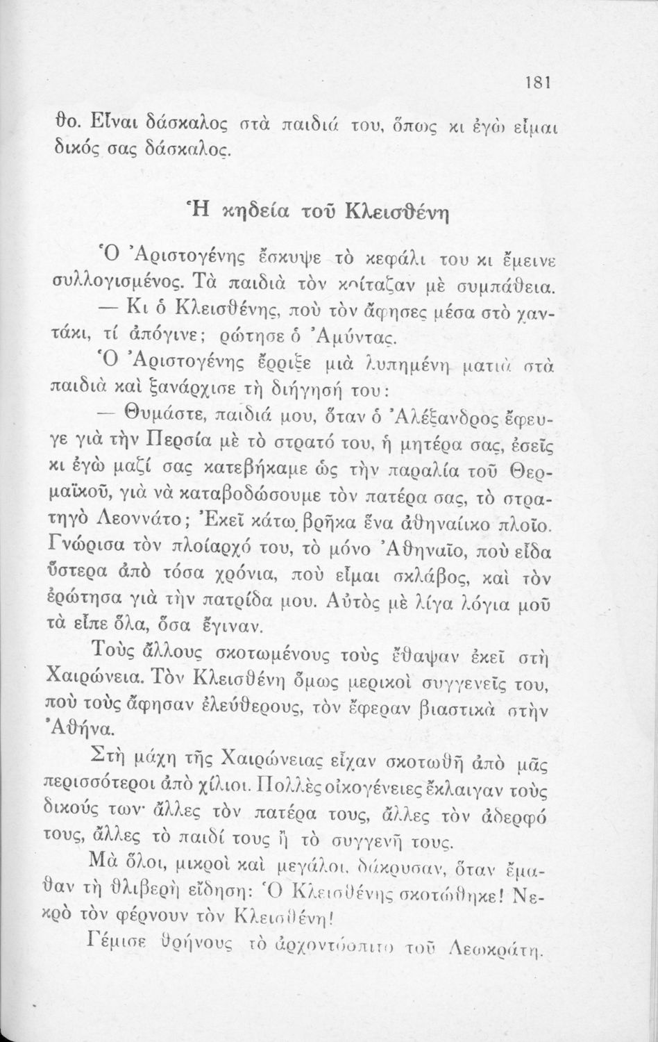 Αναγνωστικό για τους μαθητές της Δ' τάξης του Δημοτικού. Περιέχει ιστορίες από την αρχαία Ελλάδα για την εκμάθηση της Ελληνικής γλώσσας.