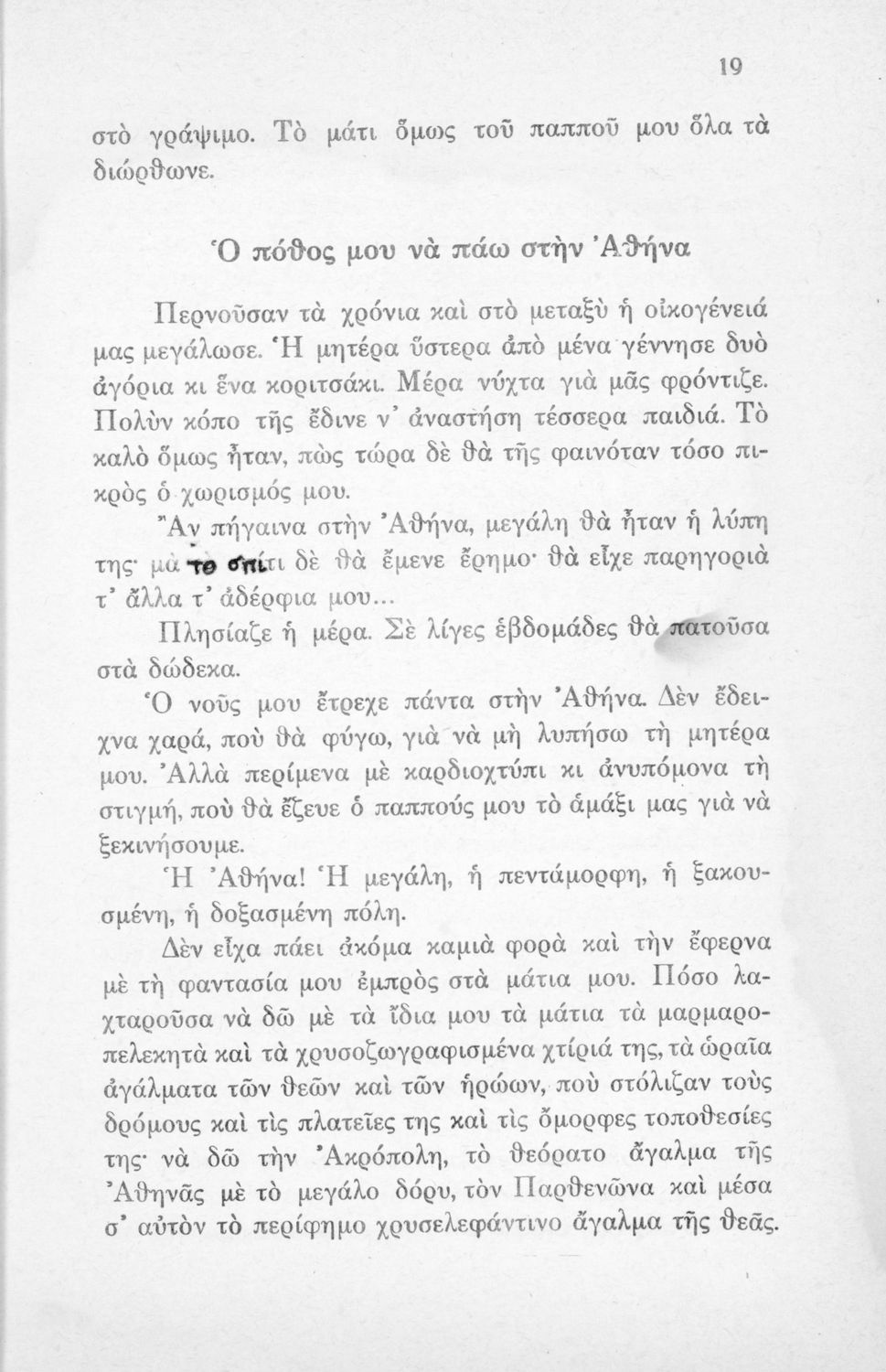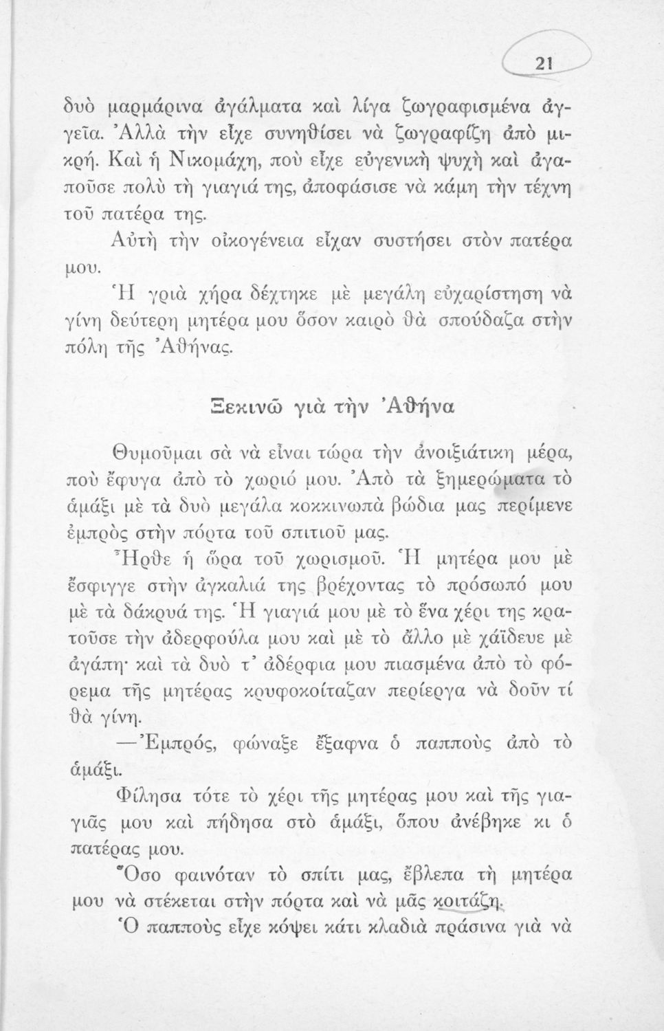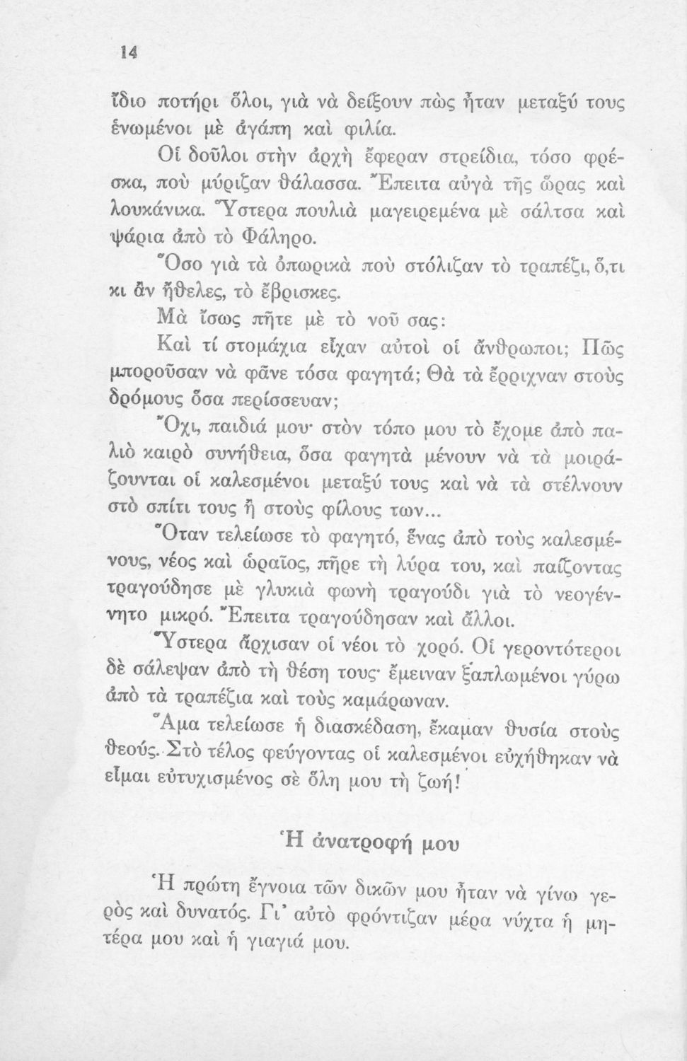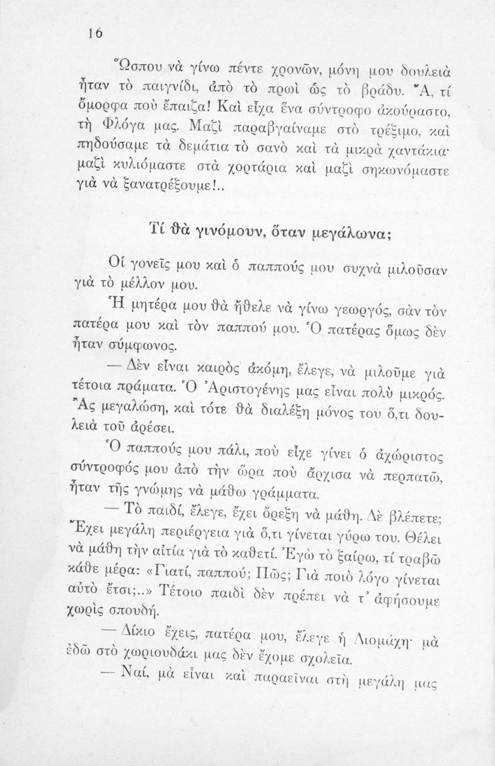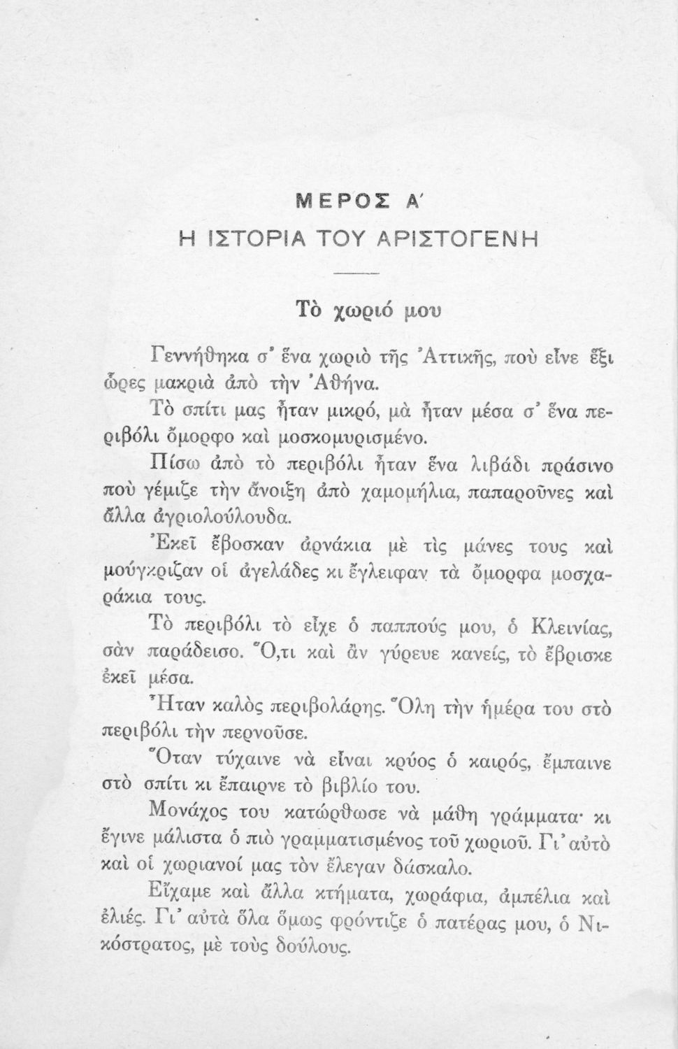 Αναγνωστικό Δ΄ Δημοτικού που περιέχει πεζά και ποιήματα εμπνευσμένα από την ελληνική ιστορία και μυθολογία, την κοινωνική ζωή και την ελληνική φύση.
