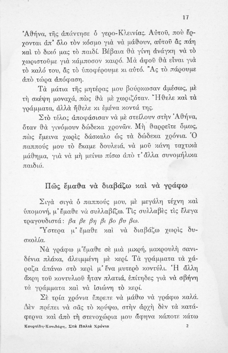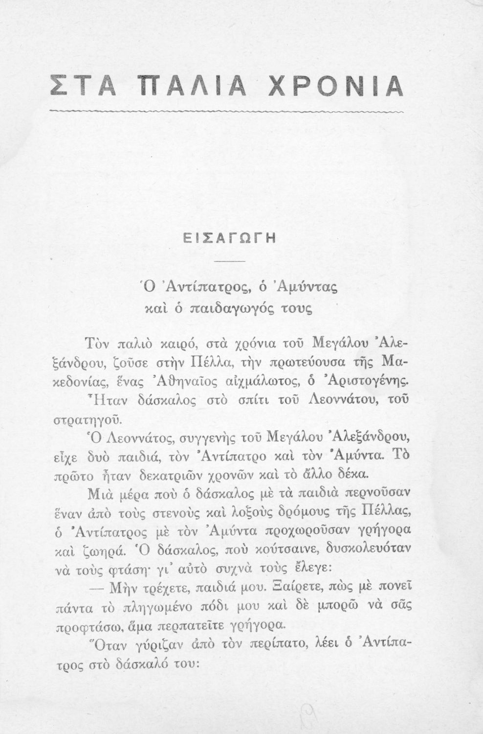 Στα παλιά χρόνια. Αναγνωστικό Δ' Δημοτικού