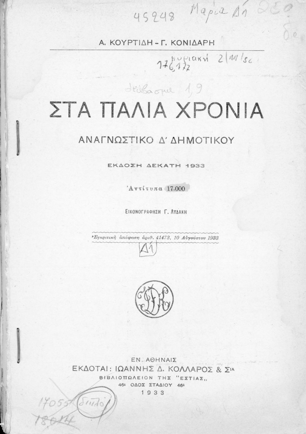 Τίτλος: Στα παλιά χρόνια. Αναγνωστικό Δ' Δημοτικού