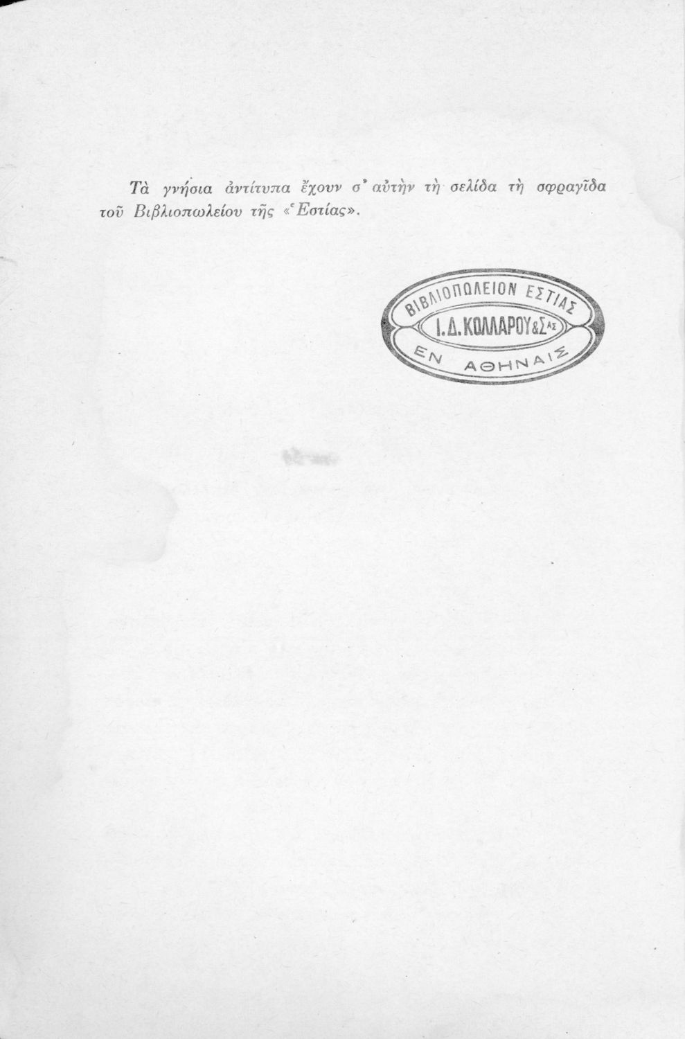 Εκδότης: Ιωάννης Δ. Κολλάρος και ΣΙΑ, Βιβλιοπωλείο της "Εστίας"