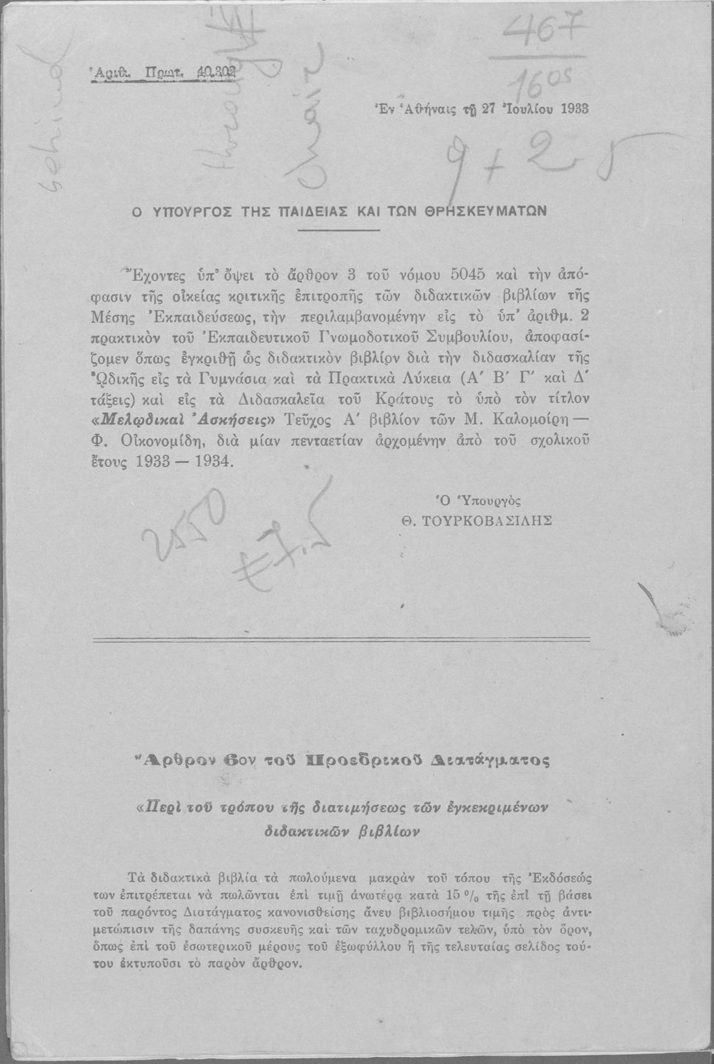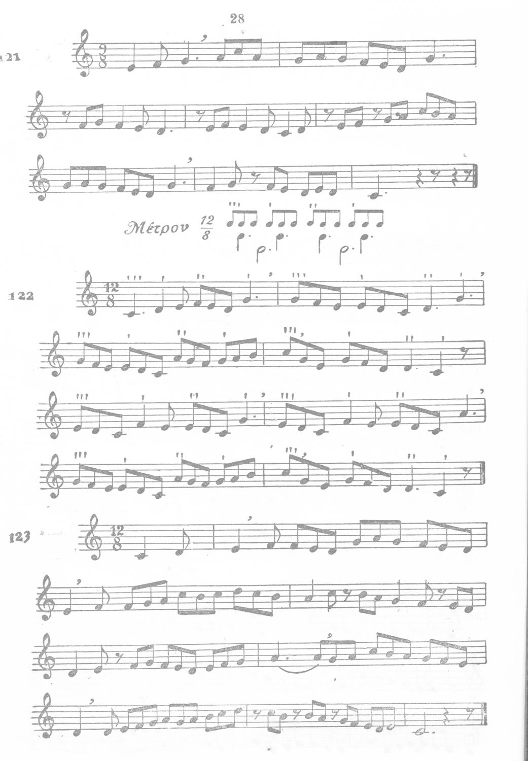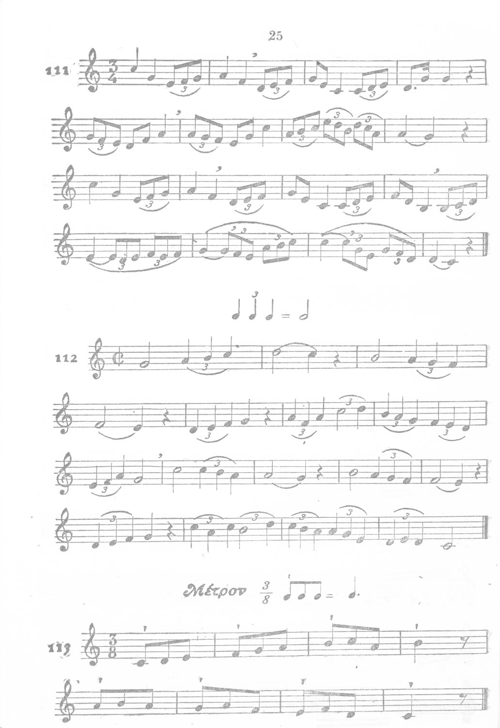 Σχολικό εγχειρίδιο Μουσικής για την Α', Β', Γ΄, Δ' τάξη Γυμνασίου, Πρακτικών Λυκείων και Διδασκαλείων. Περιέχει ασκήσεις μελωδικές, χωρίς θεωρία.