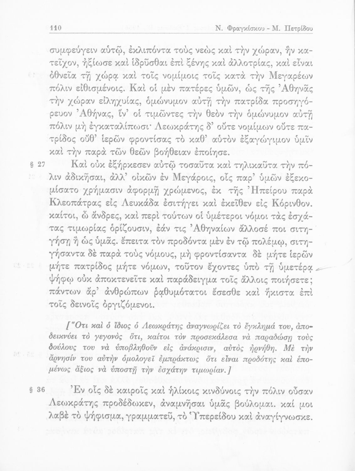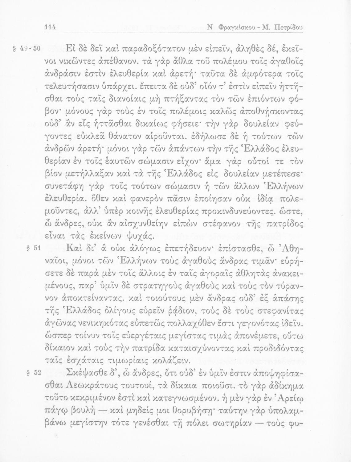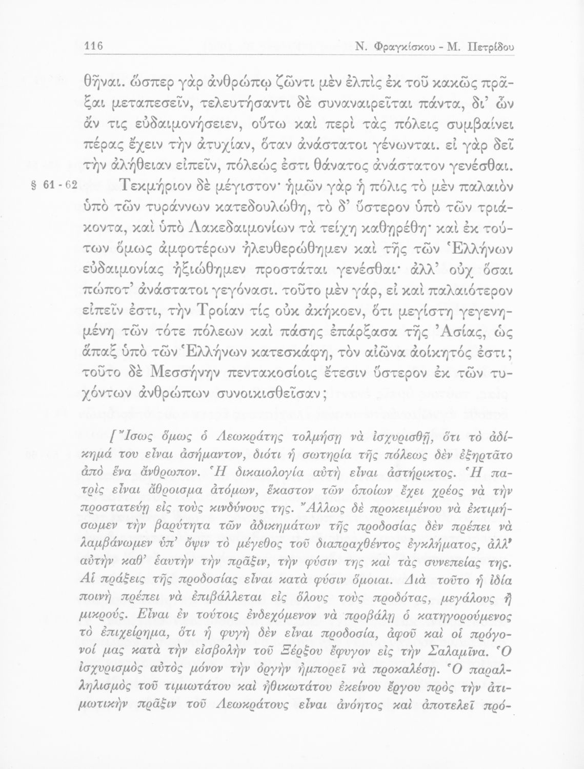 Λυκούργος, Ισοκράτης, Νικ. Εμμ. Φραγκίσκος (σχόλια)
