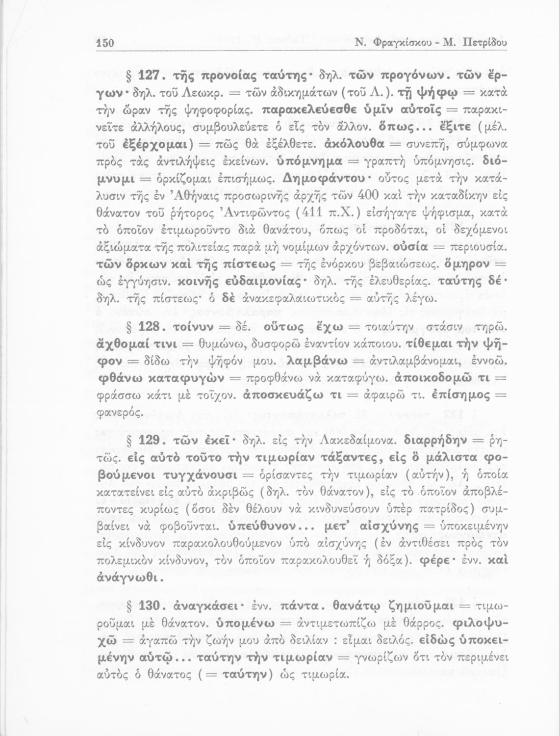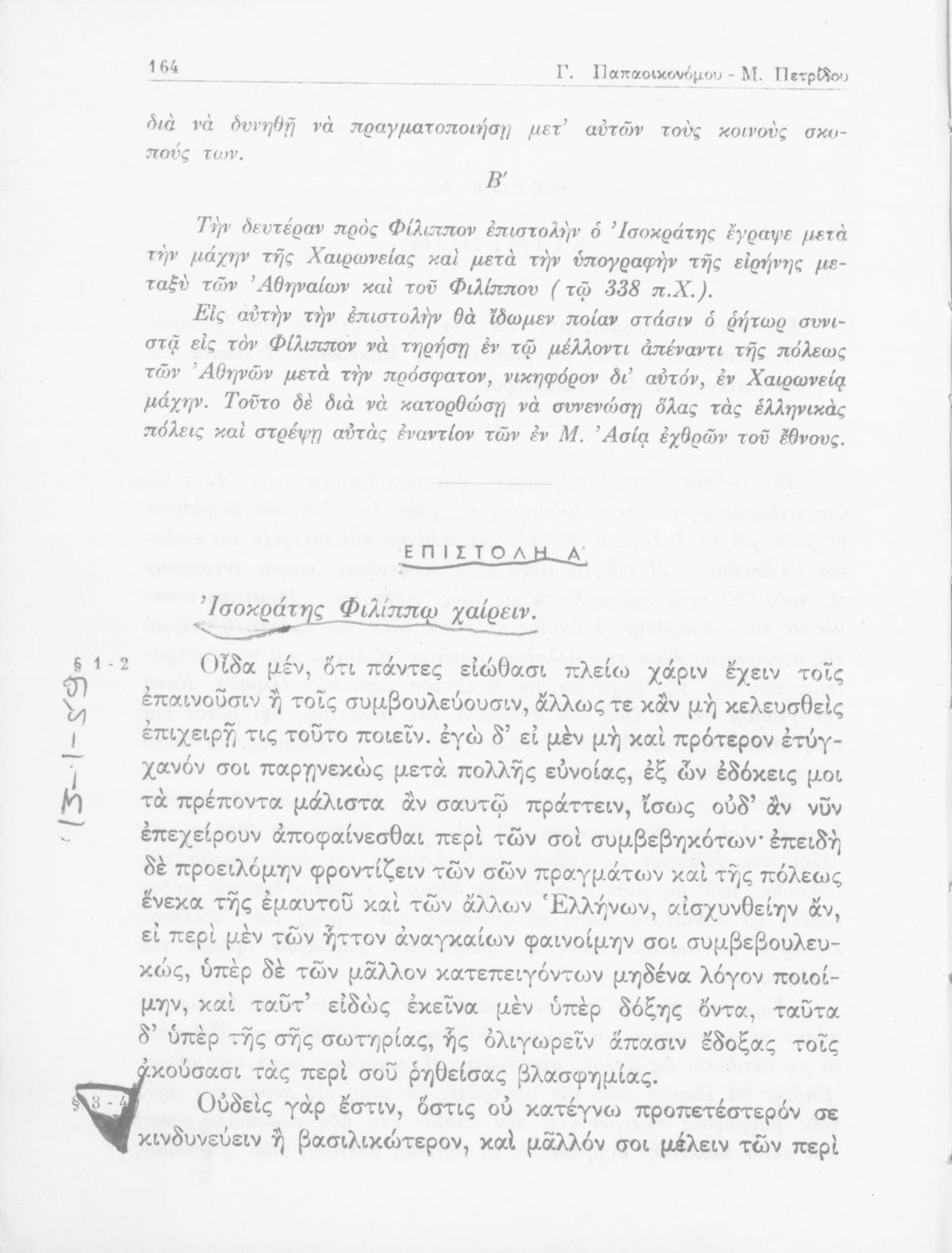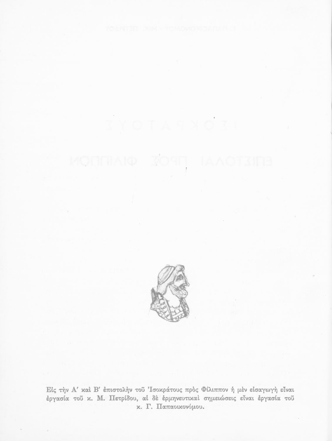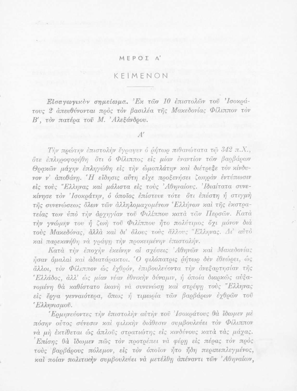 Σχολικό εγχειρίδιο Αρχαίων Ελληνικών Γυμνασίου που περιέχει τους Ολυνθιακούς Α΄ και Β΄ και τους Φιλιππικούς Α΄ και Β΄ του Δημοσθένη, το Λόγο κατά Λεωκράτους του Λυκούργου και τις Επιστολές προς Φίλιππο του Ισοκράτη, και ερμηνευτικά και ετυμολογικά σχόλια.