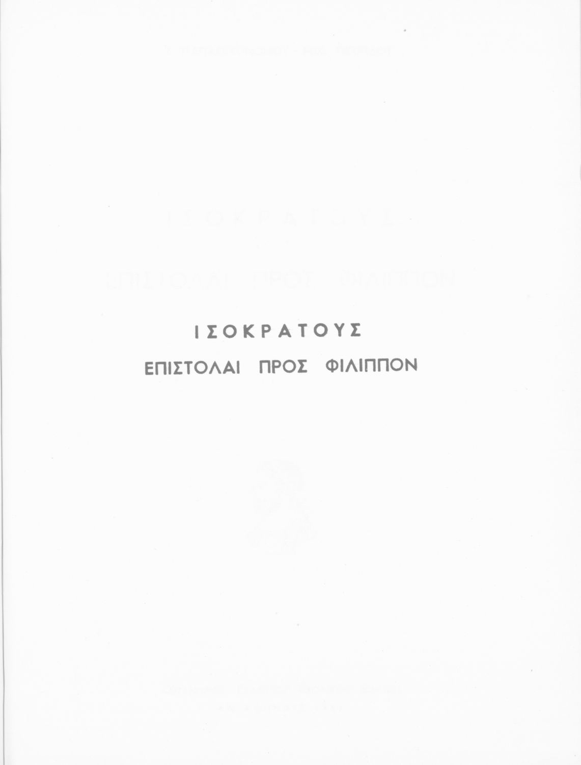 Βαθμίδα εκπαίδευσης: Δευτεροβάθμια Μάθημα: Αρχαία Ελληνικά Γλώσσα: Απλή καθαρεύουσα Παρουσίαση περιεχομένου: Σχολικό εγχειρίδιο Αρχαίων Ελληνικών Γυμνασίου που περιέχει τους Ολυνθιακούς Α΄ και Β΄ και τους Φιλιππικούς Α΄ και Β΄ του Δημοσθένη, το Λόγο κατά Λεωκράτους του Λυκούργου και τις Επιστολές προς Φίλιππο του Ισοκράτη, και ερμηνευτικά και ετυμολογικά σχόλια. |