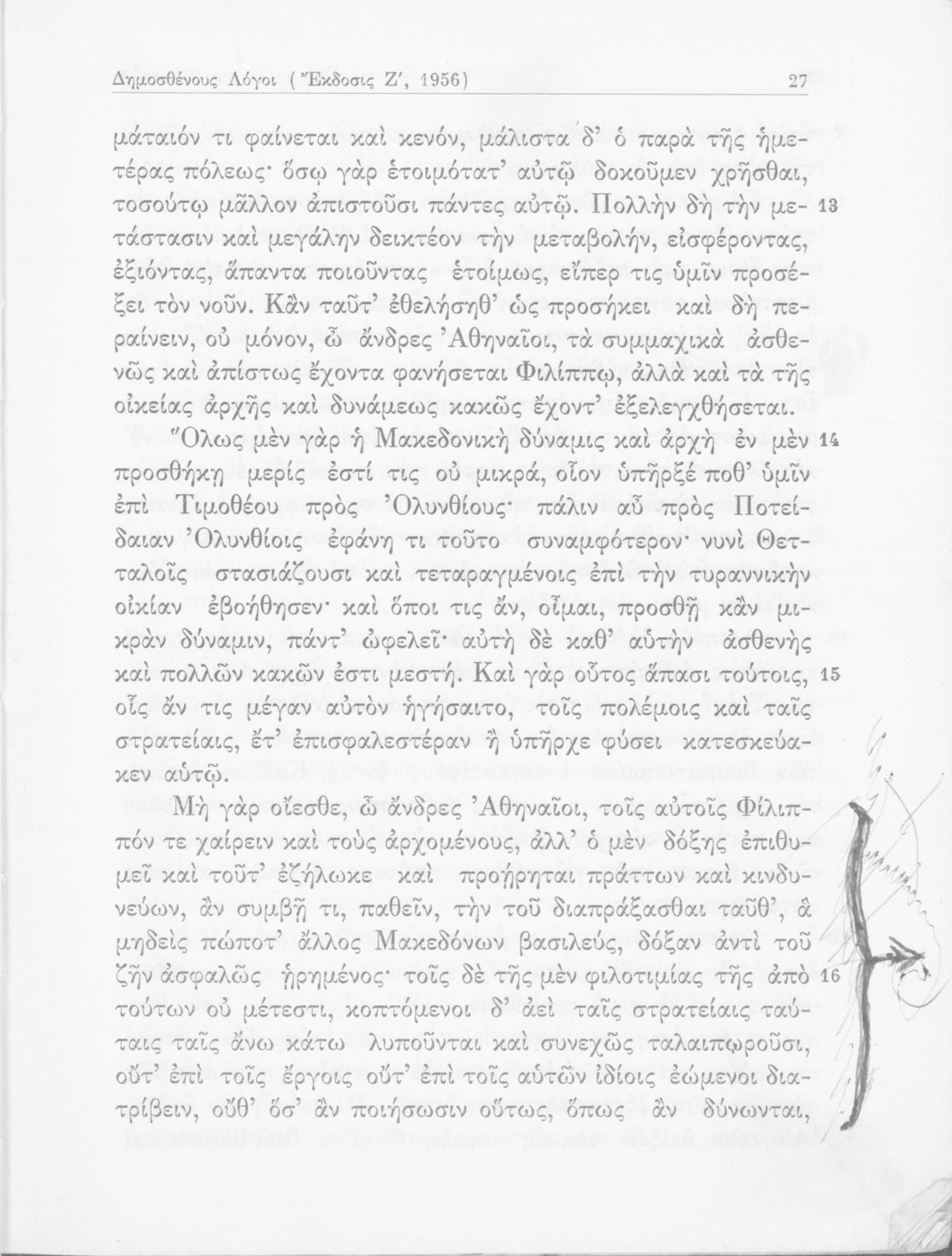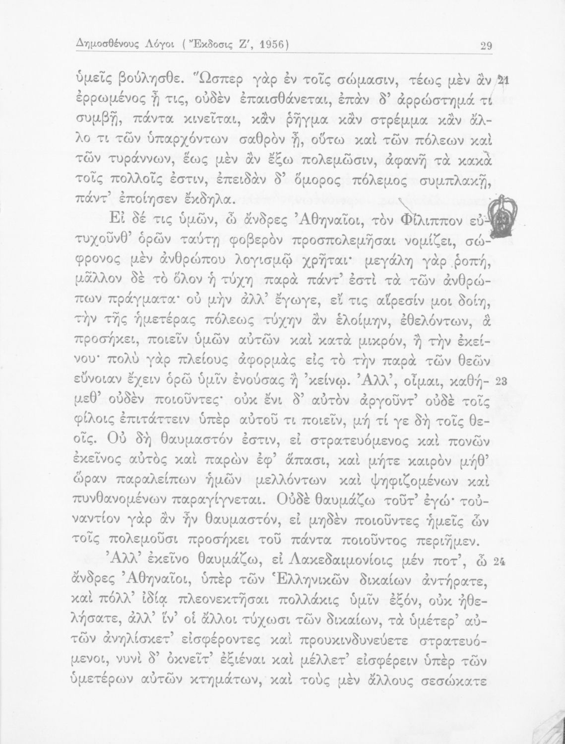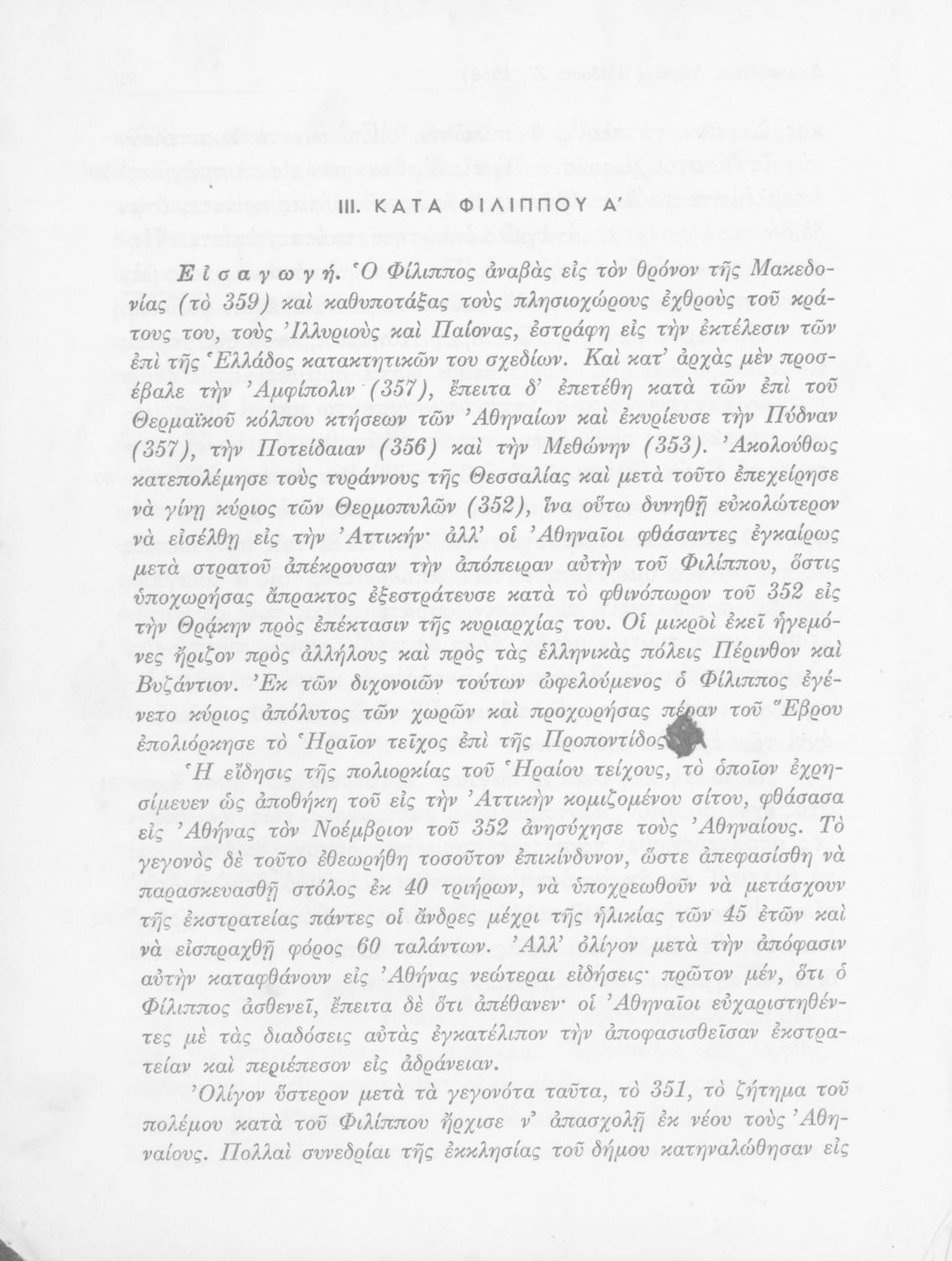 Σχολικό εγχειρίδιο Αρχαίων Ελληνικών Γυμνασίου που περιέχει τους Ολυνθιακούς Α΄ και Β΄ και τους Φιλιππικούς Α΄ και Β΄ του Δημοσθένη, το Λόγο κατά Λεωκράτους του Λυκούργου και τις Επιστολές προς Φίλιππο του Ισοκράτη, και ερμηνευτικά και ετυμολογικά σχόλια.
