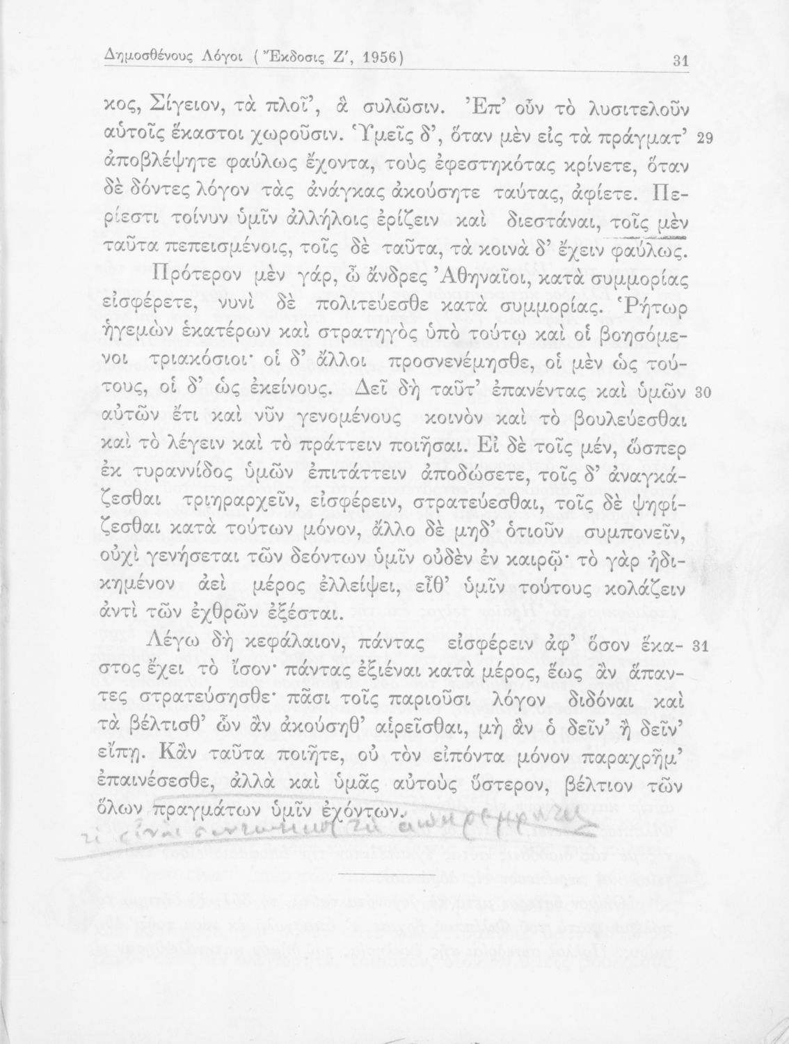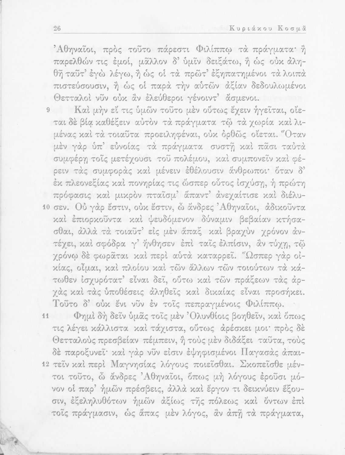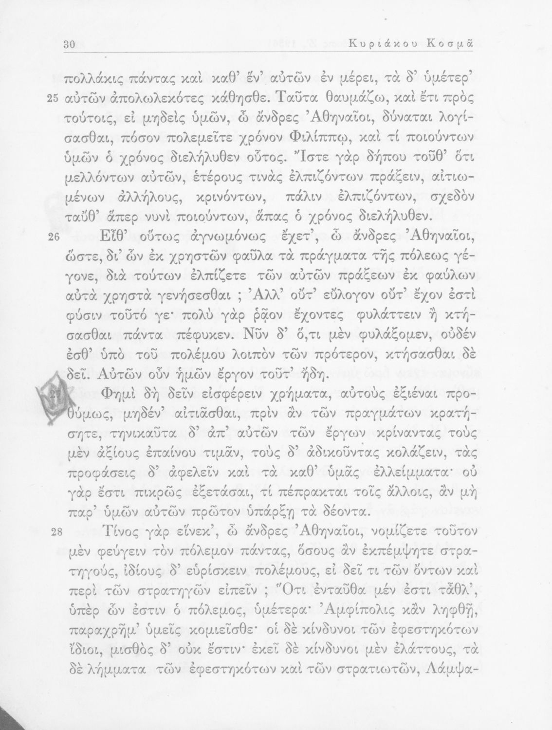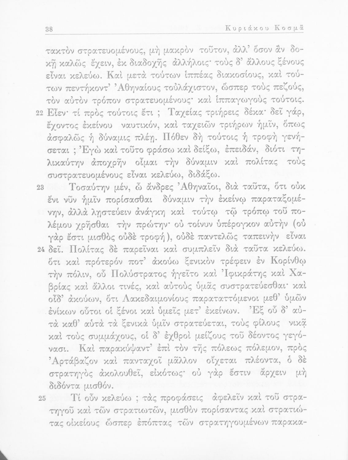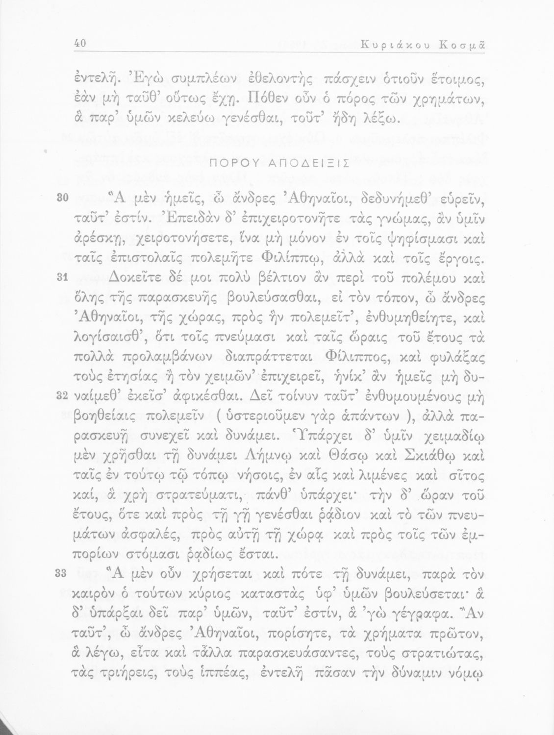 Δημοσθένης, Λυκούργος, Ισοκράτης, Κυριάκος Κοσμάς, Νικ. Φραγκίσκος, Μιχ. Περίδης, Γ. Παπαοικονόμου (σχόλια)