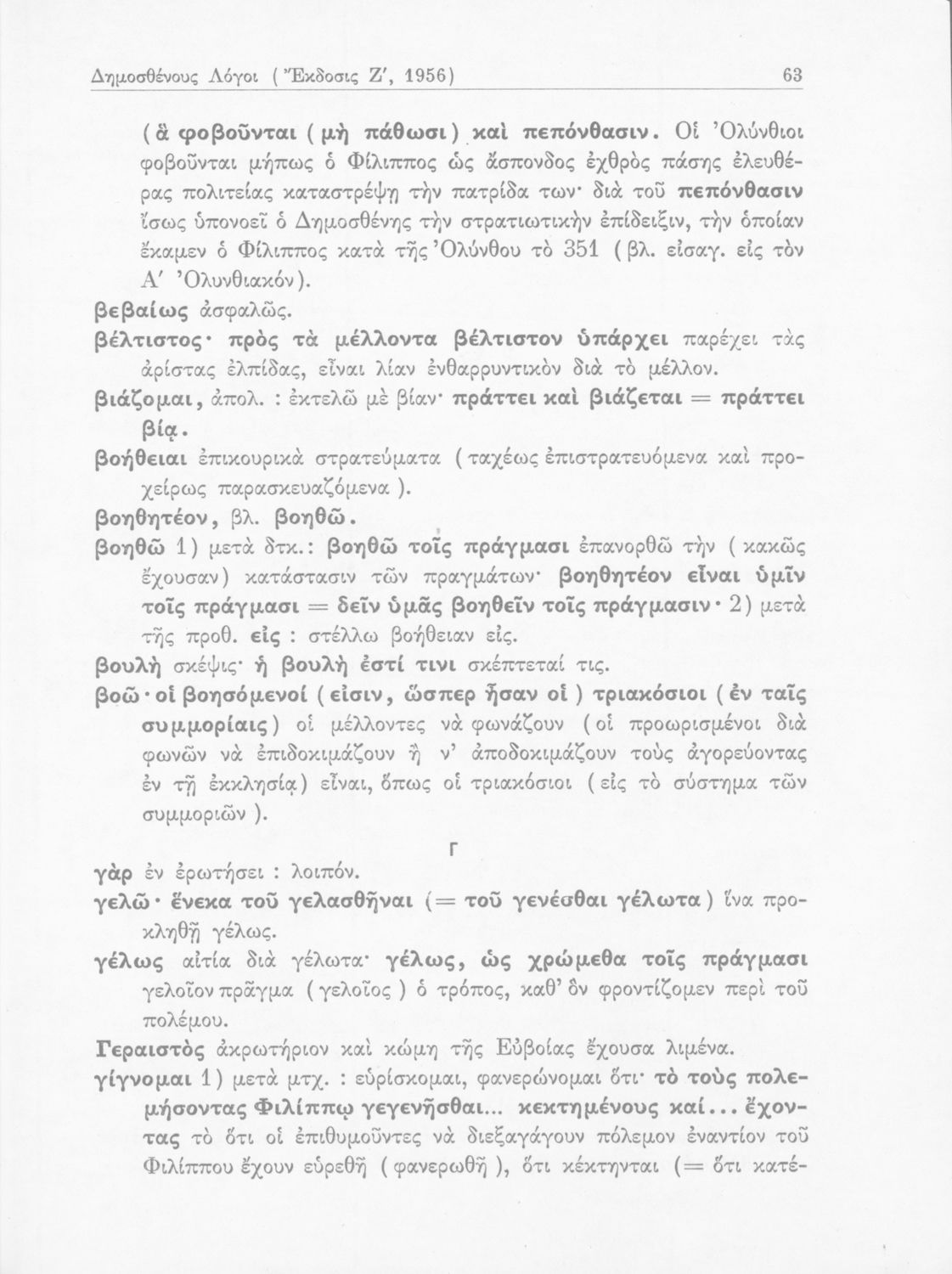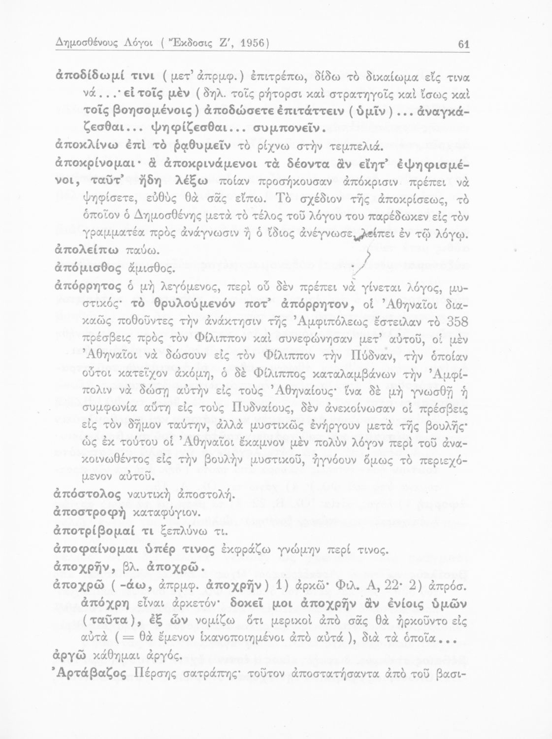 Σχολικό εγχειρίδιο Αρχαίων Ελληνικών Γυμνασίου που περιέχει τους Ολυνθιακούς Α΄ και Β΄ και τους Φιλιππικούς Α΄ και Β΄ του Δημοσθένη, το Λόγο κατά Λεωκράτους του Λυκούργου και τις Επιστολές προς Φίλιππο του Ισοκράτη, και ερμηνευτικά και ετυμολογικά σχόλια.