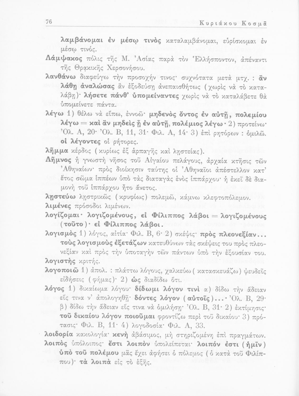 Δημοσθένης, Λυκούργος, Ισοκράτης, Κυριάκος Κοσμάς, Νικ. Φραγκίσκος, Μιχ. Περίδης, Γ. Παπαοικονόμου (σχόλια)