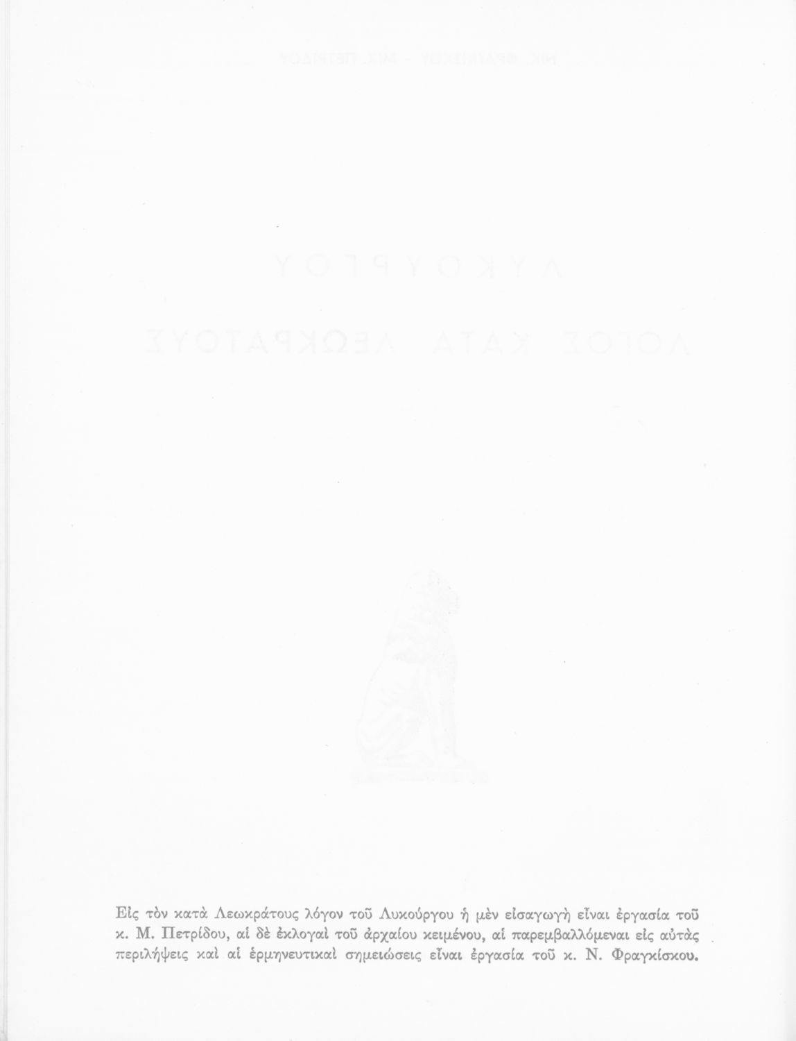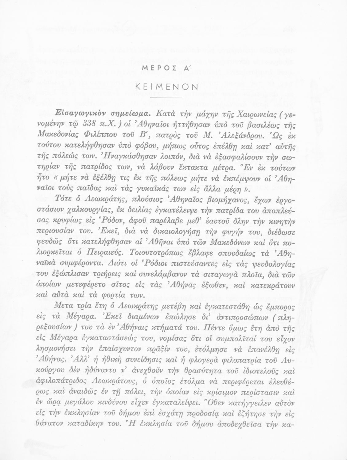 Σχολικό εγχειρίδιο Αρχαίων Ελληνικών ΣΤ΄ Γυμνασίου που περιέχει εισαγωγή στη ζωή και το έργο του Λυκούργου και του Ισοκράτη, το Λόγο κατά Λεωκράτους και τις Επιστολές του Ισοκράτη προς το Φίλιππο, ερμηνευτικά ...