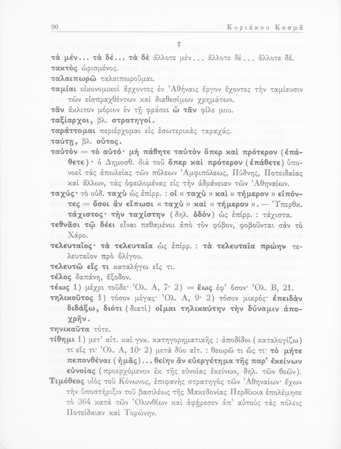 Δημοσθένης, Λυκούργος, Ισοκράτης, Κυριάκος Κοσμάς, Νικ. Φραγκίσκος, Μιχ. Περίδης, Γ. Παπαοικονόμου (σχόλια)