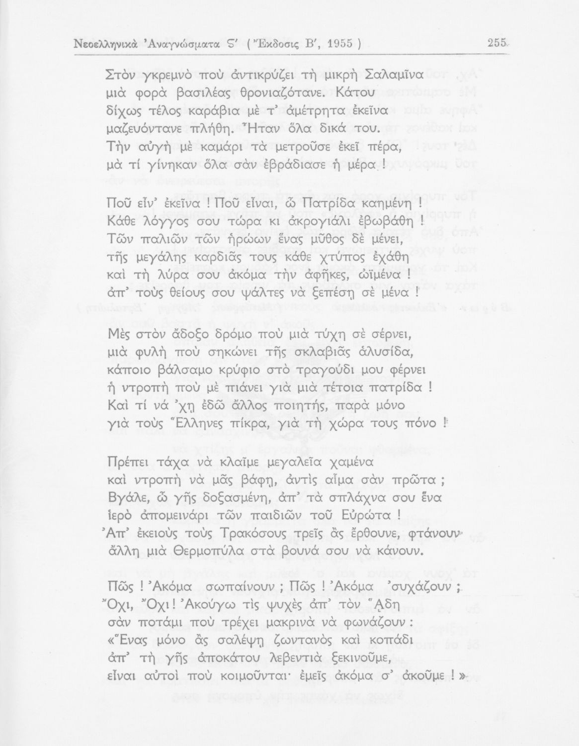 Σχολικό εγχειρίδιο Νέων Ελληνικών Γ' Ελληνικού Σχολείου που περιλαμβάνει ποιήματα και πεζά Ελλήνων συγγραφέων και δημοτικά τραγούδια εμπνευσμένα από την σύγχρονη ελληνική ιστορία, τη βυζαντινή ιστορία, την ...