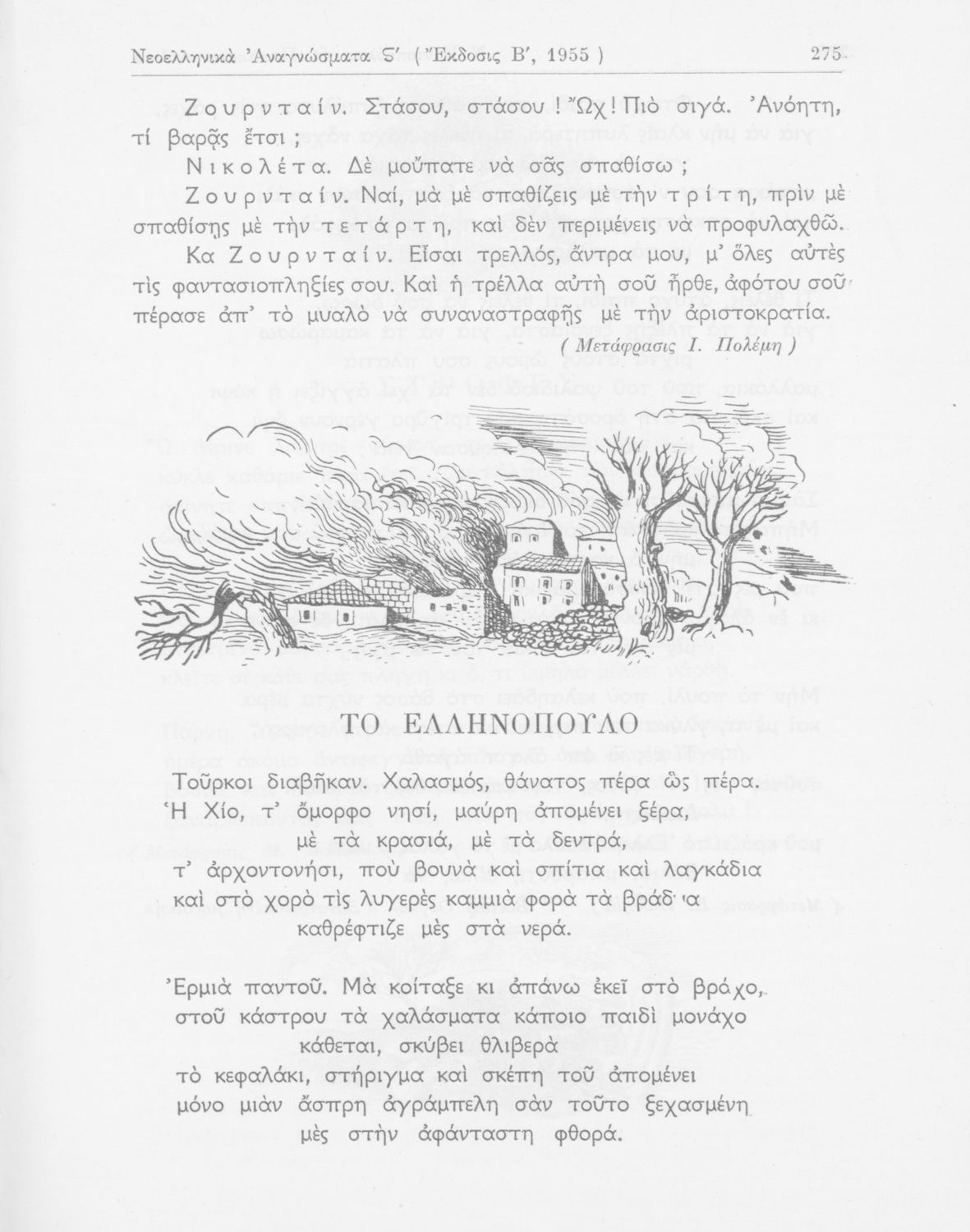 Σχολικό εγχειρίδιο Νέων Ελληνικών Γ' Ελληνικού Σχολείου που περιλαμβάνει ποιήματα και πεζά Ελλήνων συγγραφέων και δημοτικά τραγούδια εμπνευσμένα από την σύγχρονη ελληνική ιστορία, τη βυζαντινή ιστορία, την ...