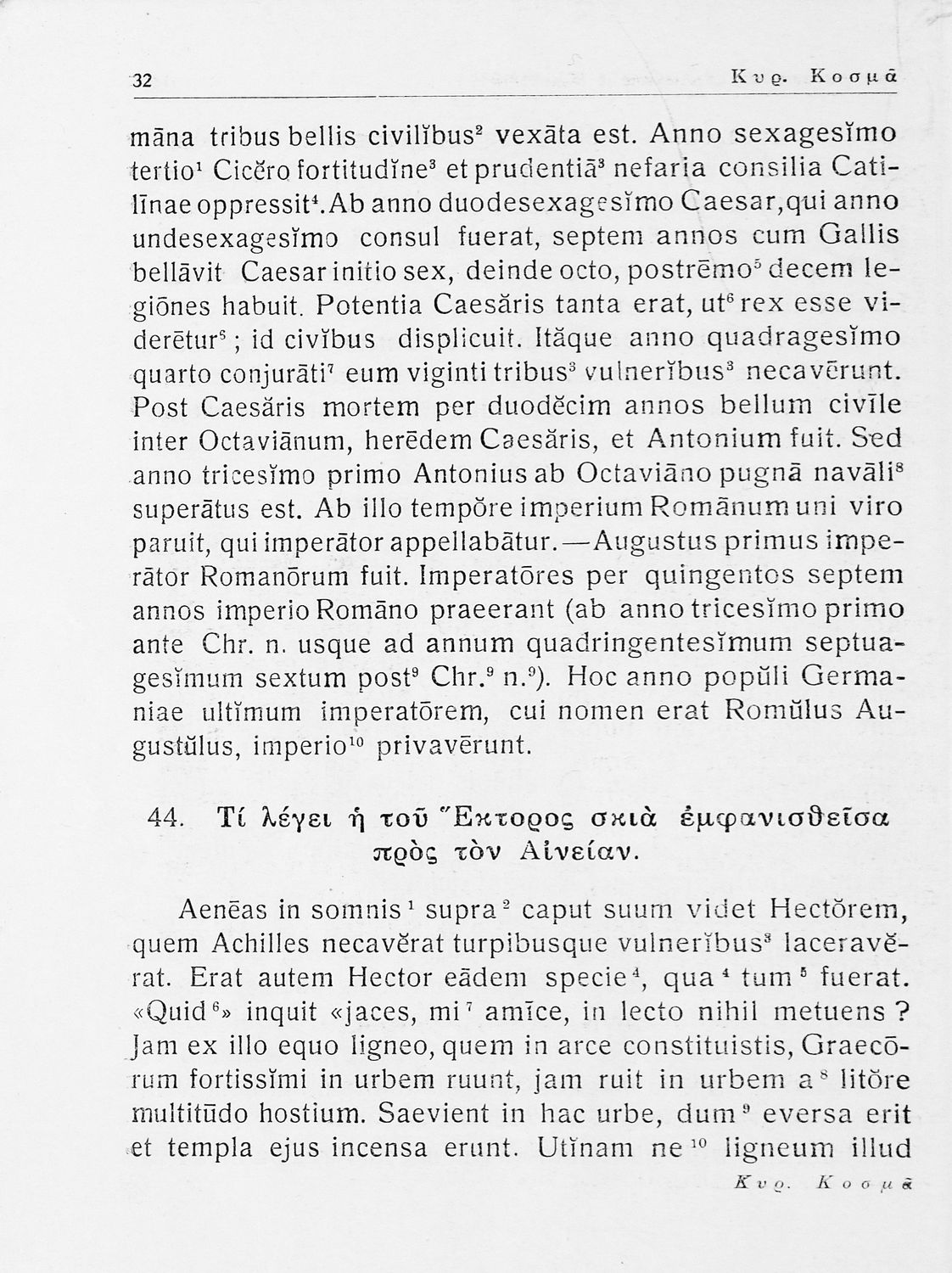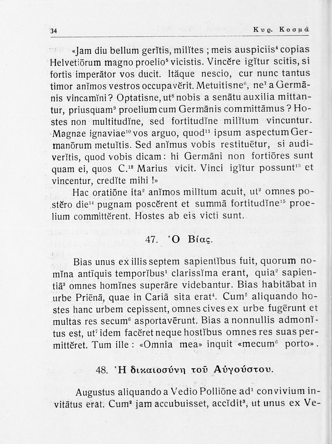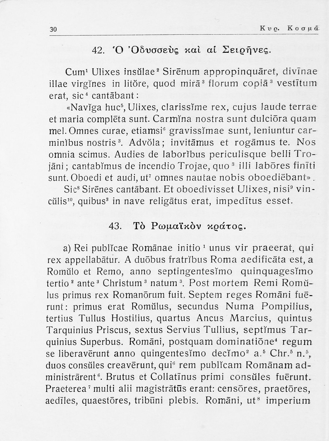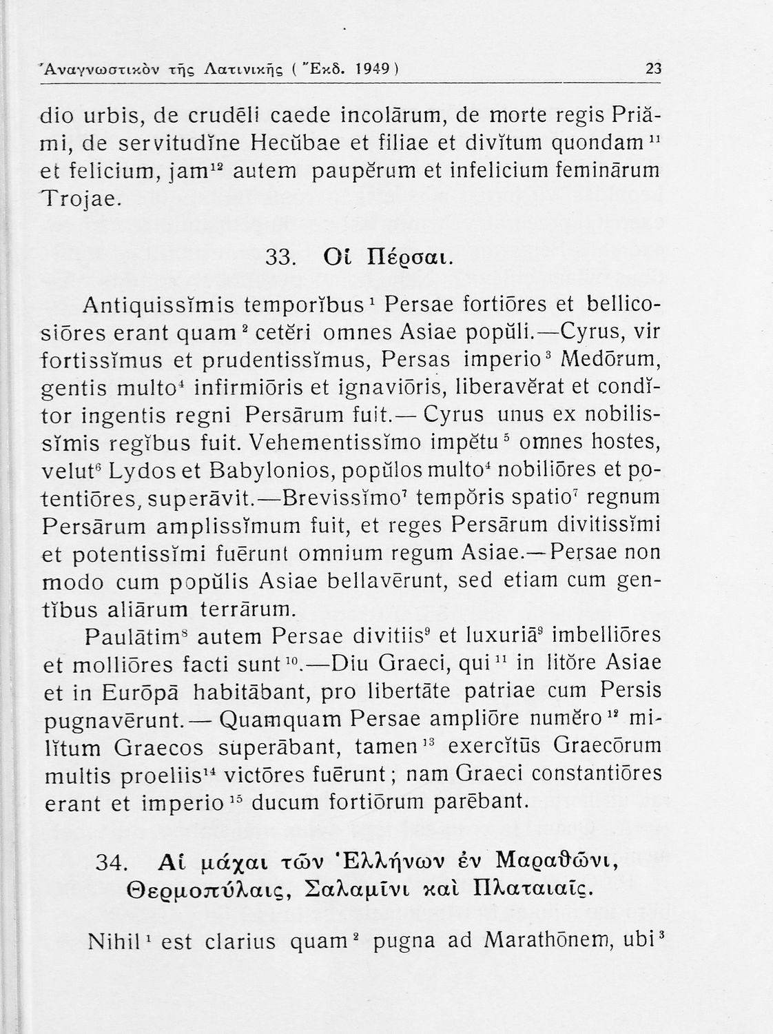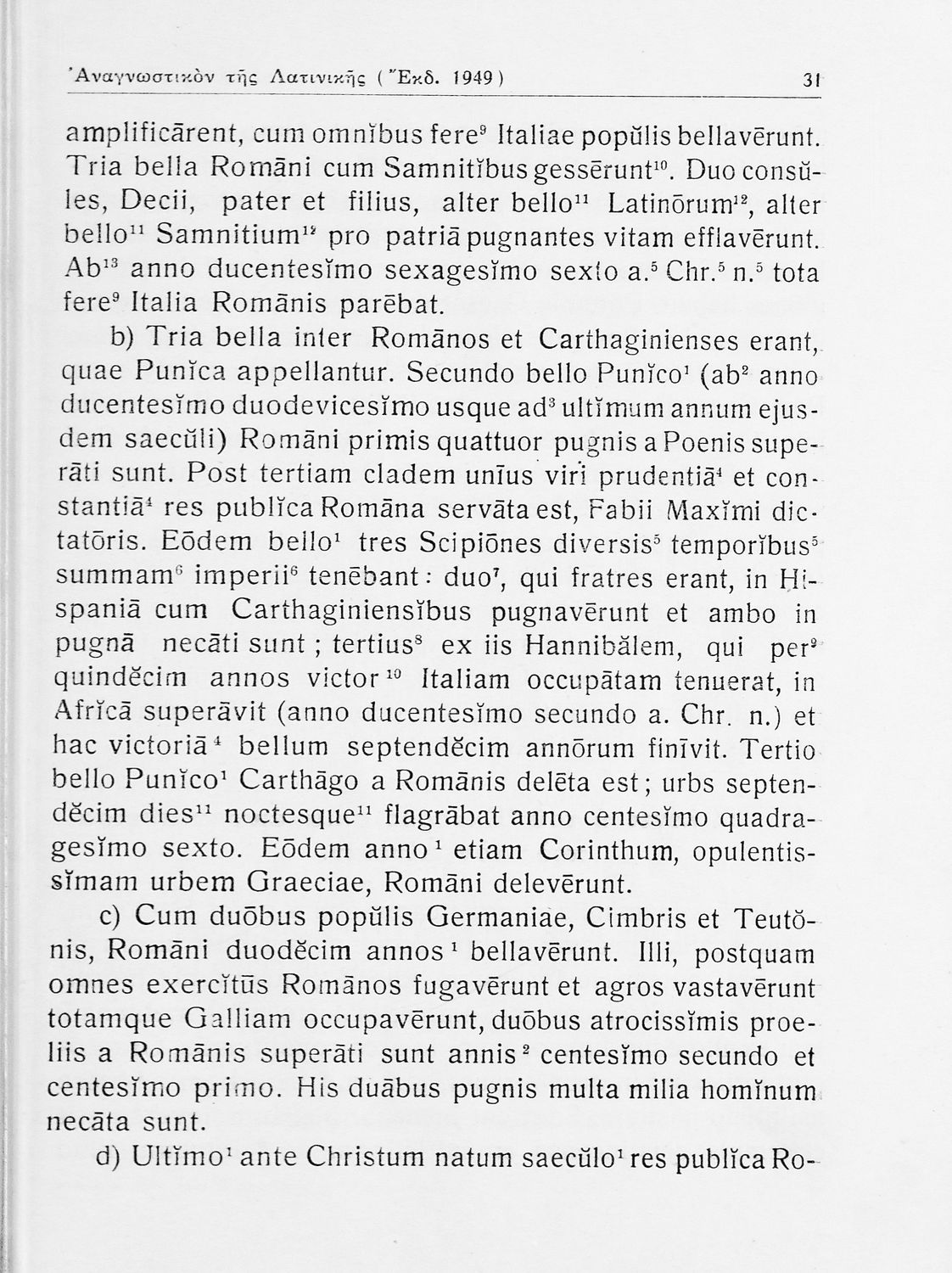 Σχολικό εγχειρίδιο Λατινικών για τη Γ΄ Γυμνασίου που περιέχει 54 κείμενα/περικοπές στα λατινικά, ερμηνευτικά υπομνήματα, λεξιλόγιο και κατάλογο με τα συντακτικά φαινόμενα (αφαιρετική, προθέσεις, σύνδεσμοι) που