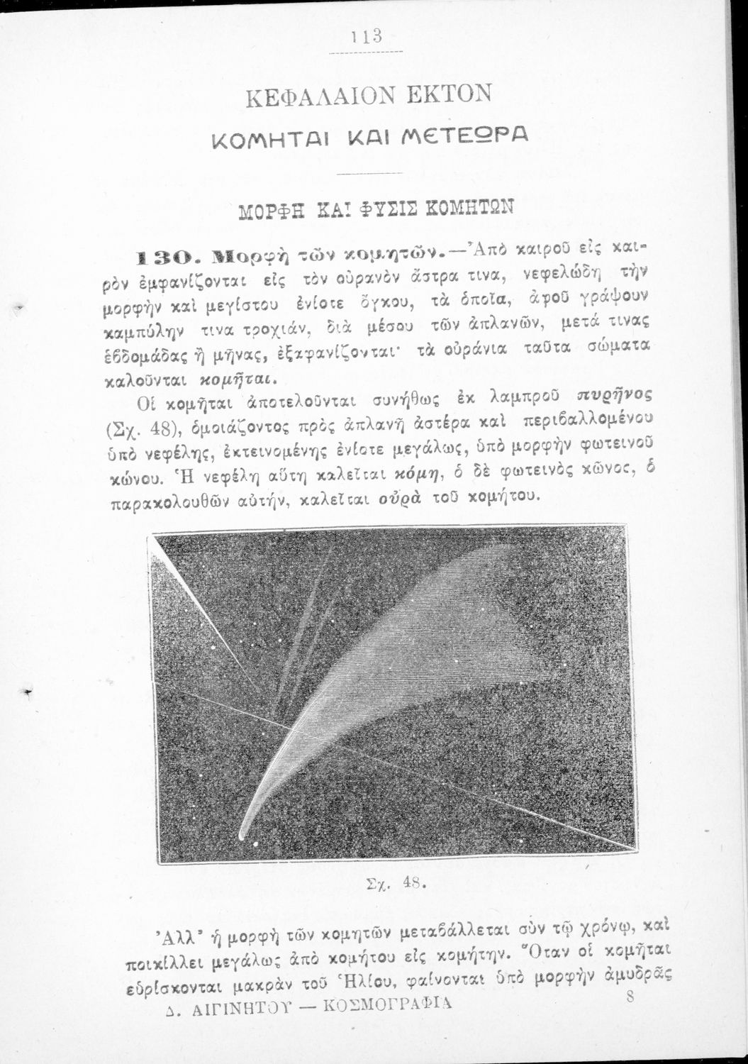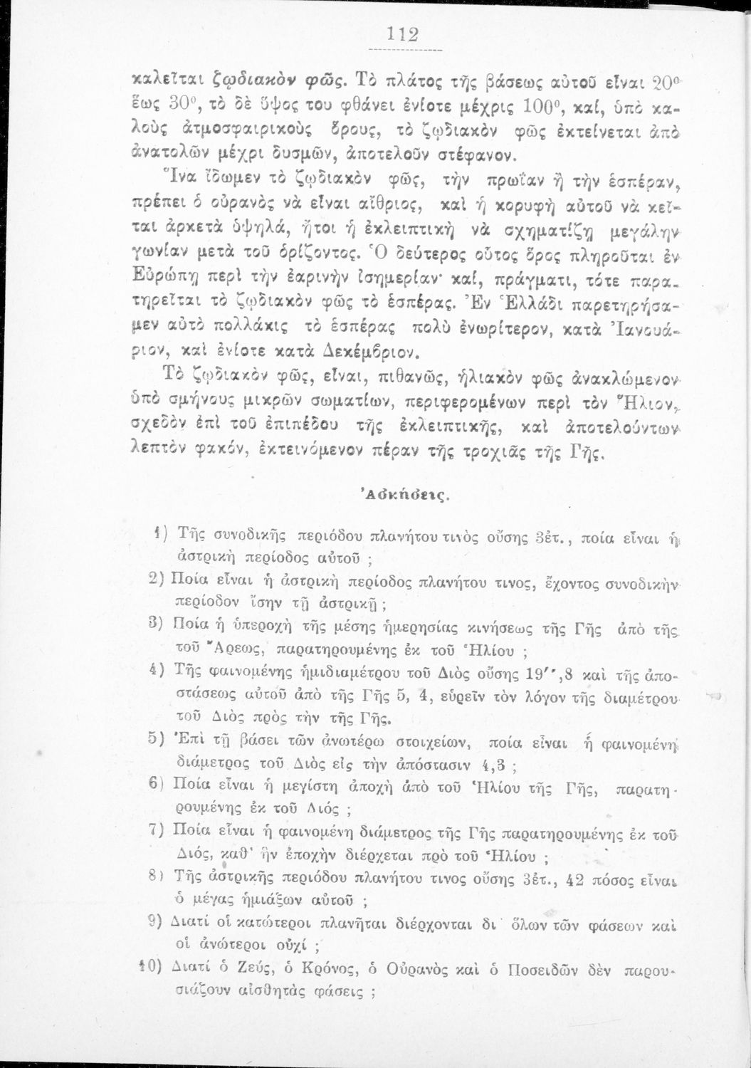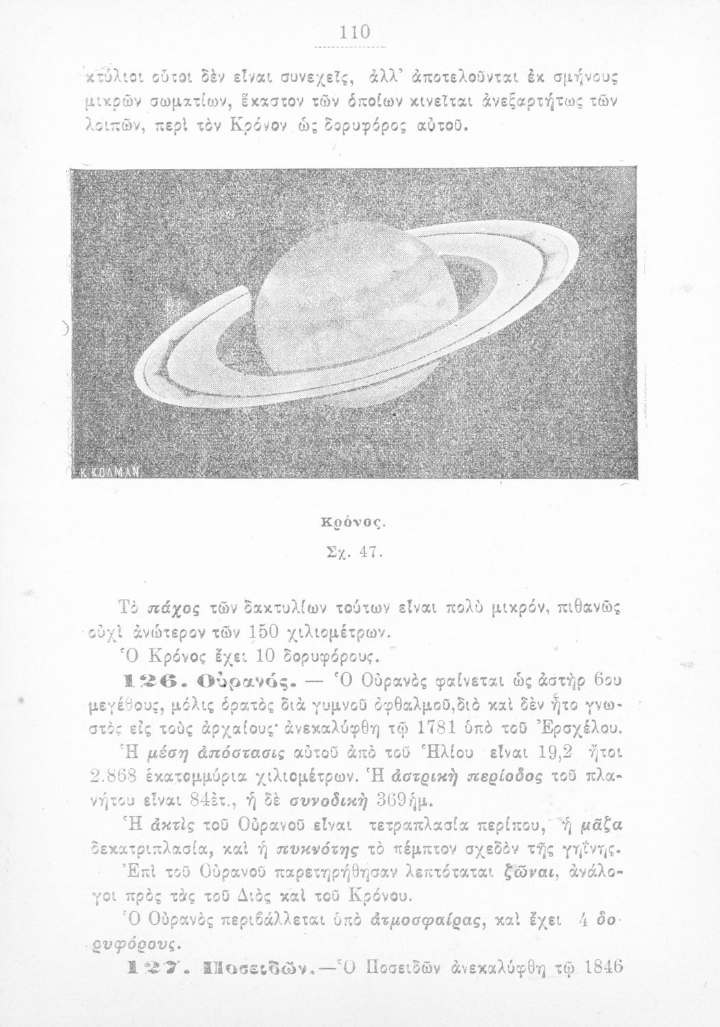 Παρουσίαση περιεχομένου: Σχολικό εγχειρίδιο κοσμογραφίας Γυμνασίου που παρουσιάζει τους πλανήτες του ηλιακού μας συστήματος και δίνει στοιχεία για τη σύσταση και τις κινήσεις τους. Ο συγγραφέας ήταν διευθυντής του Αστεροσκοπείου και καθηγητής στο Εθνικό Πανεπιστήμιο.