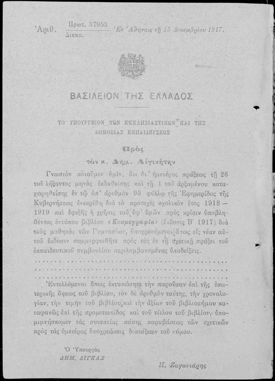 Εκδότης: Ιωάννης Ν. Σιδέρης Έτος έκδοσης: 1922 Τόπος έκδοσης: Αθήνα Έκδοση: 5η Υπουργική απόφαση / Σύμβαση: 37953/15-12-1917 Έτος έγκρισης: 1917 |