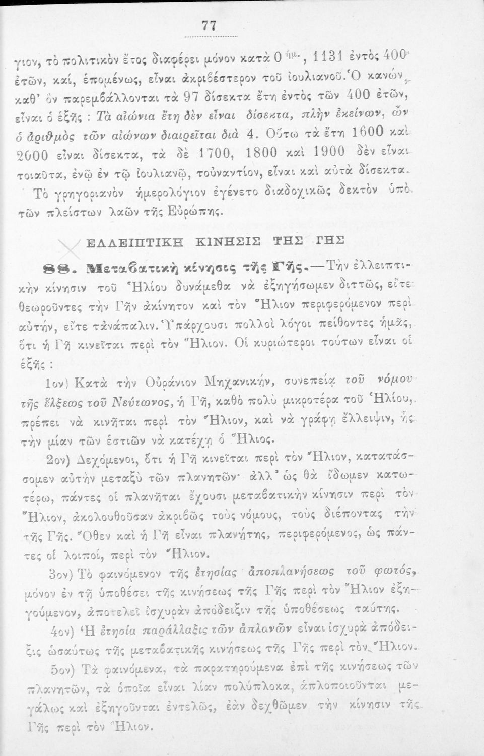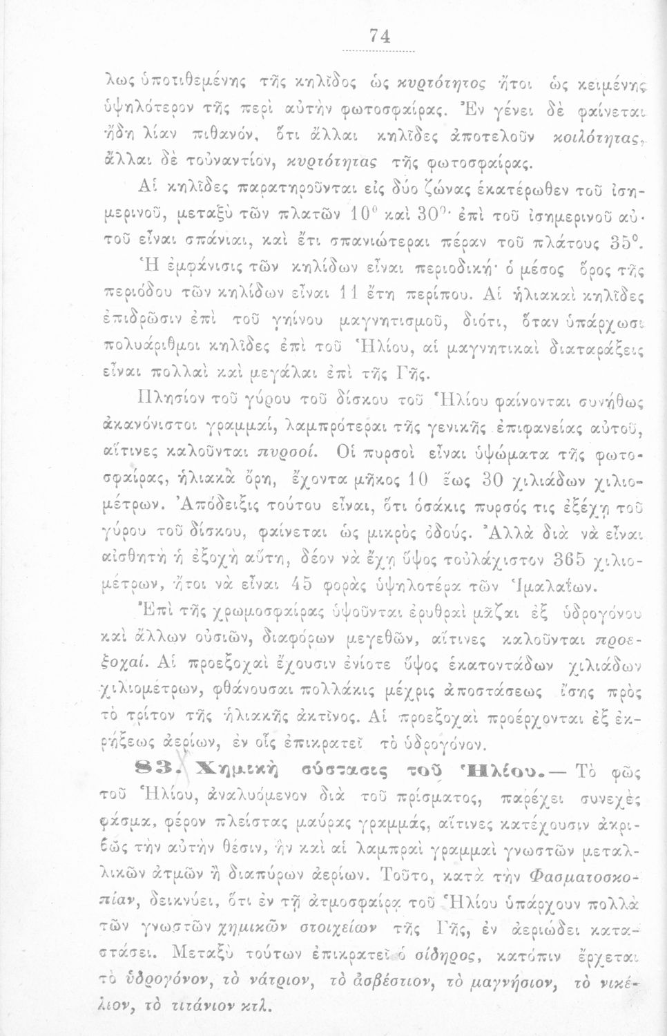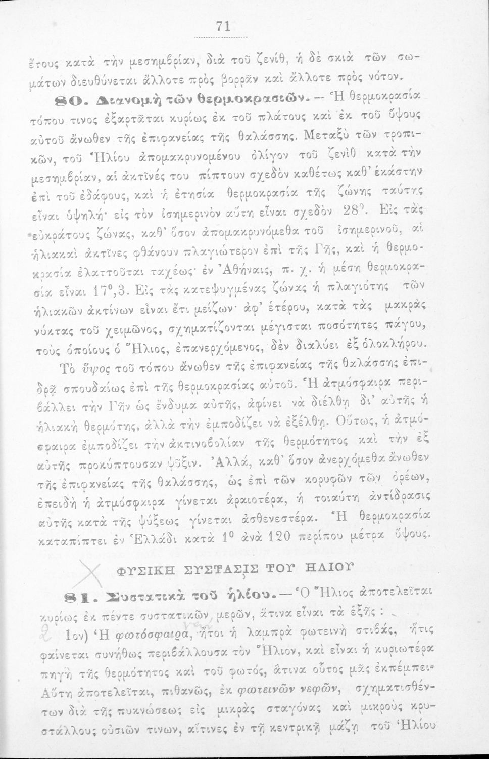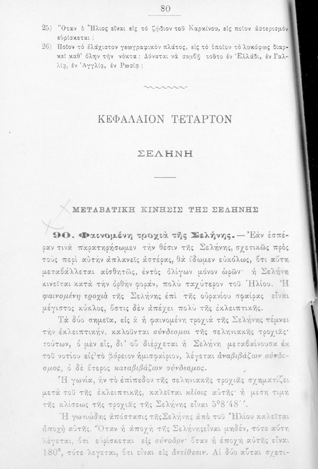 Βαθμίδα εκπαίδευσης: Δευτεροβάθμια Τάξη: Γυμνάσιο Μάθημα: Κοσμογραφία Γλώσσα: Απλή καθαρεύουσα Παρουσίαση περιεχομένου: Σχολικό εγχειρίδιο κοσμογραφίας Γυμνασίου που παρουσιάζει τους πλανήτες του ηλιακού μας συστήματος και δίνει στοιχεία για τη σύσταση και τις κινήσεις τους. Ο συγγραφέας ήταν διευθυντής του Αστεροσκοπείου και καθηγητής στο Εθνικό Πανεπιστήμιο. |