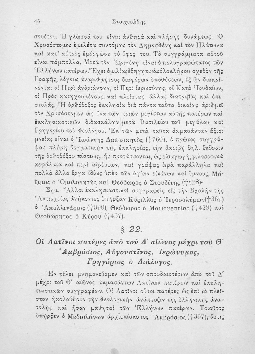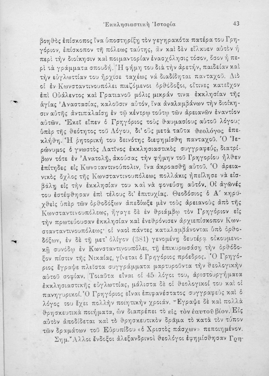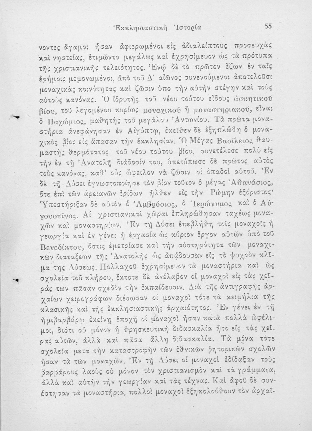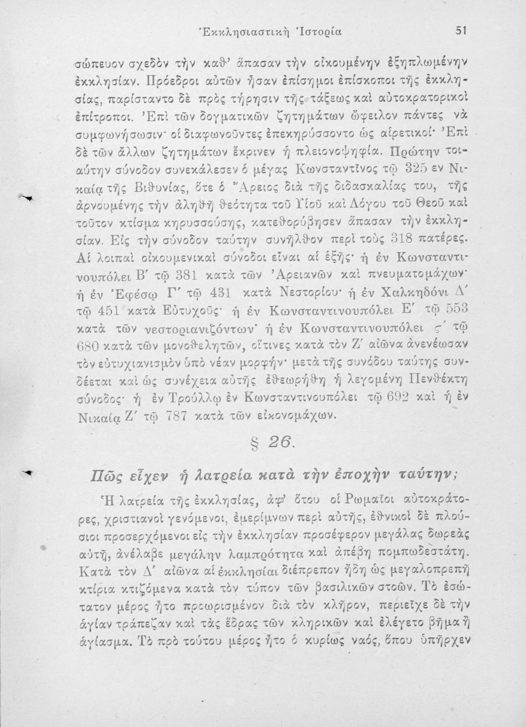 Σχολικό εγχειρίδιο Εκκλησιαστικής Ιστορίας δομημένο ιστορικά με βάση το σχίσμα των εκκλησιών σε ανατολική και δυτική και την άλωση της Κωνσταντινούπολης. Το εγχειρίδιο εγκρίθηκε από την Ιερά Σύνοδο. Ο συγγραφέας ήταν καθηγητής Θεολογίας στο Εθνικό Πανεπιστήμιο.