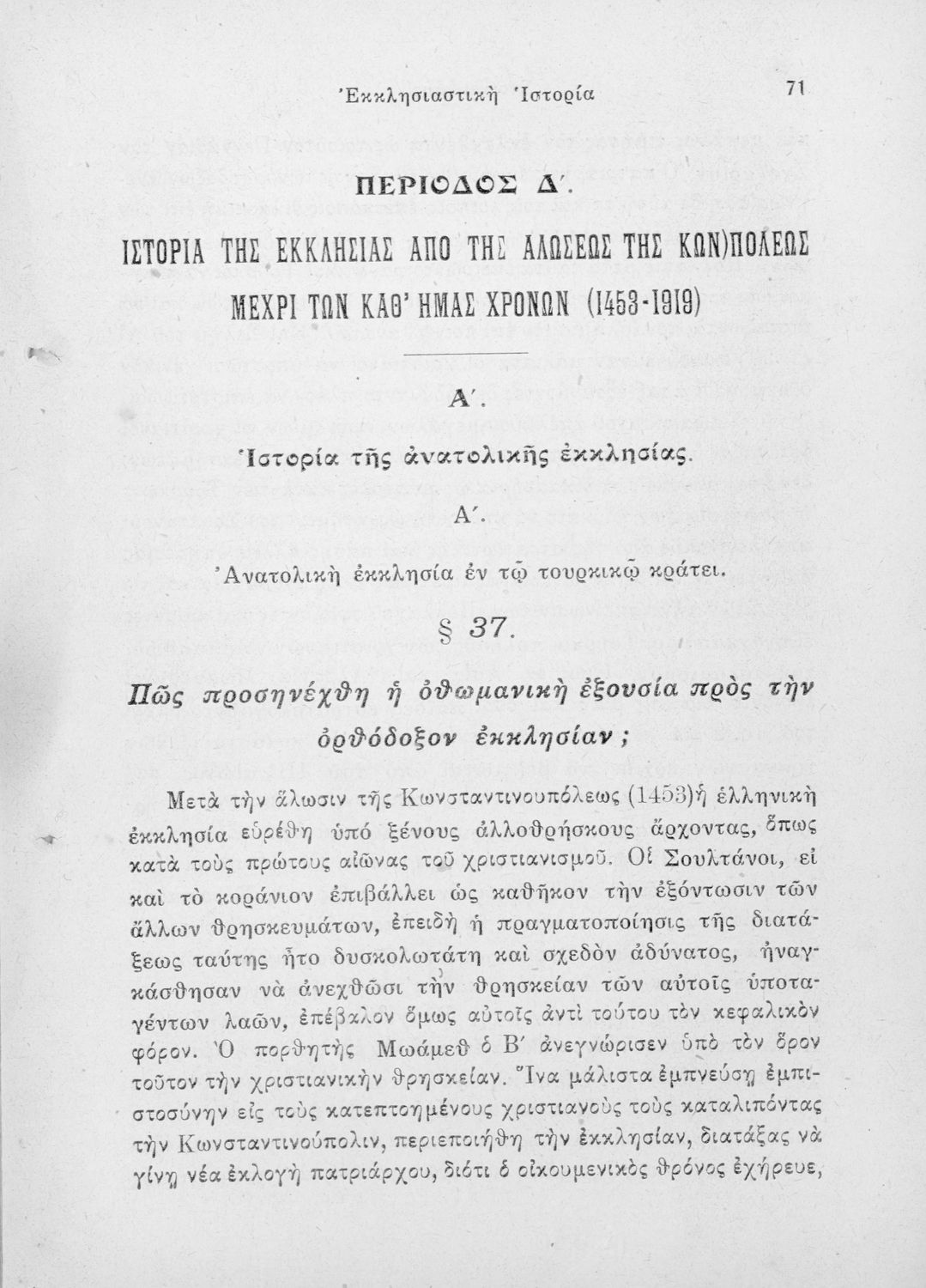 Σχολικό εγχειρίδιο Εκκλησιαστικής Ιστορίας δομημένο ιστορικά με βάση το σχίσμα των εκκλησιών σε ανατολική και δυτική και την άλωση της Κωνσταντινούπολης. Το εγχειρίδιο εγκρίθηκε από την Ιερά Σύνοδο. Ο συγγραφέας ήταν καθηγητής Θεολογίας στο Εθνικό Πανεπιστήμιο.