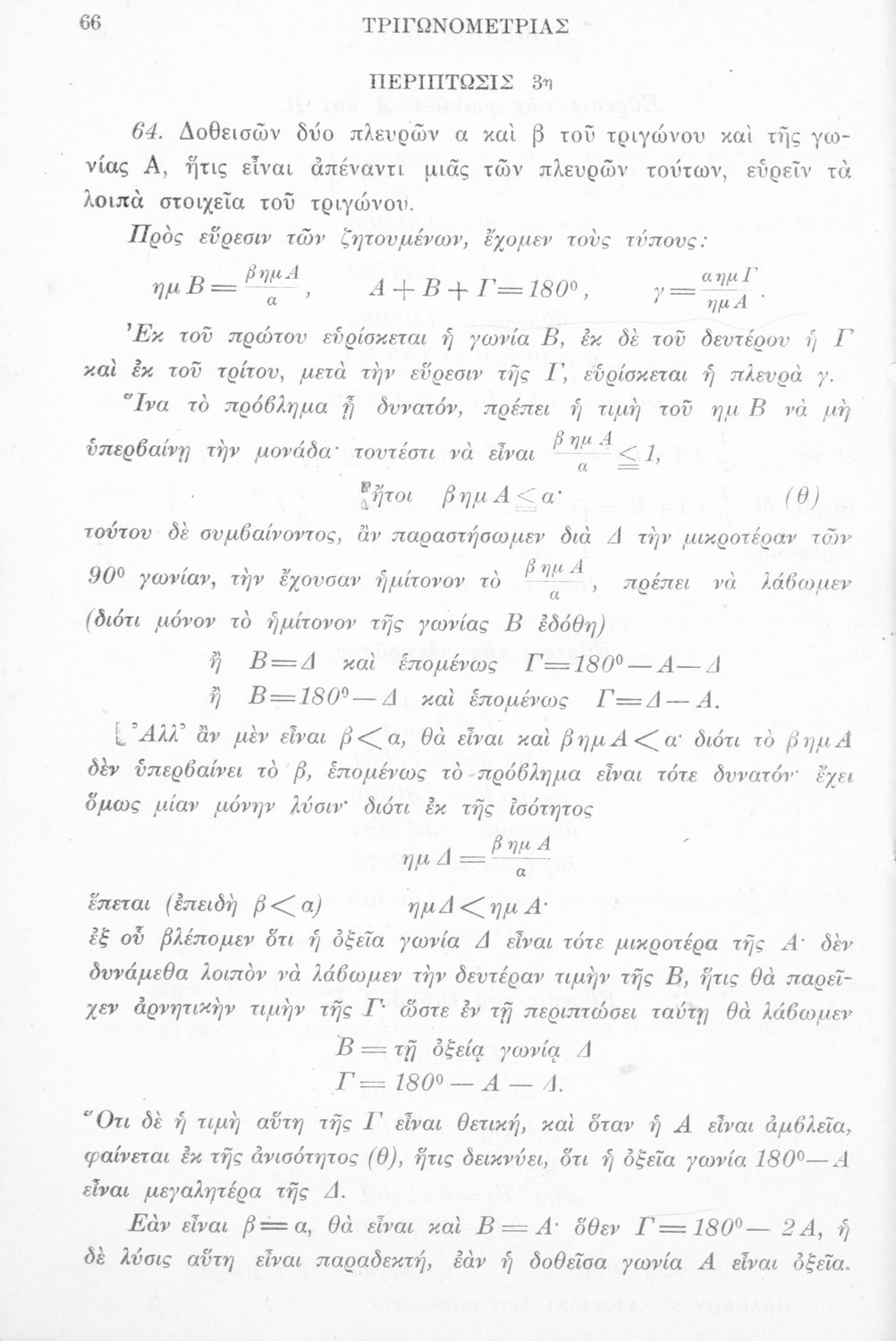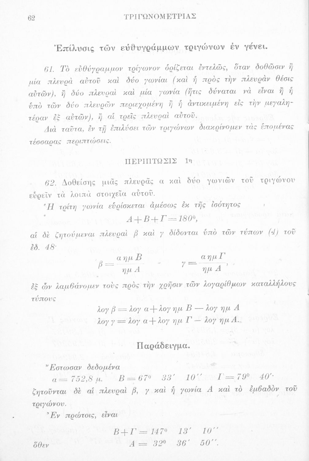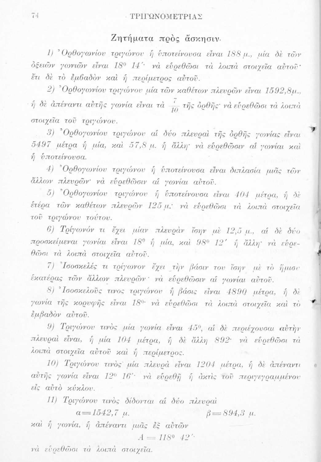Βαθμίδα εκπαίδευσης: Δευτεροβάθμια Τάξη: Γυμνάσιο Μάθημα: Μαθηματικά Γλώσσα: Καθαρεύουσα Παρουσίαση περιεχομένου: Σχολικό εγχειρίδιο Τριγωνομετρίας Γυμνασίου που εστιάζει στις τριγωνομετρικές γραμμές και την μέτρηση των ευθύγραμμων τριγώνων. |