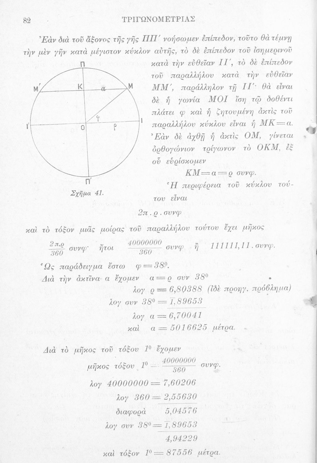 Σχολικό εγχειρίδιο Τριγωνομετρίας Γυμνασίου που εστιάζει στις τριγωνομετρικές γραμμές και την μέτρηση των ευθύγραμμων τριγώνων.