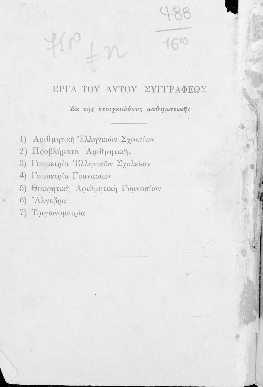 Κωδικός αναγνώρισης: 01-45258c Τίτλος: Ευθύγραμμος τριγωνομετρία προς χρήσιν των Γυμνασίων Συγγραφέας: Ιωάννης Ν. Χατζηδάκις Μέγεθος και υπόστρωμα: Σχολικό εγχειρίδιο, 19εκ., μαλακό εξώφυλλο, 88 σελίδες. |