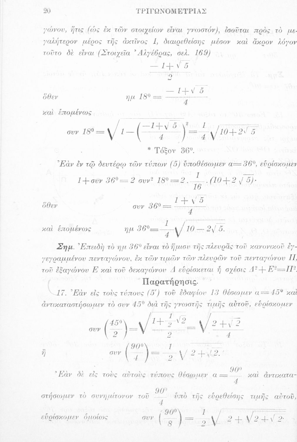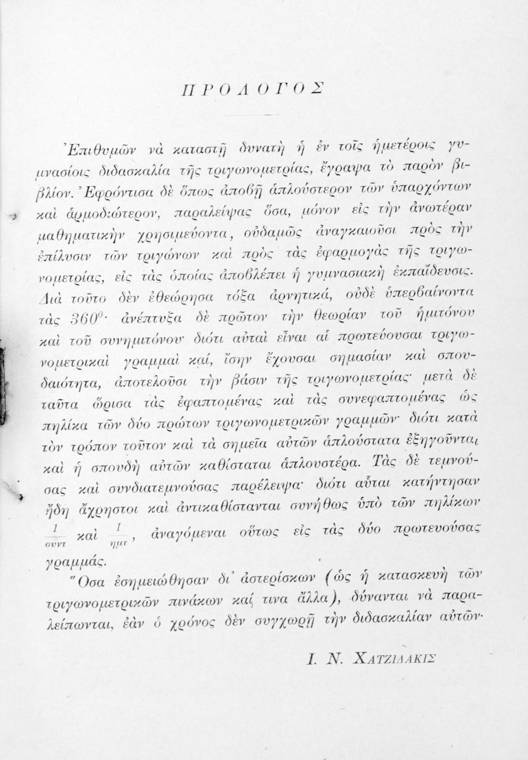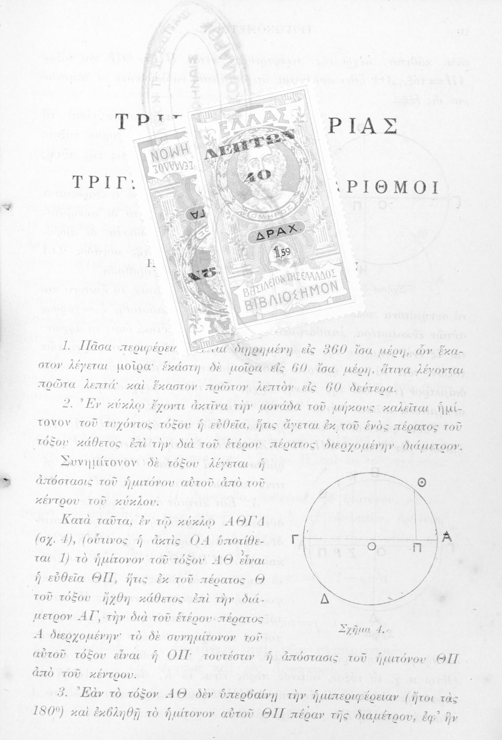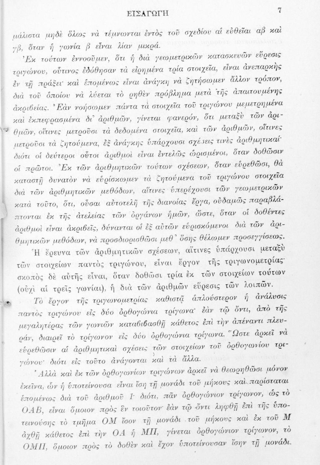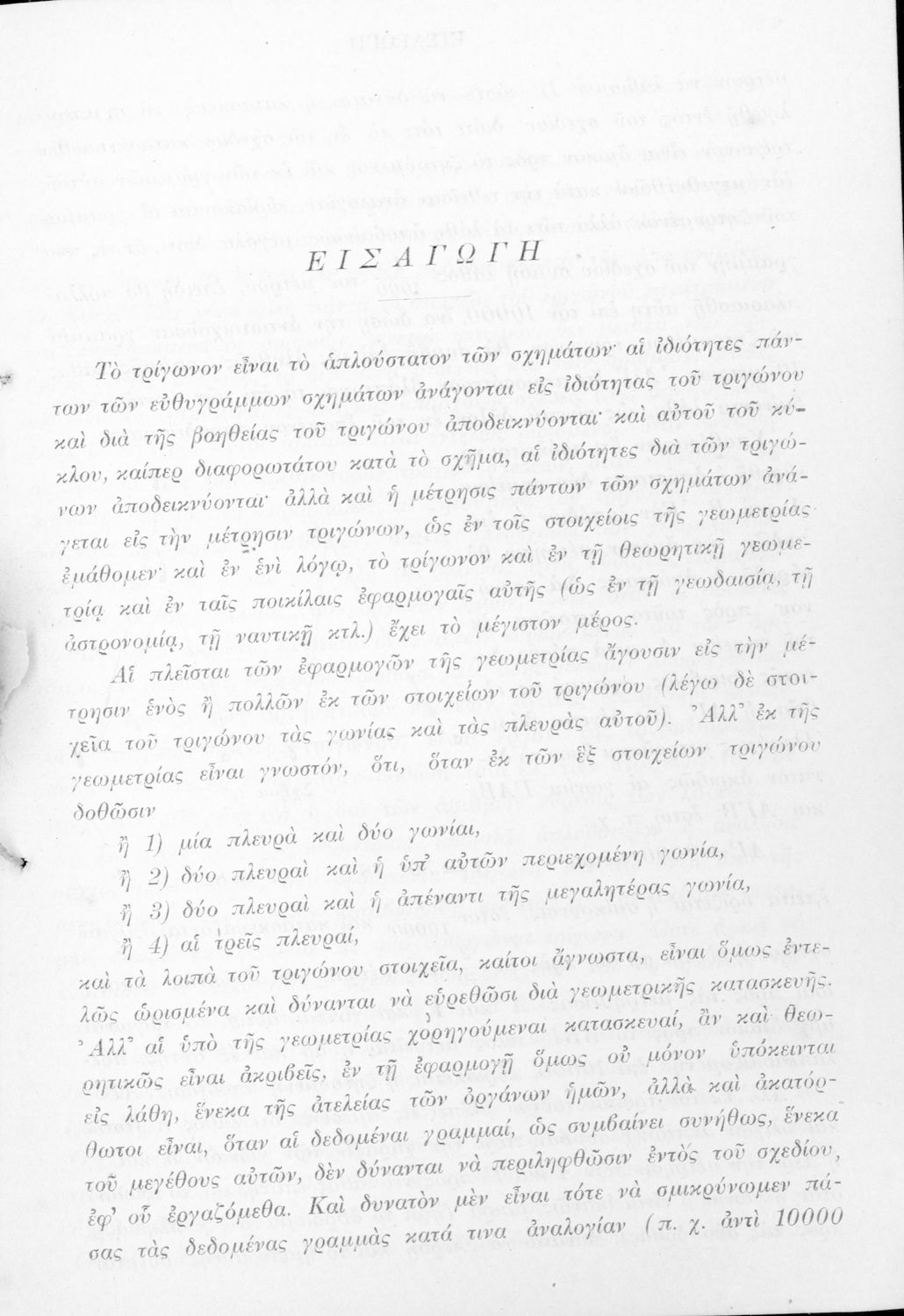 Βαθμίδα εκπαίδευσης: Δευτεροβάθμια Τάξη: Γυμνάσιο Μάθημα: Μαθηματικά Γλώσσα: Καθαρεύουσα Παρουσίαση περιεχομένου: Σχολικό εγχειρίδιο Τριγωνομετρίας Γυμνασίου που εστιάζει στις τριγωνομετρικές γραμμές και την μέτρηση των ευθύγραμμων τριγώνων. |