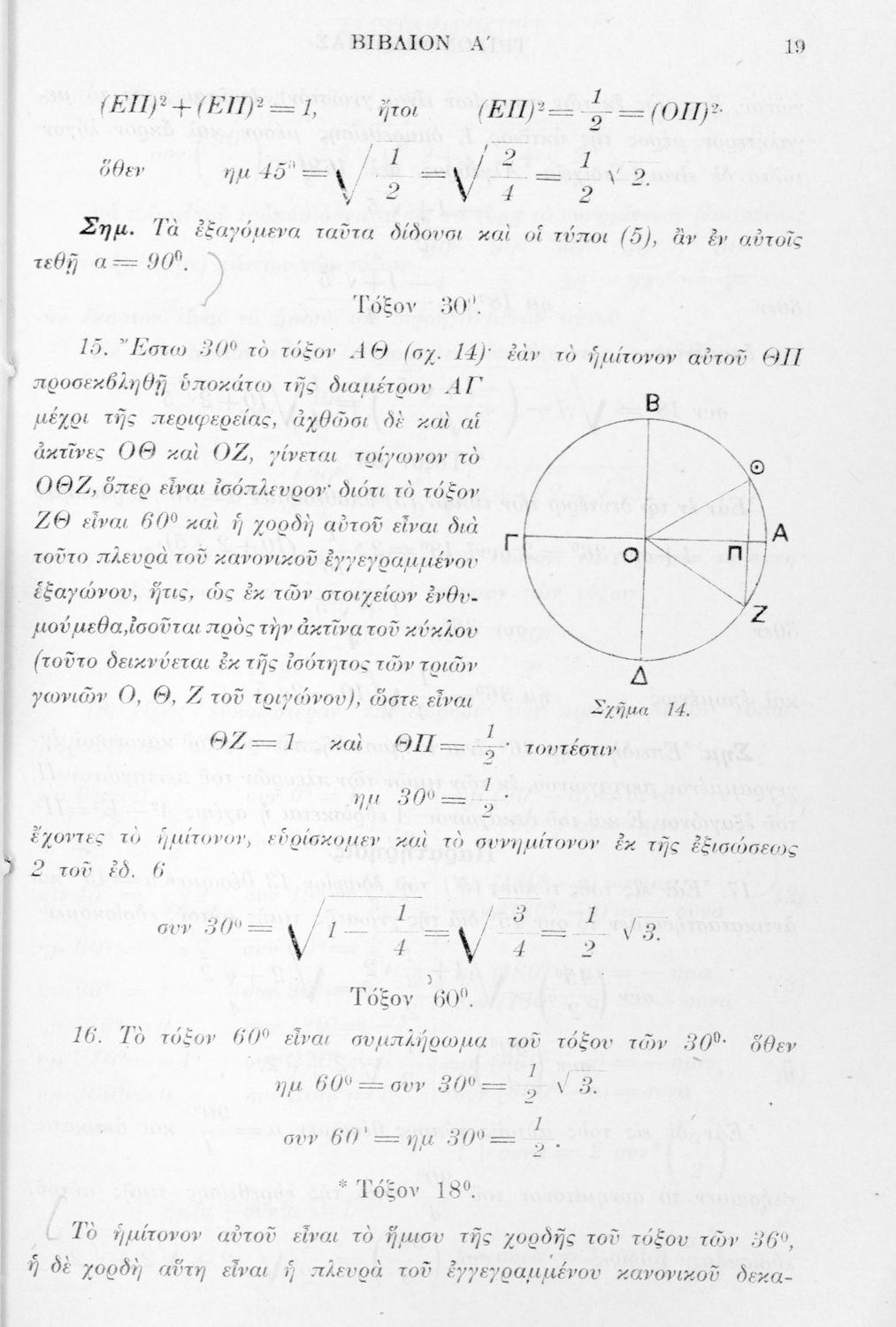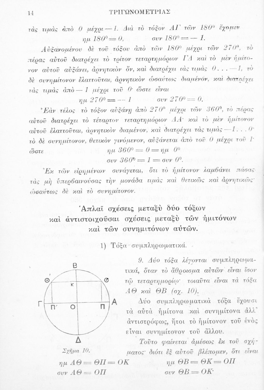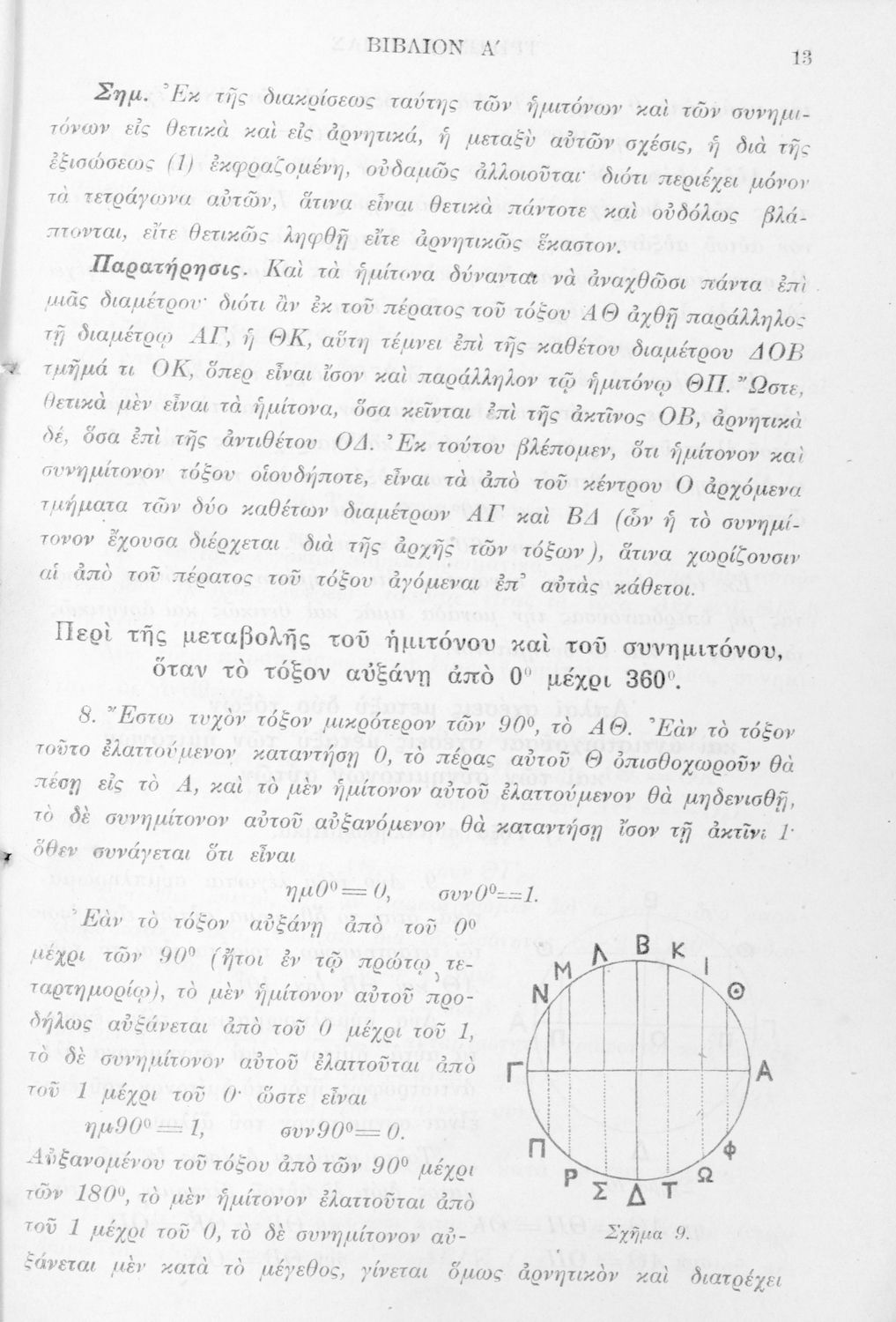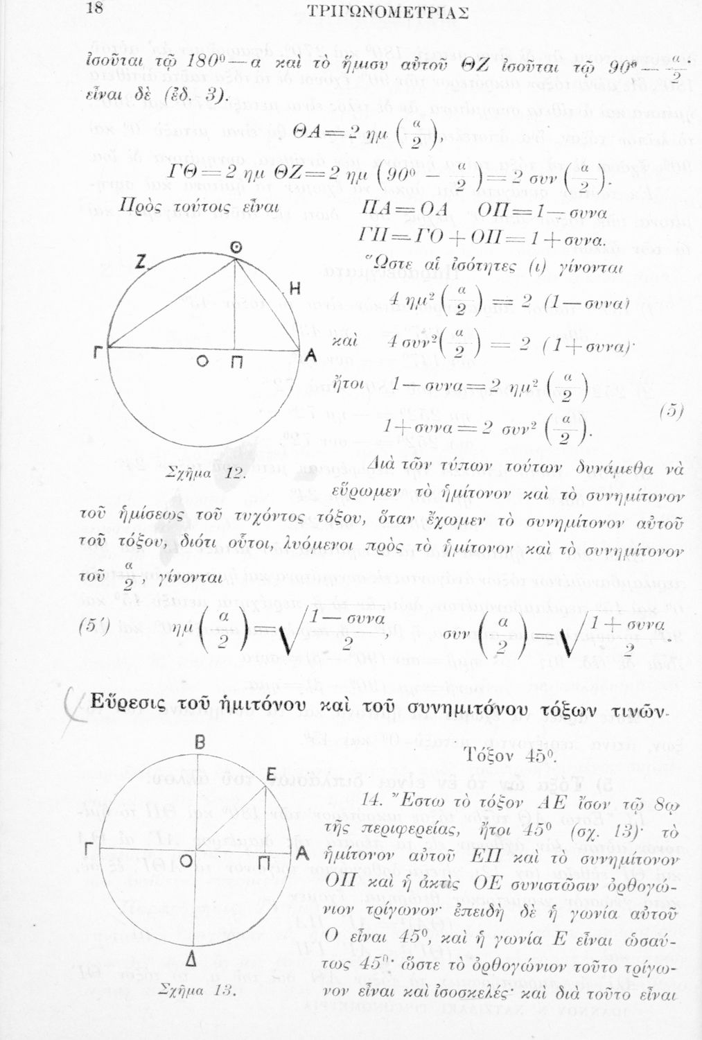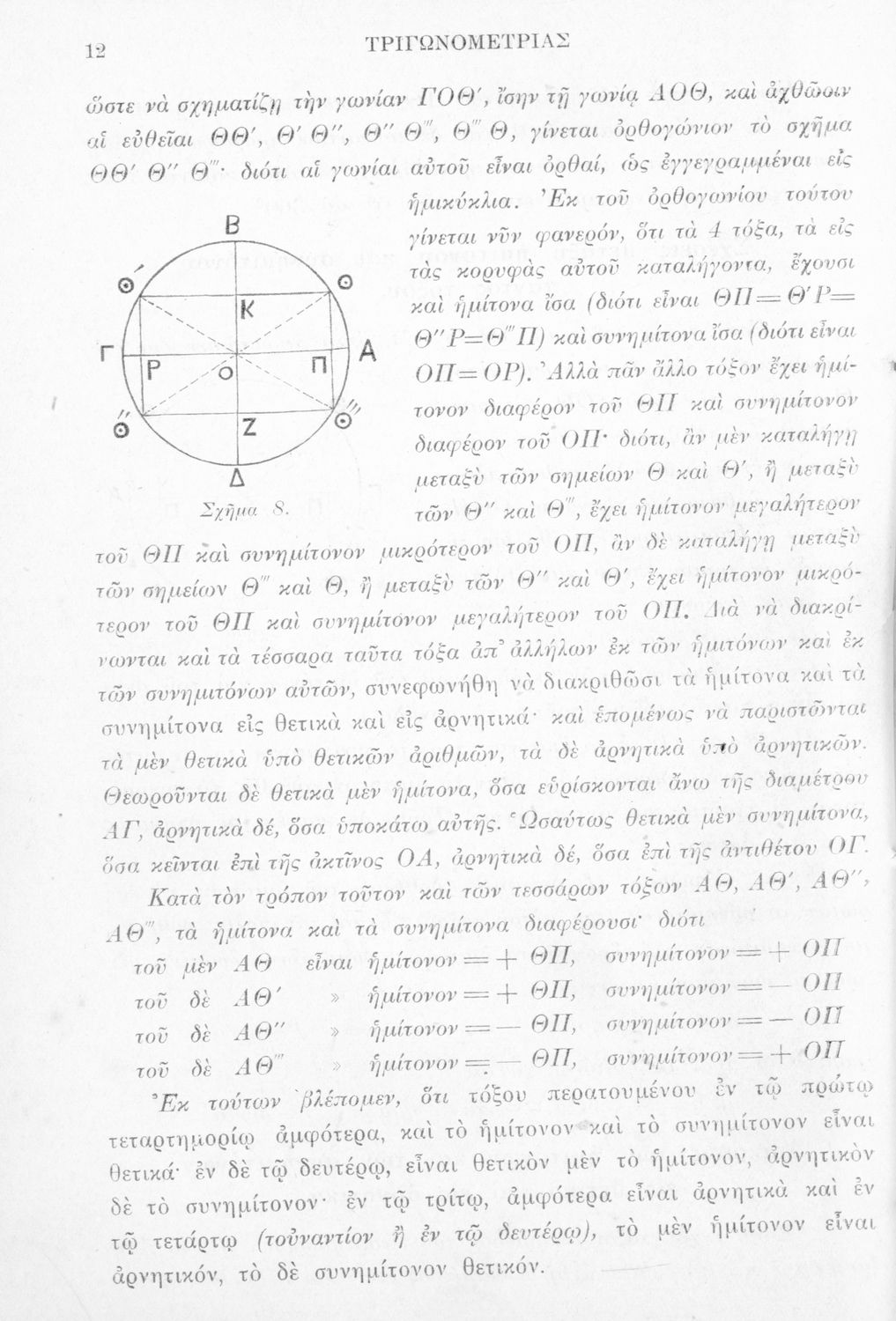 Σχολικό εγχειρίδιο Τριγωνομετρίας Γυμνασίου που εστιάζει στις τριγωνομετρικές γραμμές και την μέτρηση των ευθύγραμμων τριγώνων.