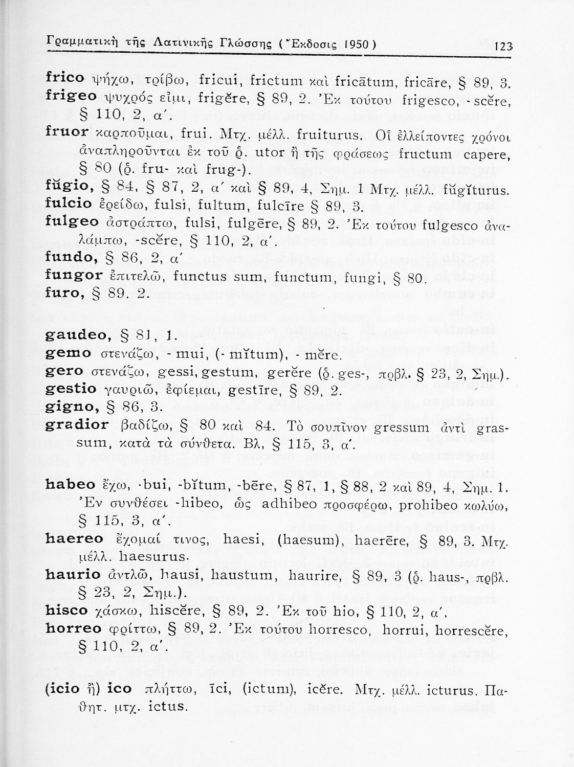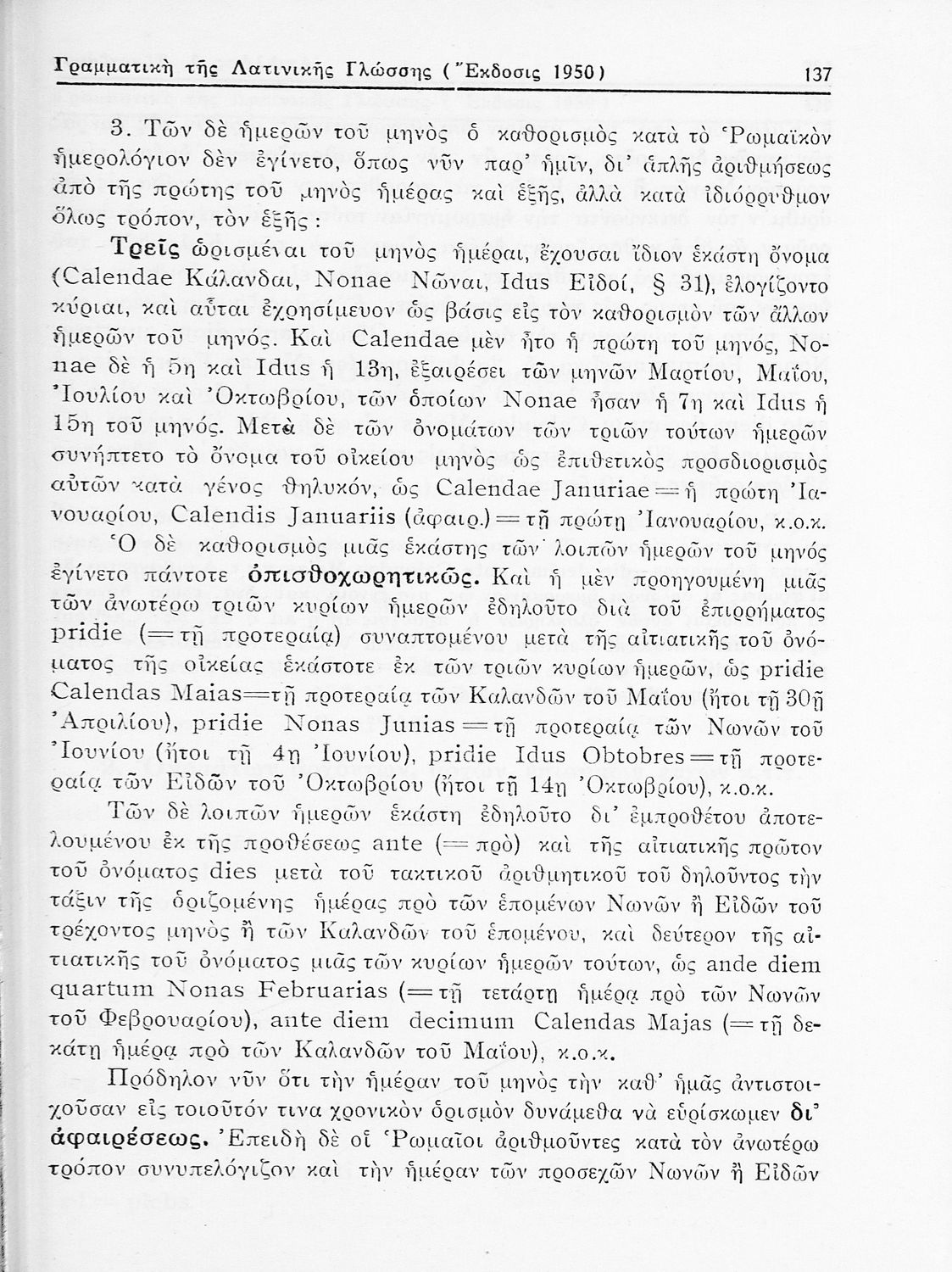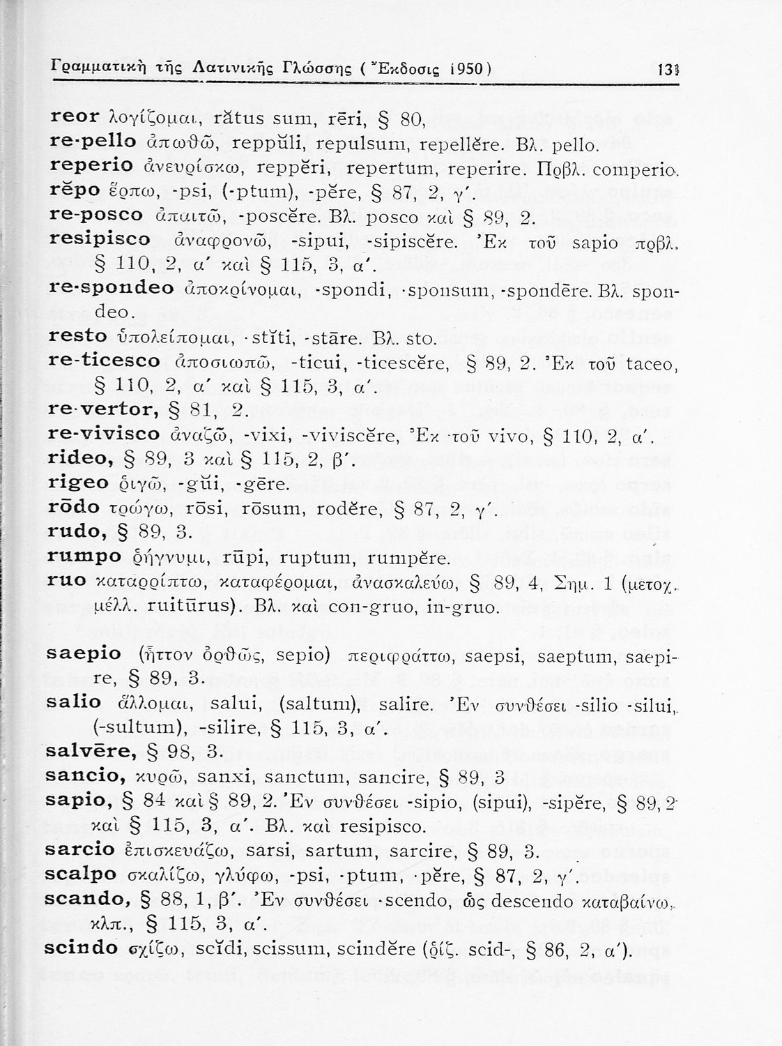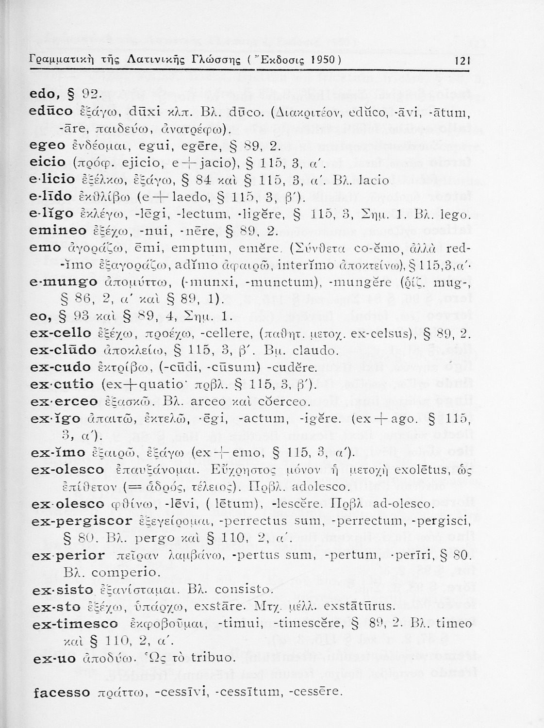 Σχολικό εγχειρίδιο Λατινικών Γυμνασίου που περιλαμβάνει γραμματική και συντακτικό και είναι χωρισμένο σε φθογγολογικό, τυπολογικό και ετυμολογικό μέρος.