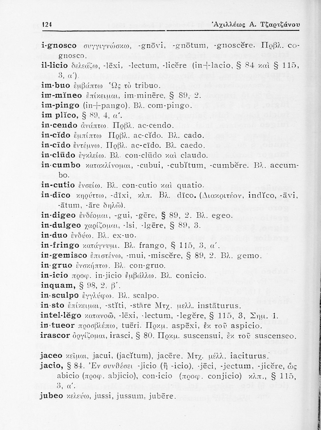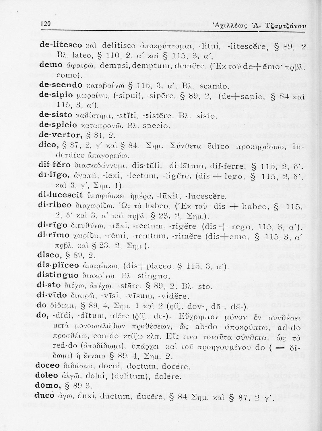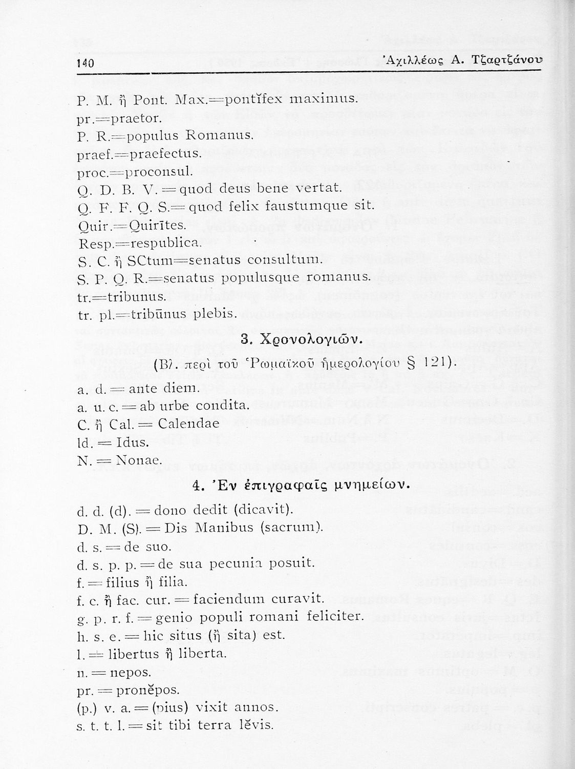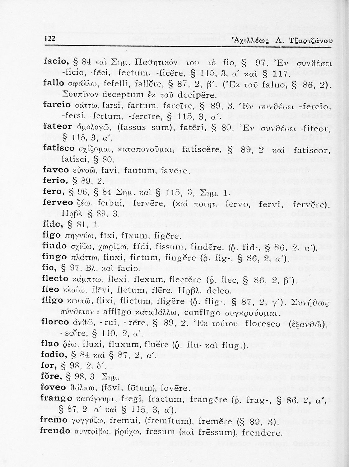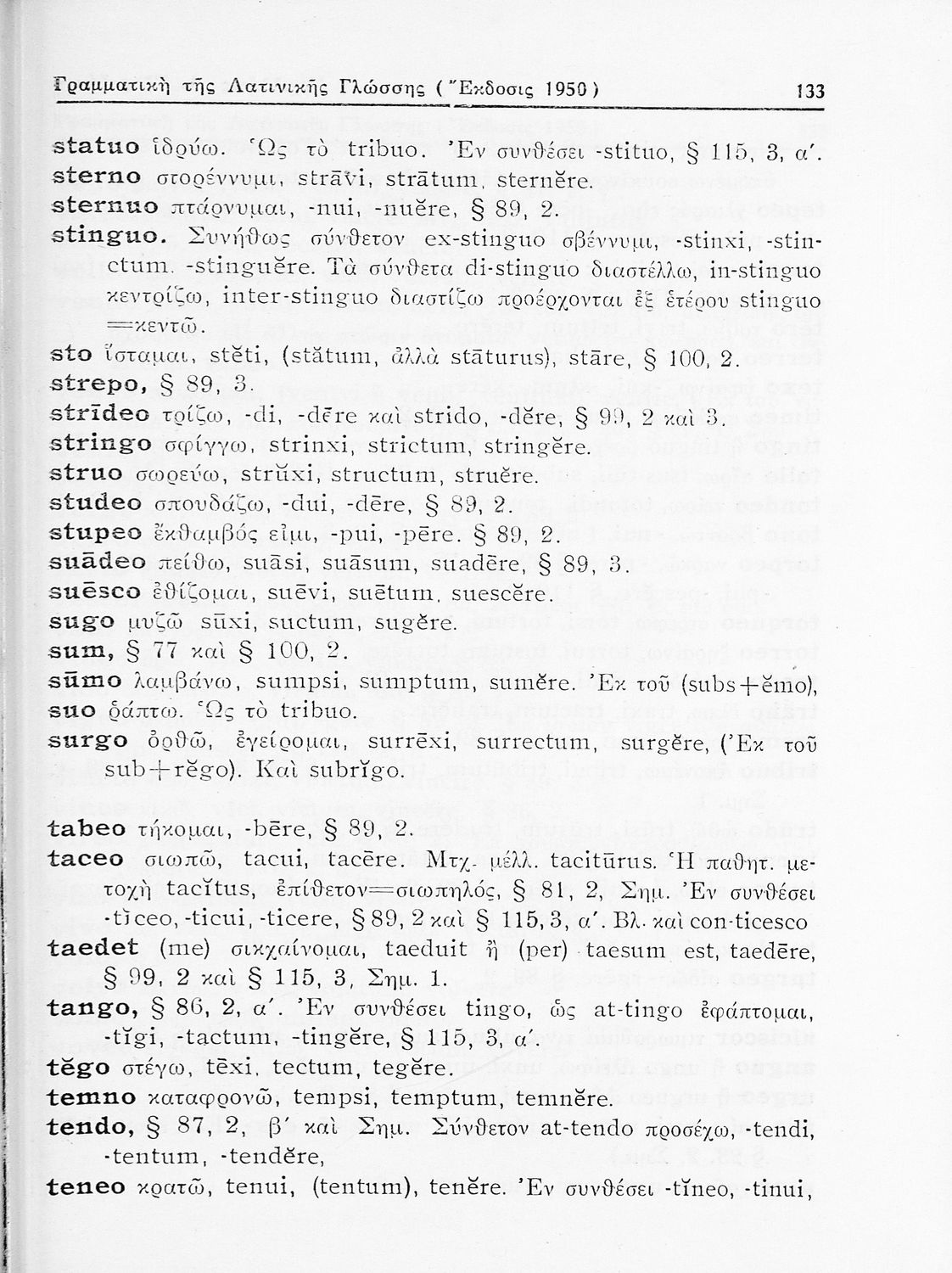 Σχολικό εγχειρίδιο Λατινικών Γυμνασίου που περιλαμβάνει γραμματική και συντακτικό και είναι χωρισμένο σε φθογγολογικό, τυπολογικό και ετυμολογικό μέρος.