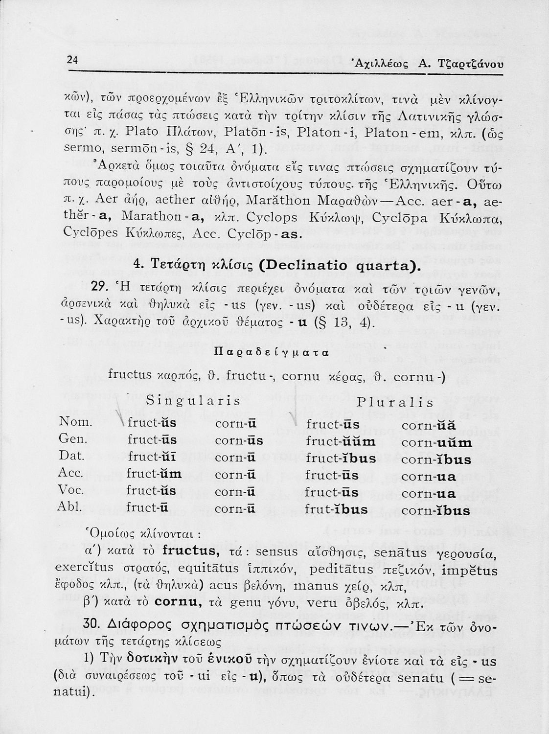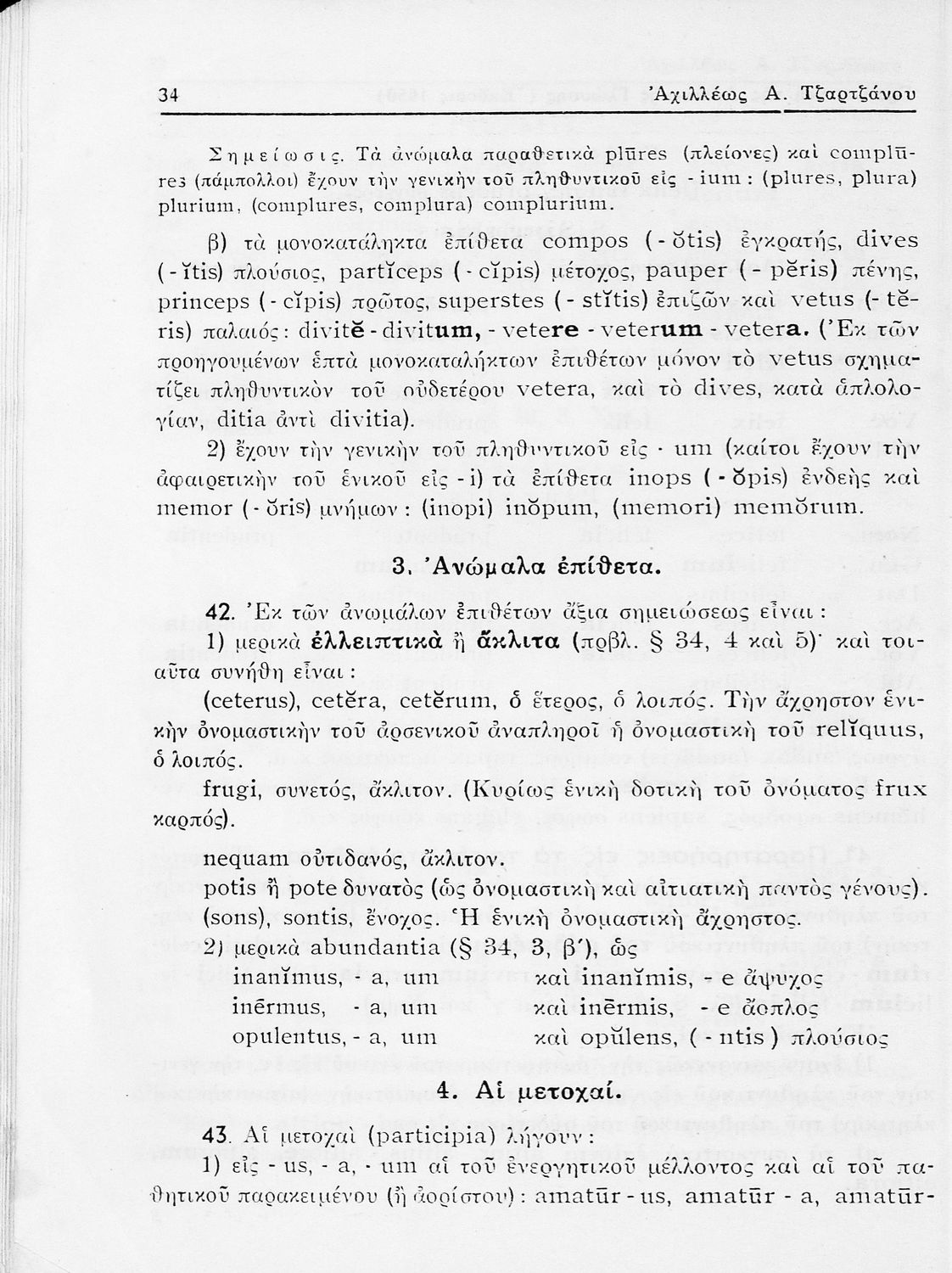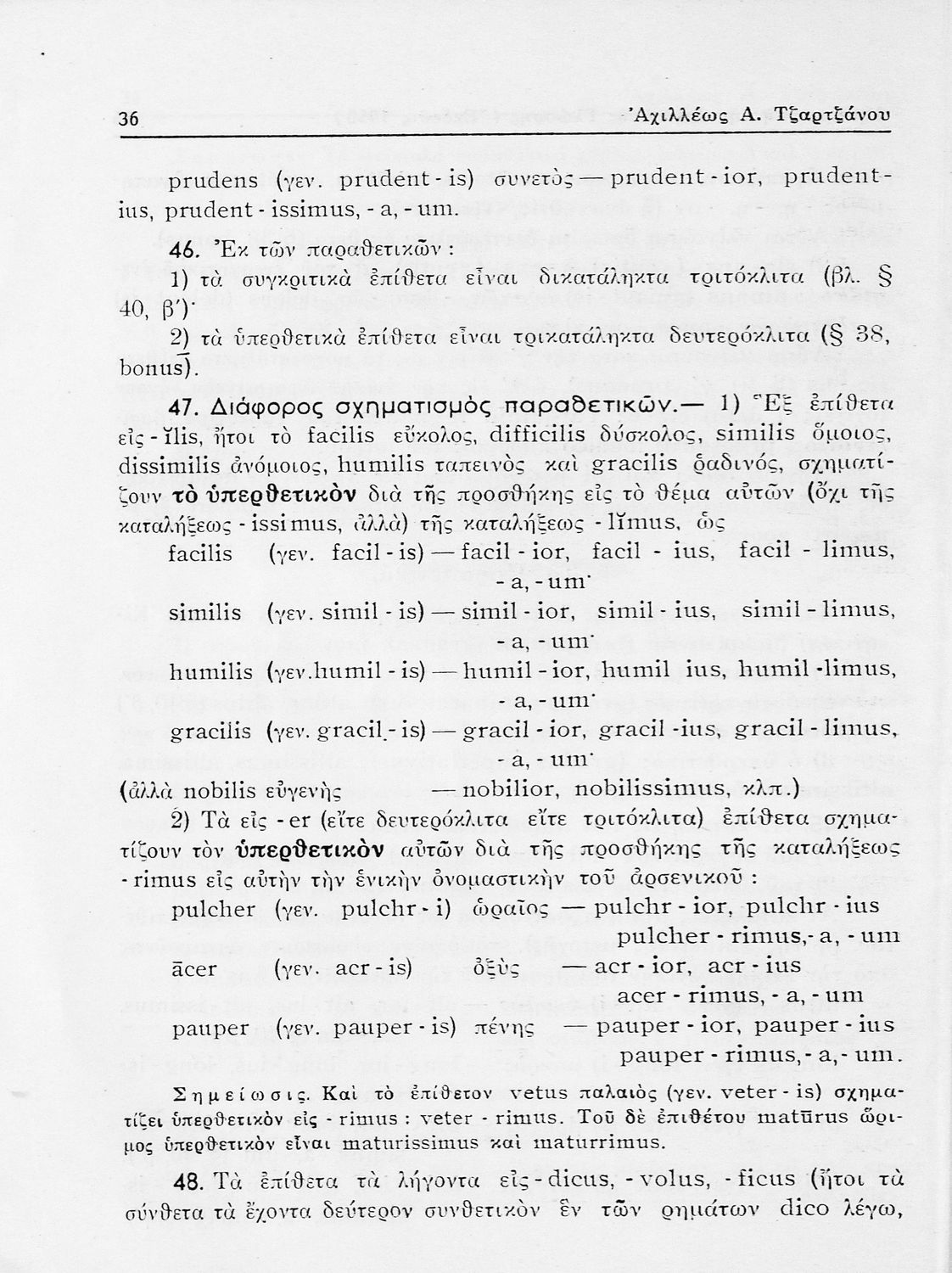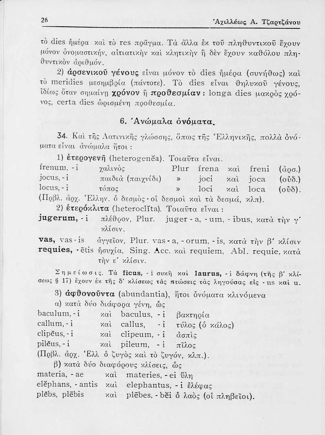 Σχολικό εγχειρίδιο Λατινικών Γυμνασίου που περιλαμβάνει γραμματική και συντακτικό και είναι χωρισμένο σε φθογγολογικό, τυπολογικό και ετυμολογικό μέρος.