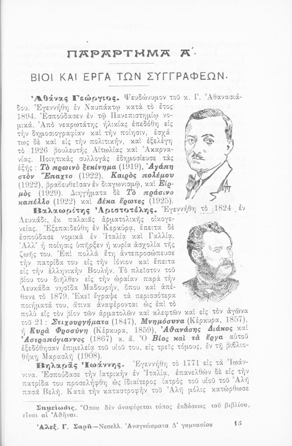Νεοελληνικά αναγνώσματα δια τους μαθητάς της Δ΄ τάξεως των Εξατάξιων Γυμνασίων και Ημιγυμνασίων και της αντιστοίχου τάξεως των λοιπών σχολείων της Μέσης Εκπαιδεύσεως.