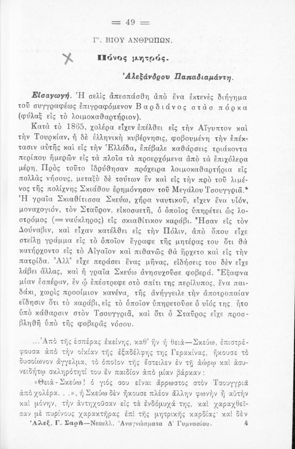 Νεοελληνικά αναγνώσματα δια τους μαθητάς της Δ΄ τάξεως των Εξατάξιων Γυμνασίων και Ημιγυμνασίων και της αντιστοίχου τάξεως των λοιπών σχολείων της Μέσης Εκπαιδεύσεως.