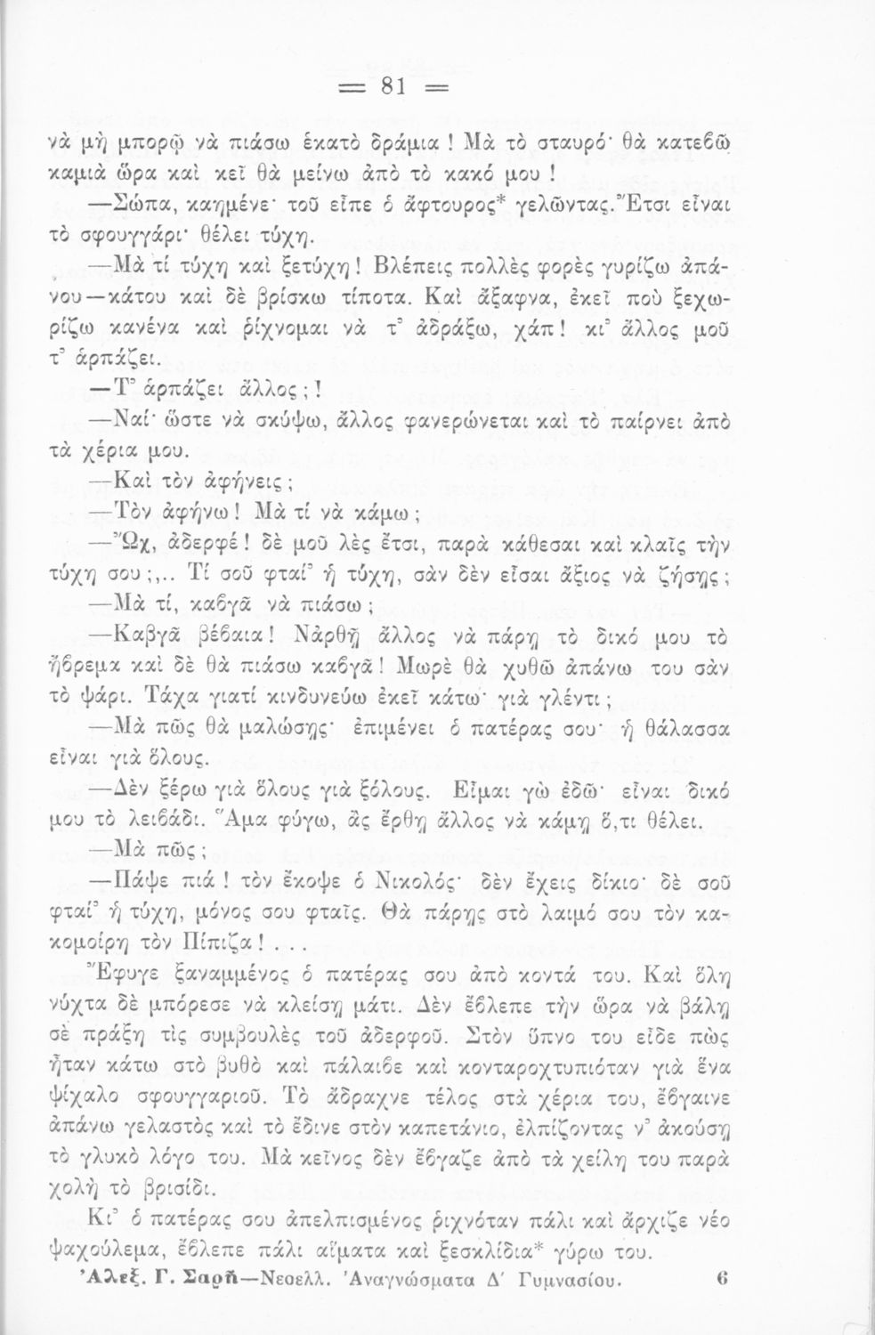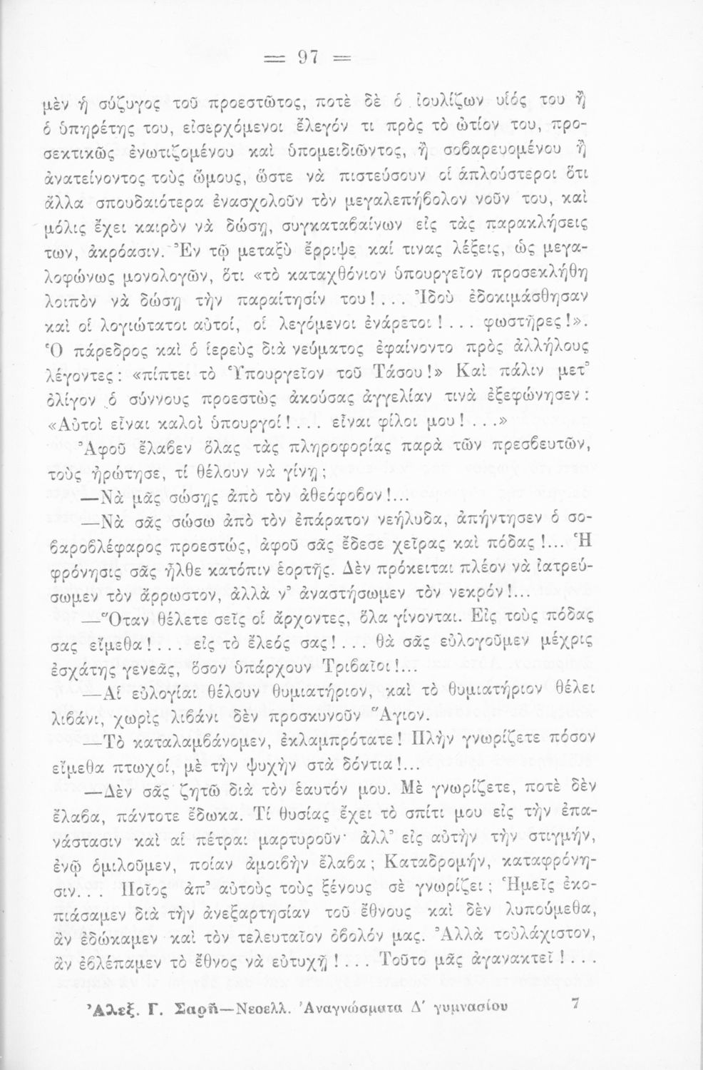 Νεοελληνικά αναγνώσματα δια τους μαθητάς της Δ΄ τάξεως των Εξατάξιων Γυμνασίων και Ημιγυμνασίων και της αντιστοίχου τάξεως των λοιπών σχολείων της Μέσης Εκπαιδεύσεως.