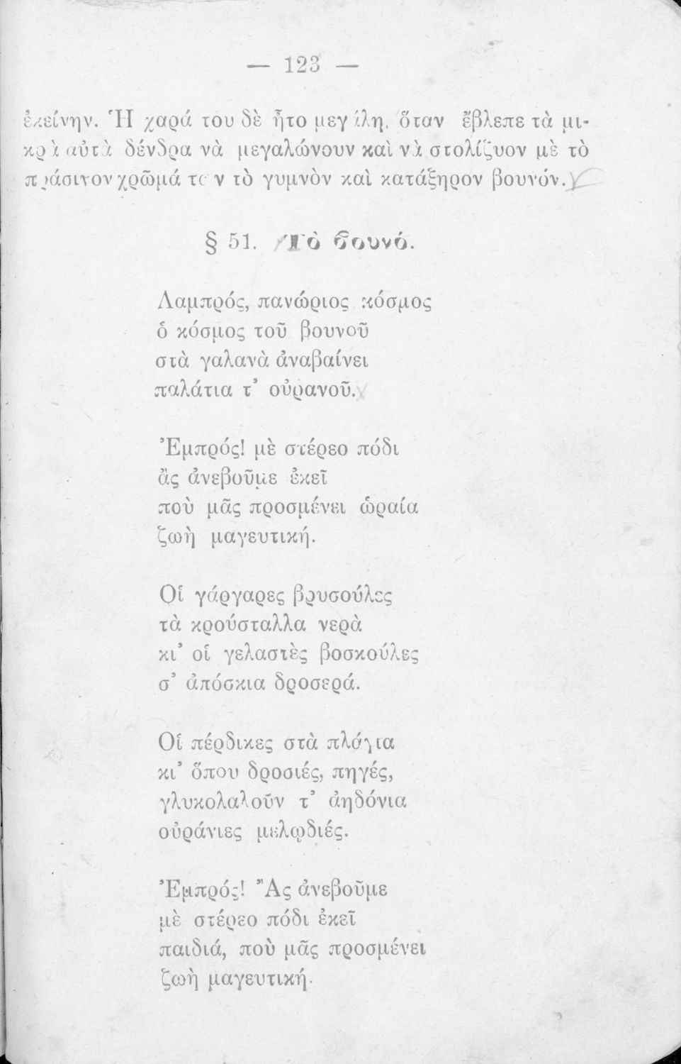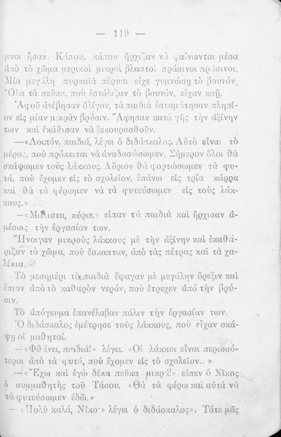 Αναγνωστικό Δ' Δημοτικού που περιέχει πεζά και κείμενα εμπνευσμένα από ιστορικά γεγονότα, τη θρησκευτική και κοινωνική ζωή και τη φύση. Ο συγγραφέας ήταν δάσκαλος.