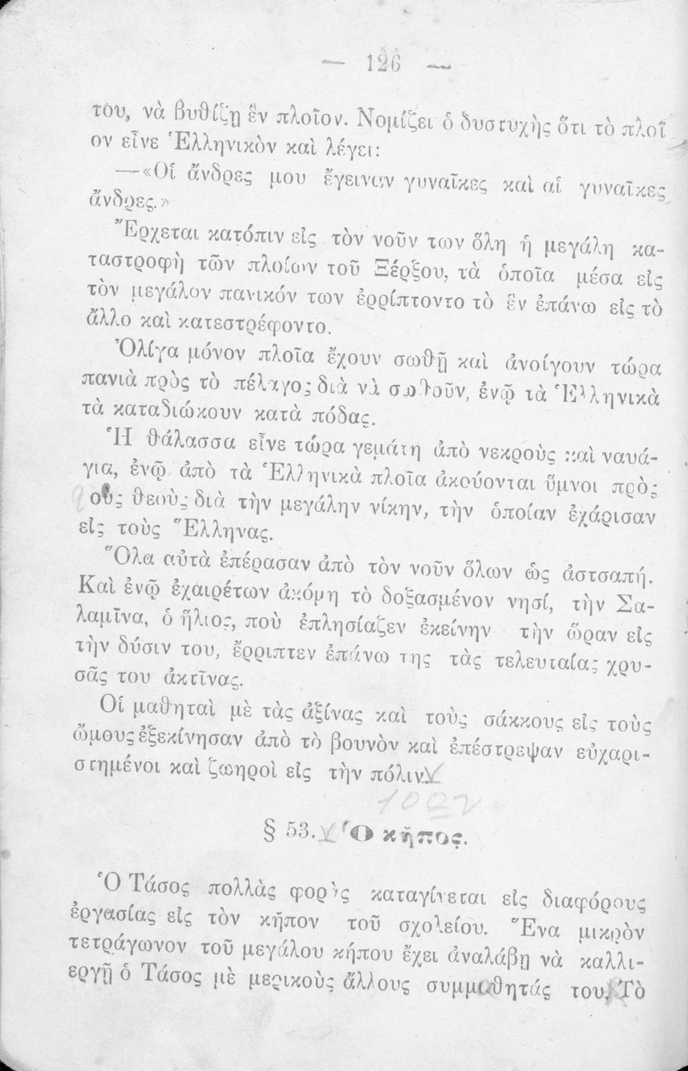 Κωδικός αναγνώρισης: 01-45261 Τίτλος: Ελληνικόν αναγνωσματάριον της Δ΄ τάξεως του Δημ. Σχολείου Συγγραφέας: Γ. Μ. Γεωργιάδης Μέγεθος και υπόστρωμα: Σχολικό εγχειρίδιο, 19εκ., μαλακό εξώφυλλο, 158 σελίδες. Εικόνες (ασπρόμαυρες), σκίτσα (ασπρόμαυρα). |