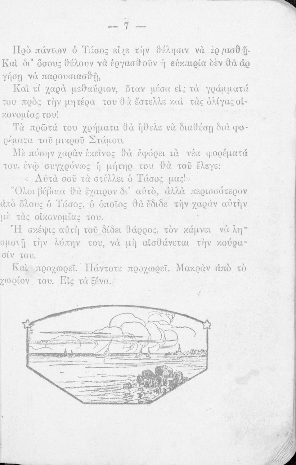 Παρουσίαση περιεχομένου: Αναγνωστικό Δ' Δημοτικού που περιέχει πεζά και κείμενα εμπνευσμένα από ιστορικά γεγονότα, τη θρησκευτική και κοινωνική ζωή και τη φύση. Ο συγγραφέας ήταν δάσκαλος.