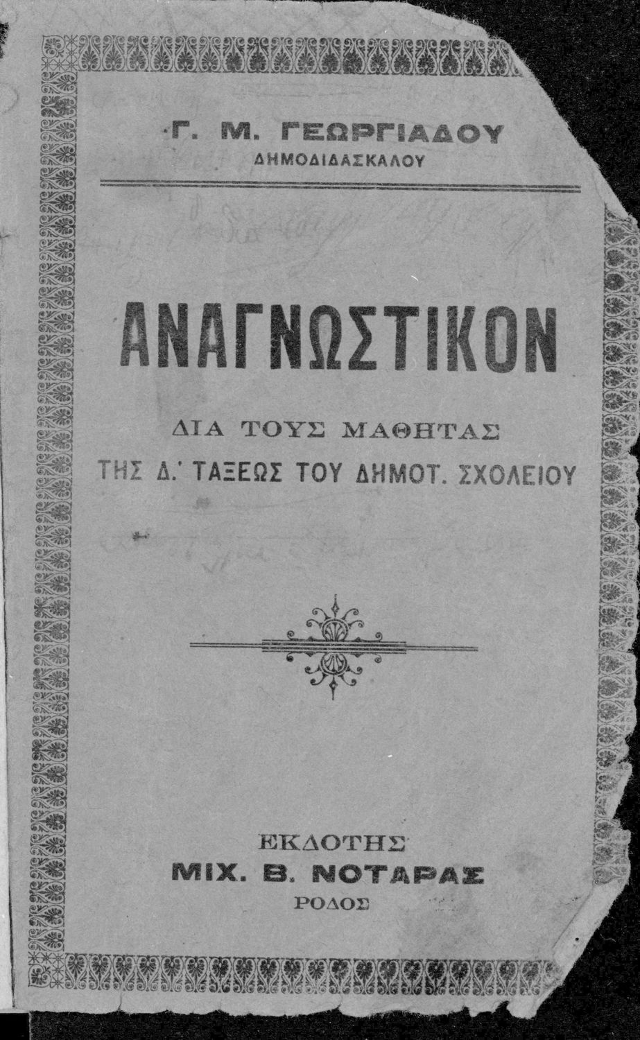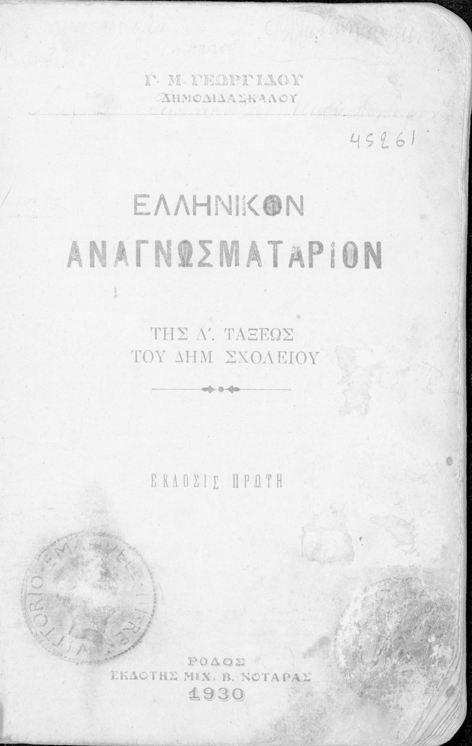 Τίτλος: Ελληνικόν αναγνωσματάριον της Δ΄ τάξεως του Δημ. Σχολείου