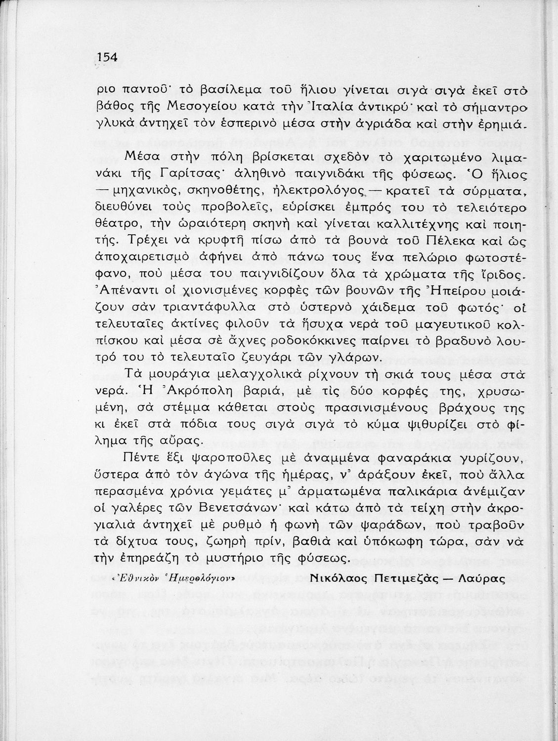 Σχολικό εγχειρίδιο Νέων Ελληνικών Δ' Γυμνασίου που περιέχει πεζά και ποιήματα Ελλήνων συγγραφέων εμπνευσμένα από τη θρησκευτική και κοινωνική ζωή, την ελληνική μυθολογία, την αρχαία και σύγχρονη ελληνική ιστορία, την μεσαιωνική ιστορία και την ελληνική φύση. Περιέχει αποσπάσματα από τη μεσαιωνική γραμματεία και παράρτημα βιογραφίες των συγγραφέων και λεξιλόγιο.