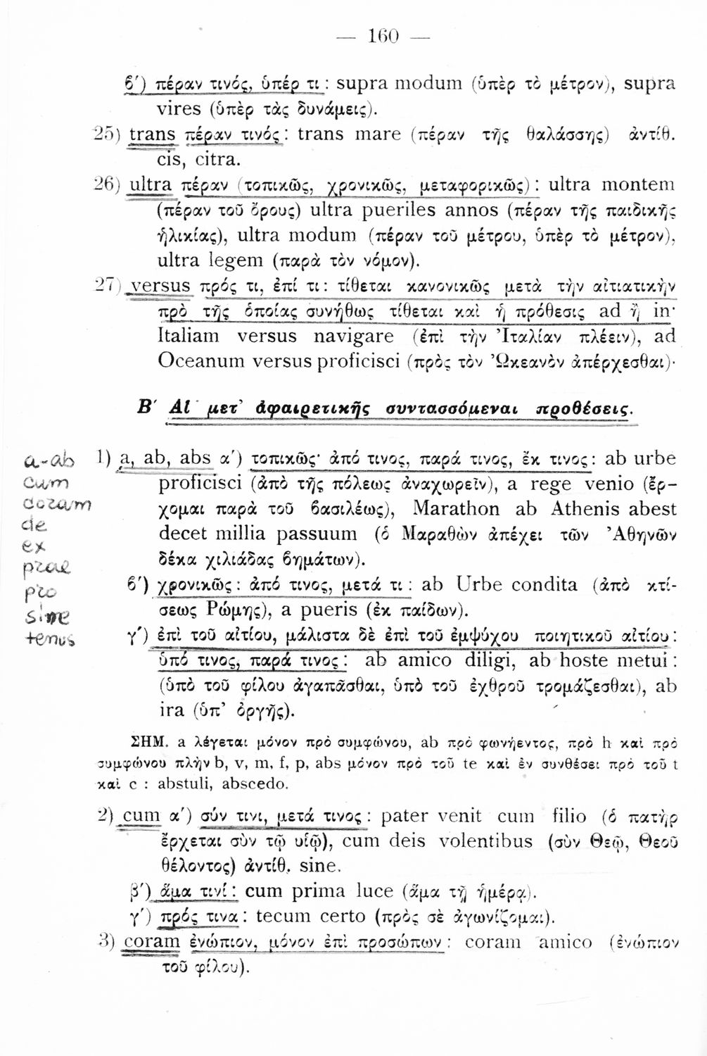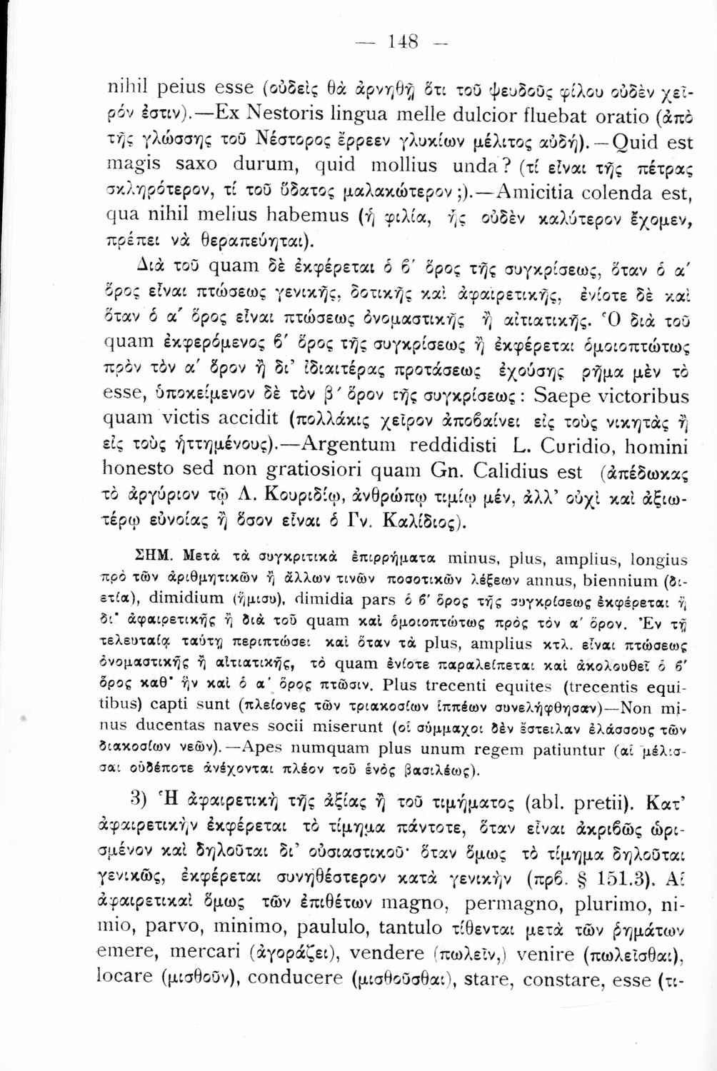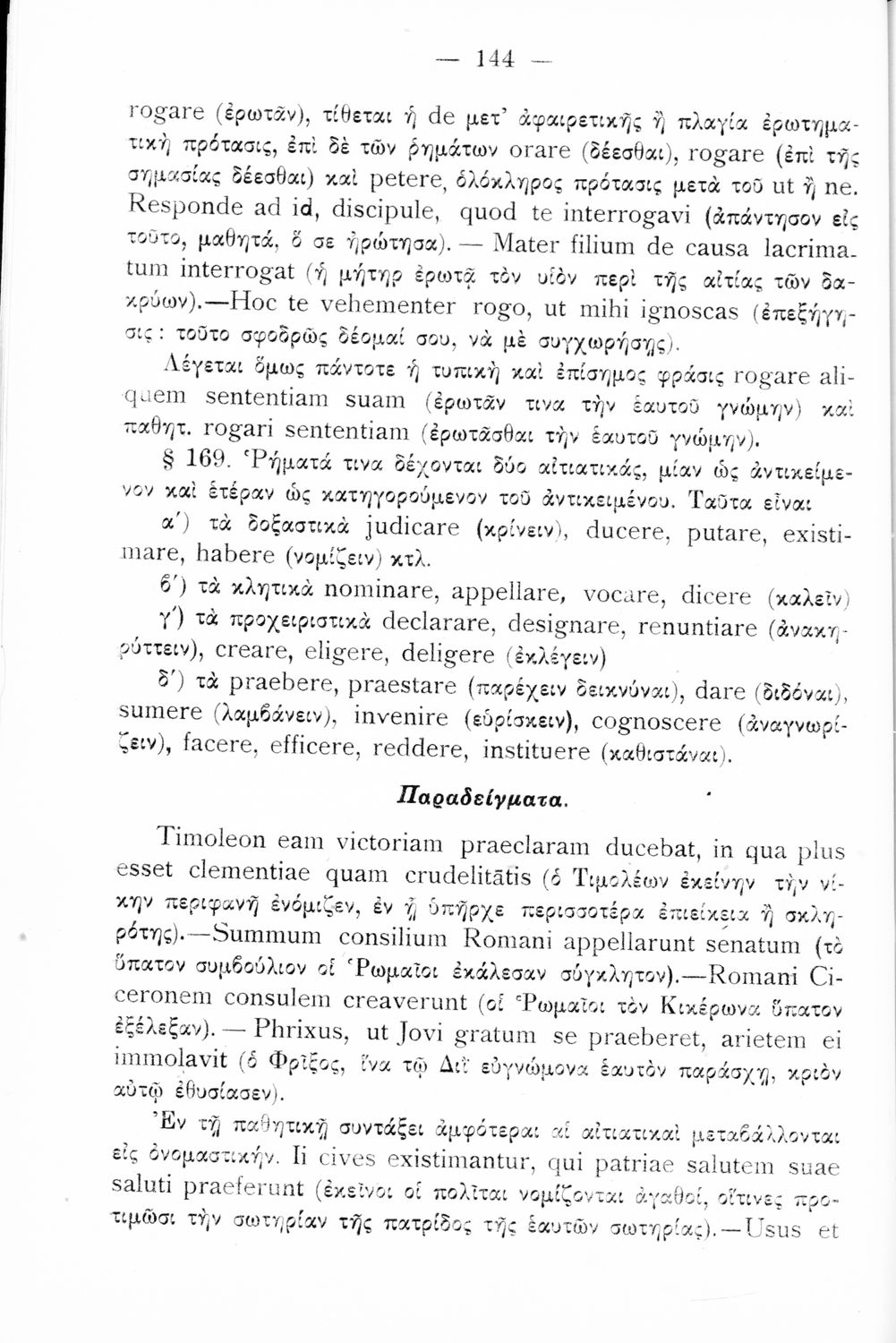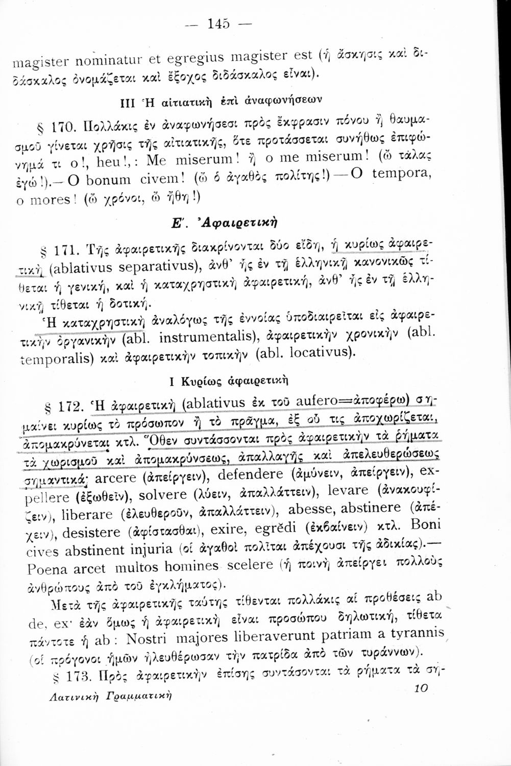 Σχολικό εγχειρίδιο Λατινικών που περιλαμβάνει τη γραμματική της λατινικής και είναι χωρισμένο στο φθογγολογικό, το τυπολογικό και το ετυμολογικό μέρος. Περιέχει και τους συντακτικούς κανόνες και τέσσερα παραρτήματα (Ρωμαϊκό ημερολόγιο, συντετμημένες λέξεις, Ρωμαϊκά νομίσματα, μέτρα και σταθμά και προσωδία - μετρική).