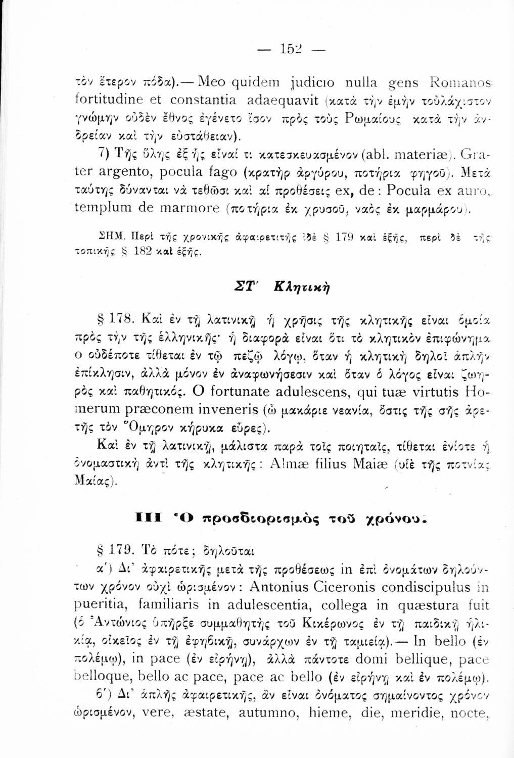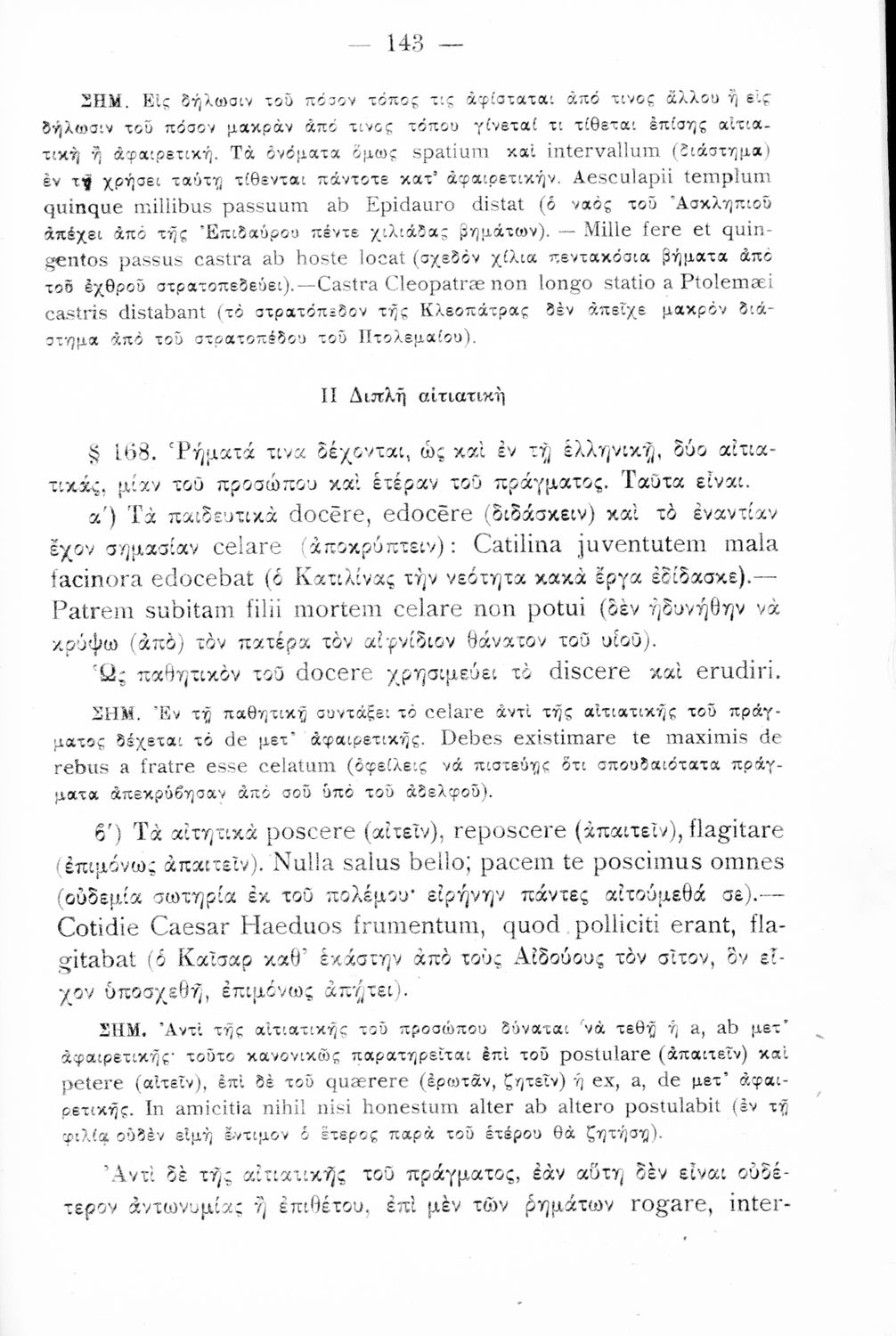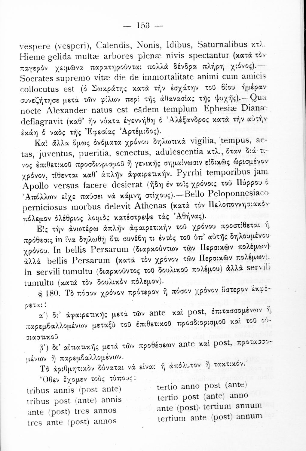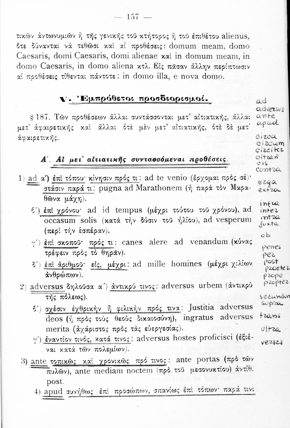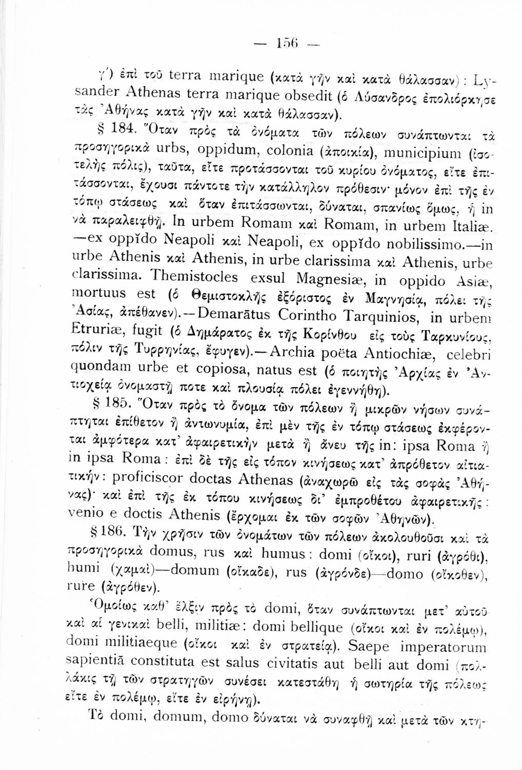Σχολικό εγχειρίδιο Λατινικών που περιλαμβάνει τη γραμματική της λατινικής και είναι χωρισμένο στο φθογγολογικό, το τυπολογικό και το ετυμολογικό μέρος. Περιέχει και τους συντακτικούς κανόνες και τέσσερα παραρτήματα (Ρωμαϊκό ημερολόγιο, συντετμημένες λέξεις, Ρωμαϊκά νομίσματα, μέτρα και σταθμά και προσωδία - μετρική).