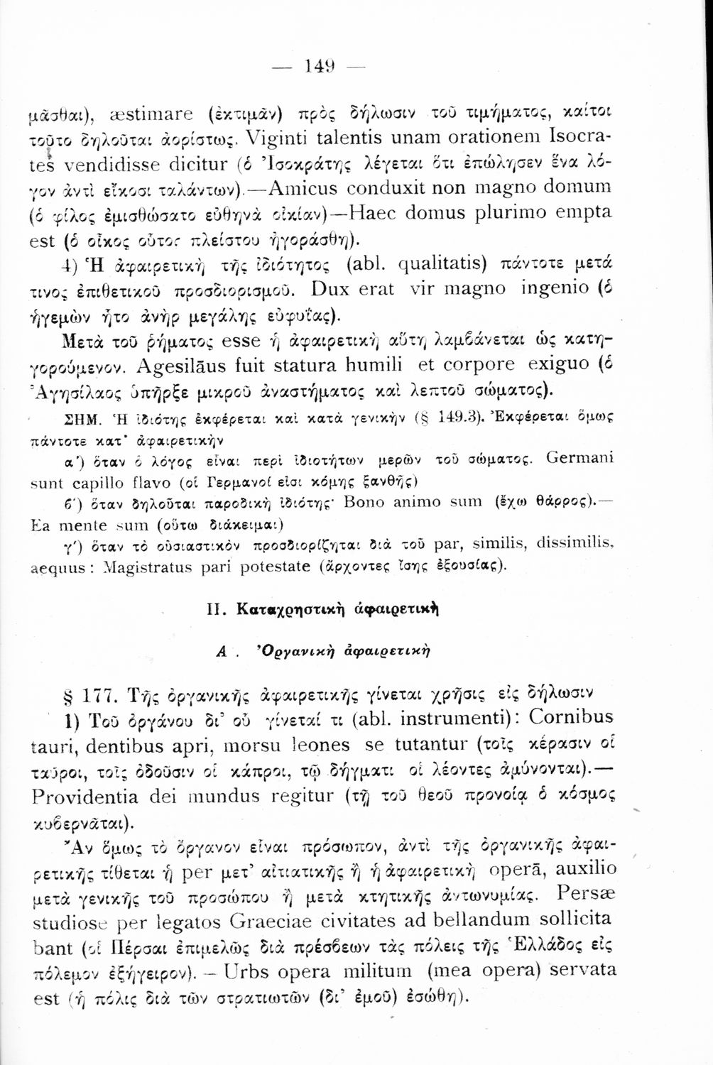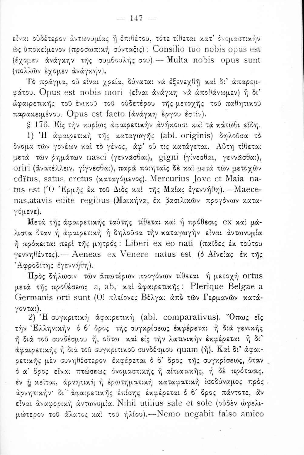 LDR 01457 2200205 4500 035 ## _a01-45263 040 ## _aΙνστιτούτο Εκπαιδευτικής Πολιτικής 041 ## _ael 100 ## _aΙωαν. Κ. Ζουράρης 110 ## _a45263 245 0# _aΛατινική γραμματική προς χρήσιν των Γυμνασίων 250 ## _a2η Έκδοση 260 ## _aΑθήνα _bΙωάννης Ν. Σιδέρης _c1932 300 ## _a231 _c20 520 ## _aΣχολικό εγχειρίδιο Λατινικών που περιλαμβάνει τη γραμματική της λατινικής και είναι χωρισμένο στο φθογγολογικό, το τυπολογικό και το ετυμολογικό μέρος. Περιέχει και τους συντακτικούς κανόνες και τέσσερα παραρτήματα (Ρωμαϊκό ημερολόγιο, συντετμημένες λέξεις, Ρωμαϊκά νομίσματα, μέτρα και σταθμά και προσωδία - μετρική). 522 ## _aΕλλάδα 546 ## _aΚαθαρεύουσα 563 ## _aΣκληρό Εξώφυλλο 583 ## _a44268/12-8-1932 _c1932 650 #4 _aΑνώμαλα ρήματα _aΕνεργητική και παθητική φωνή _aΚλιτά και άκλιτα μέρη του λόγου _aΠτώσεις _aΣυζυγίες _aΣύνδεσμοι _aΥποθετικοί λόγοι