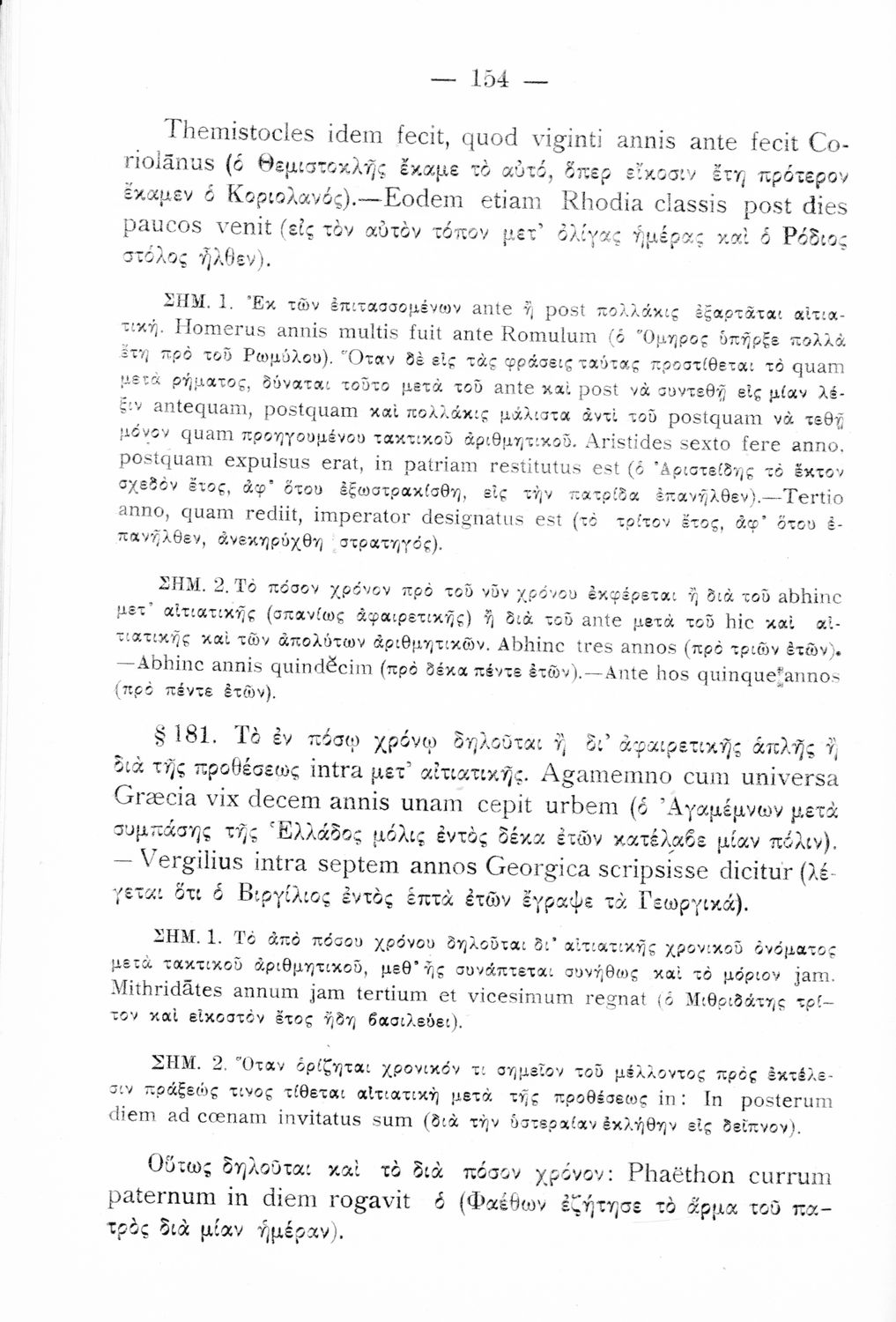 Βαθμίδα εκπαίδευσης: Δευτεροβάθμια Μάθημα: Λατινικά Γλώσσα: Καθαρεύουσα Παρουσίαση περιεχομένου: Σχολικό εγχειρίδιο Λατινικών που περιλαμβάνει τη γραμματική της λατινικής και είναι χωρισμένο στο φθογγολογικό, το τυπολογικό και το ετυμολογικό μέρος. Περιέχει και τους συντακτικούς κανόνες και τέσσερα παραρτήματα (Ρωμαϊκό ημερολόγιο, συντετμημένες λέξεις, Ρωμαϊκά νομίσματα, μέτρα και σταθμά και προσωδία - μετρική). |