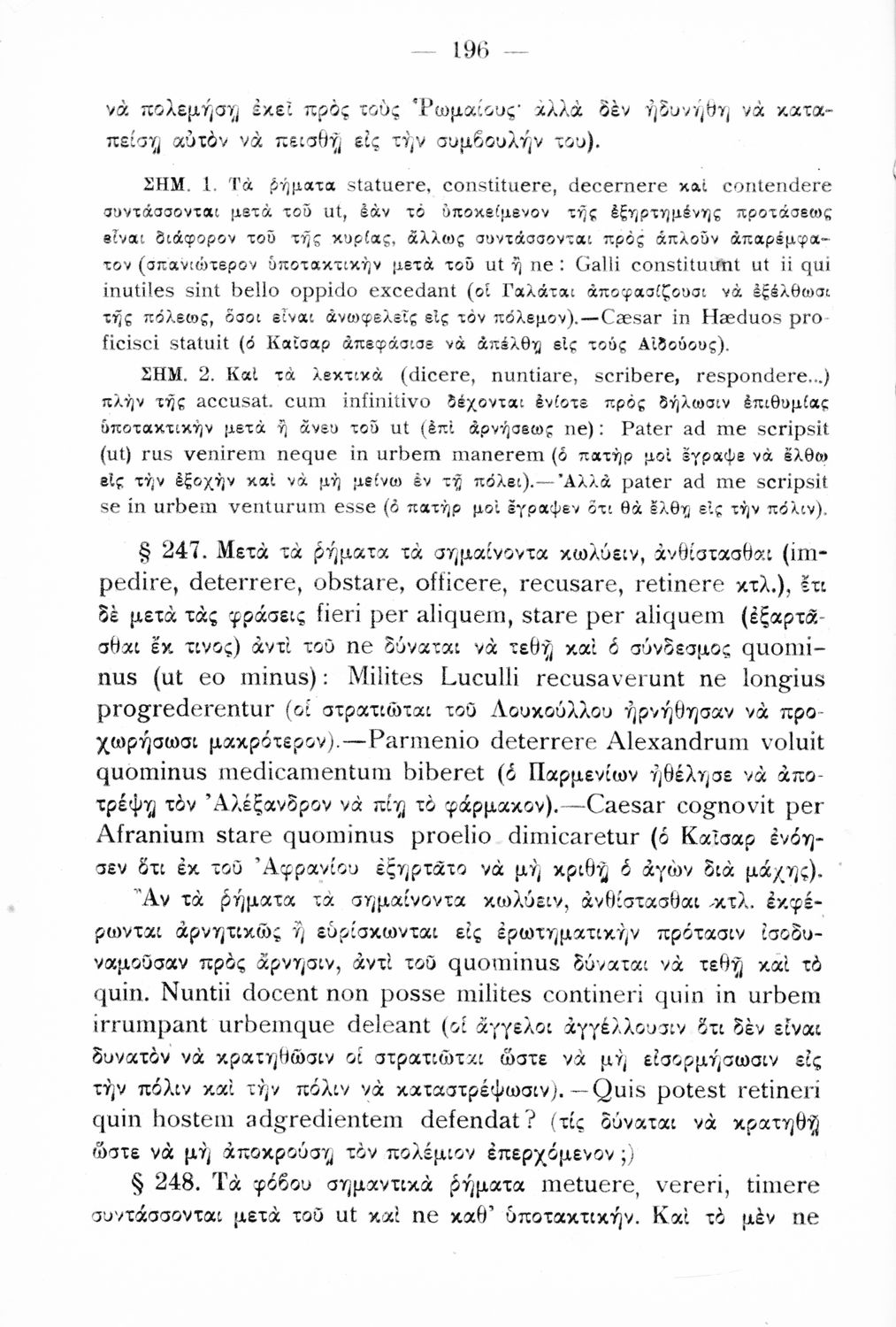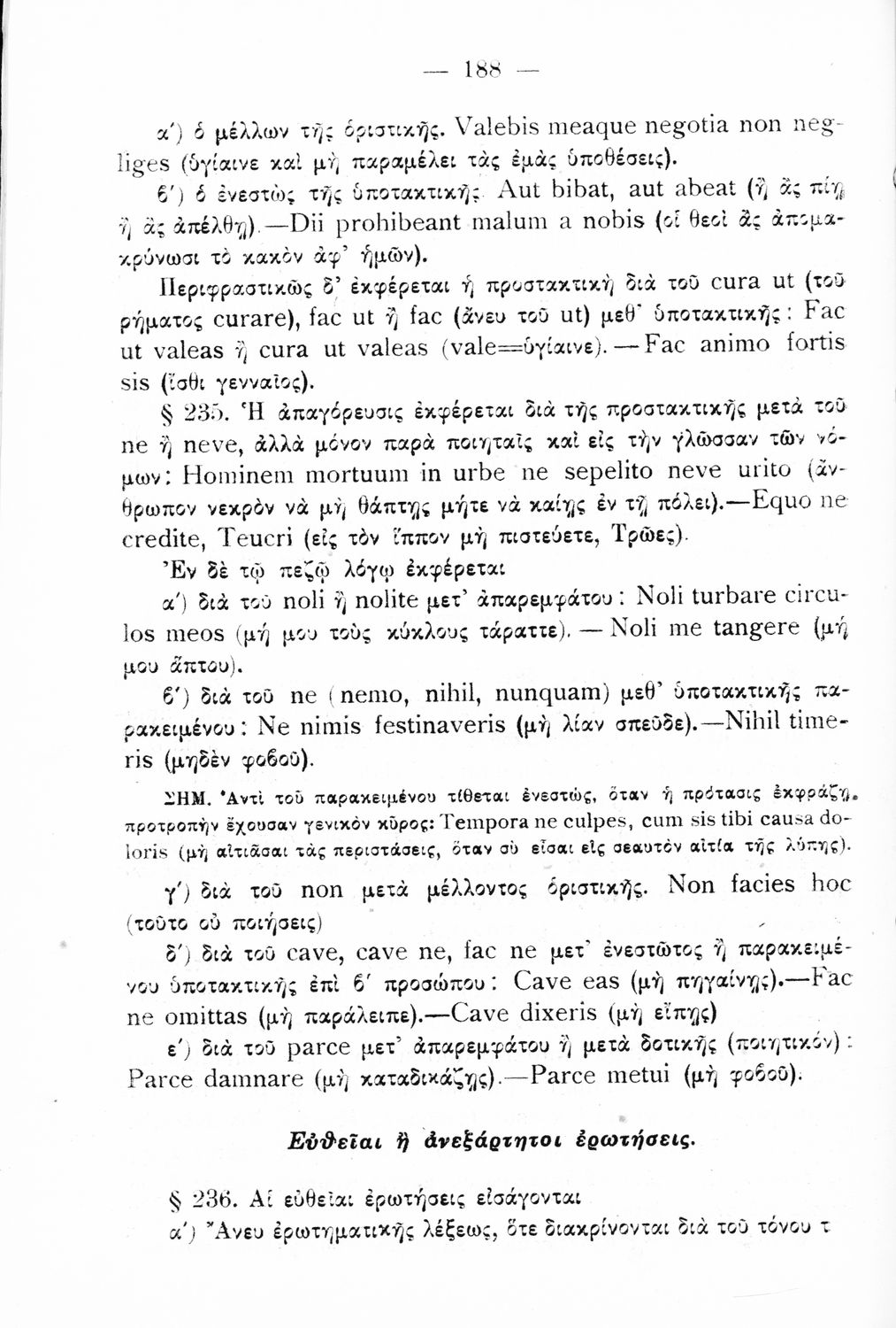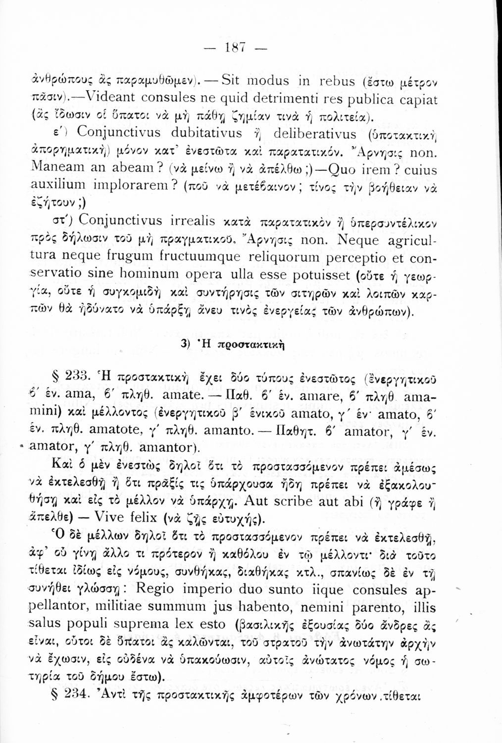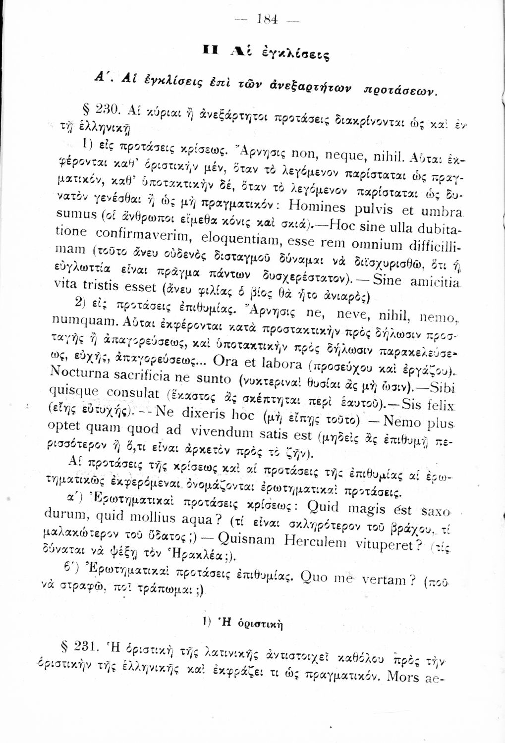 Γραμματικής της λατινικής γλώσσας για τα Ελληνικά Σχολεία και Γυμνάσια που περιέχει δύο τμήματα: το τεχνολογικό που εστιάζει στα μέρη του λόγου και το συντακτικό που ασχολείται με τις πτώσεις, τις εγκλίσεις, ...