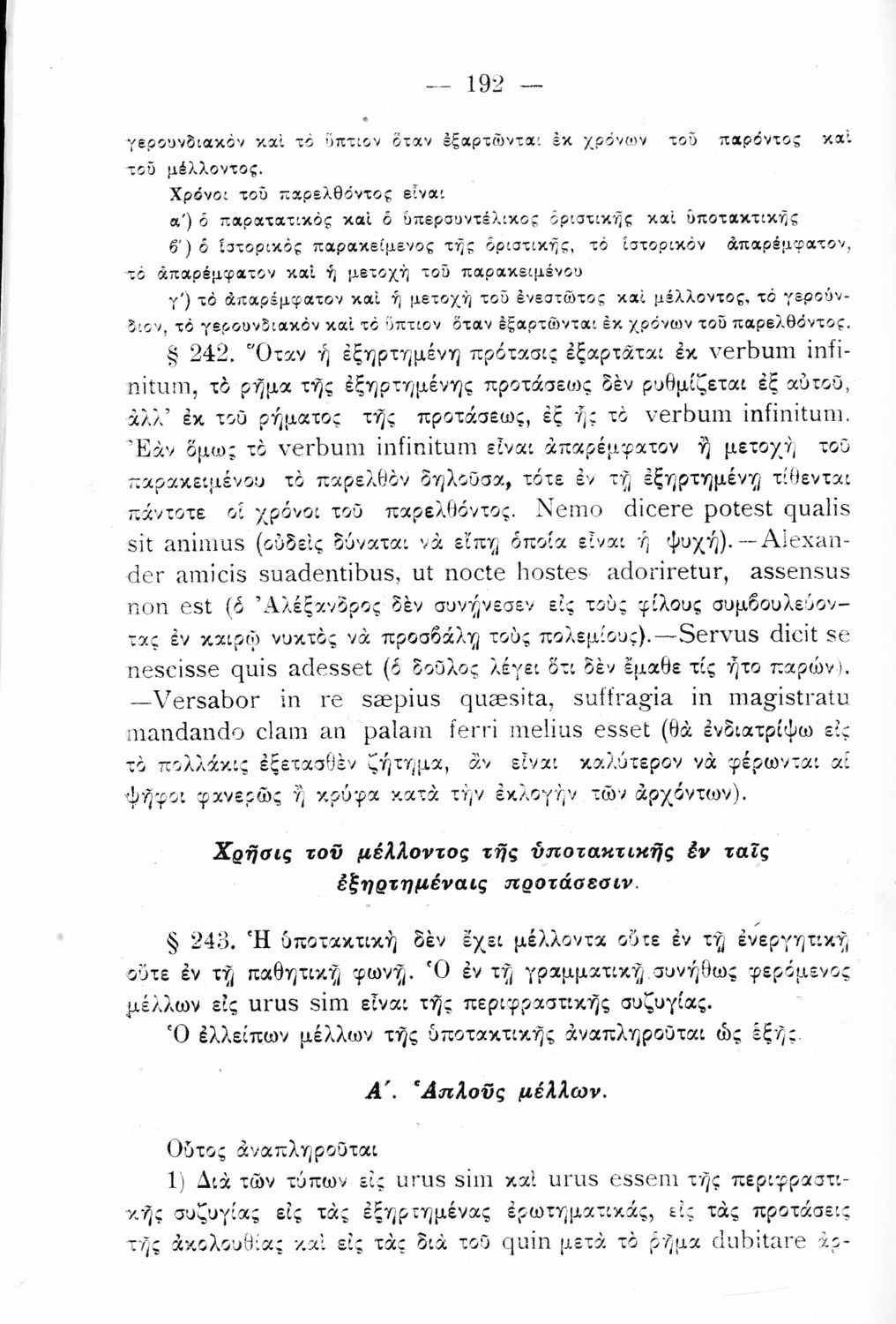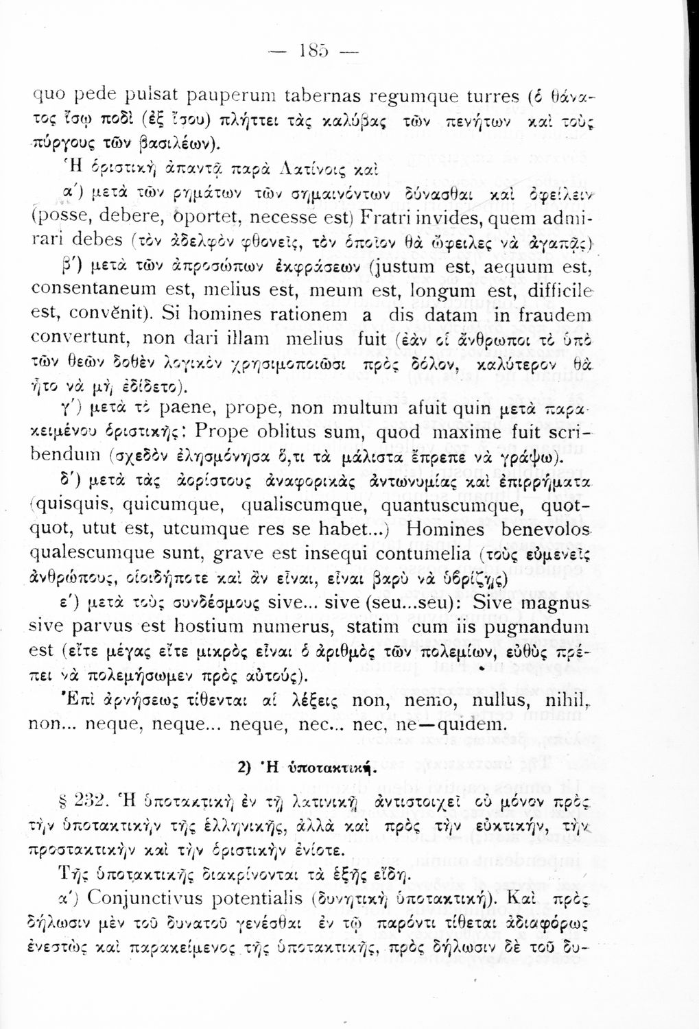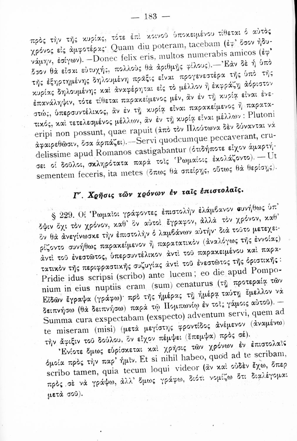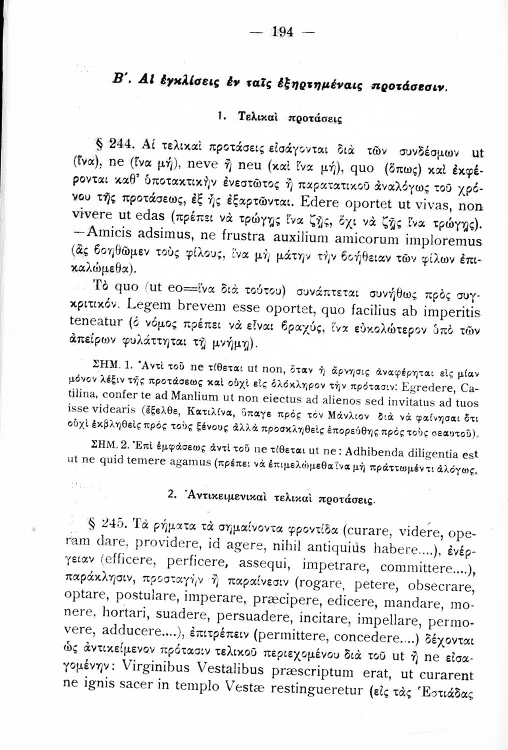 Γραμματικής της λατινικής γλώσσας για τα Ελληνικά Σχολεία και Γυμνάσια που περιέχει δύο τμήματα: το τεχνολογικό που εστιάζει στα μέρη του λόγου και το συντακτικό που ασχολείται με τις πτώσεις, τις εγκλίσεις, ...