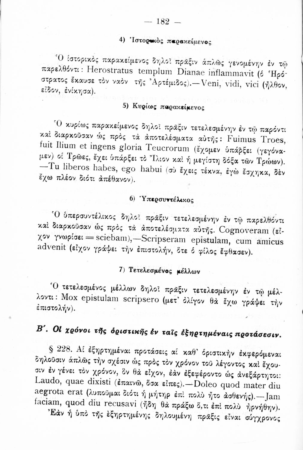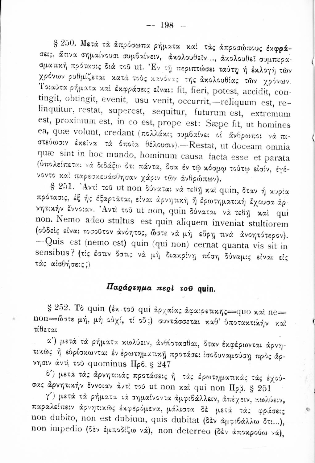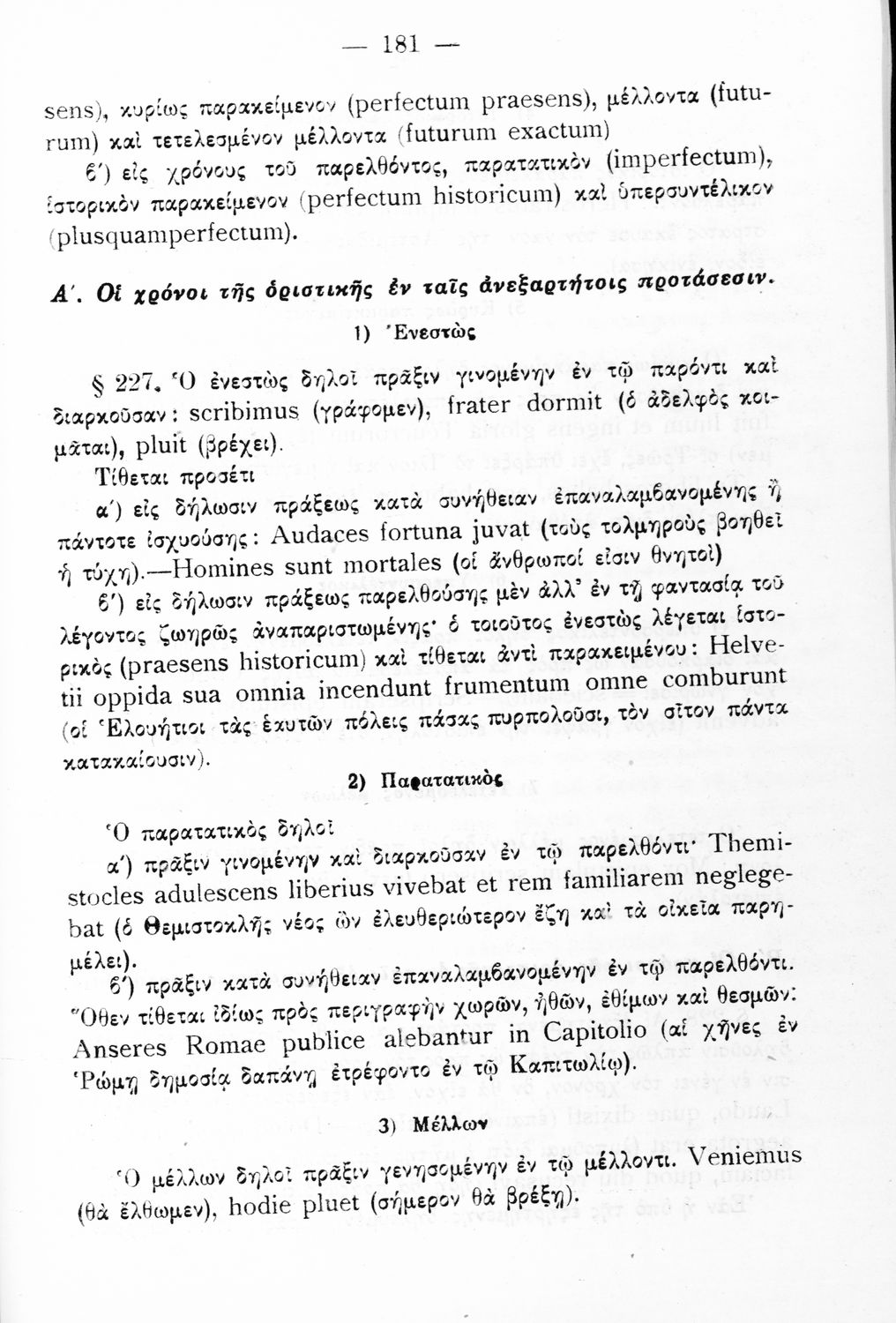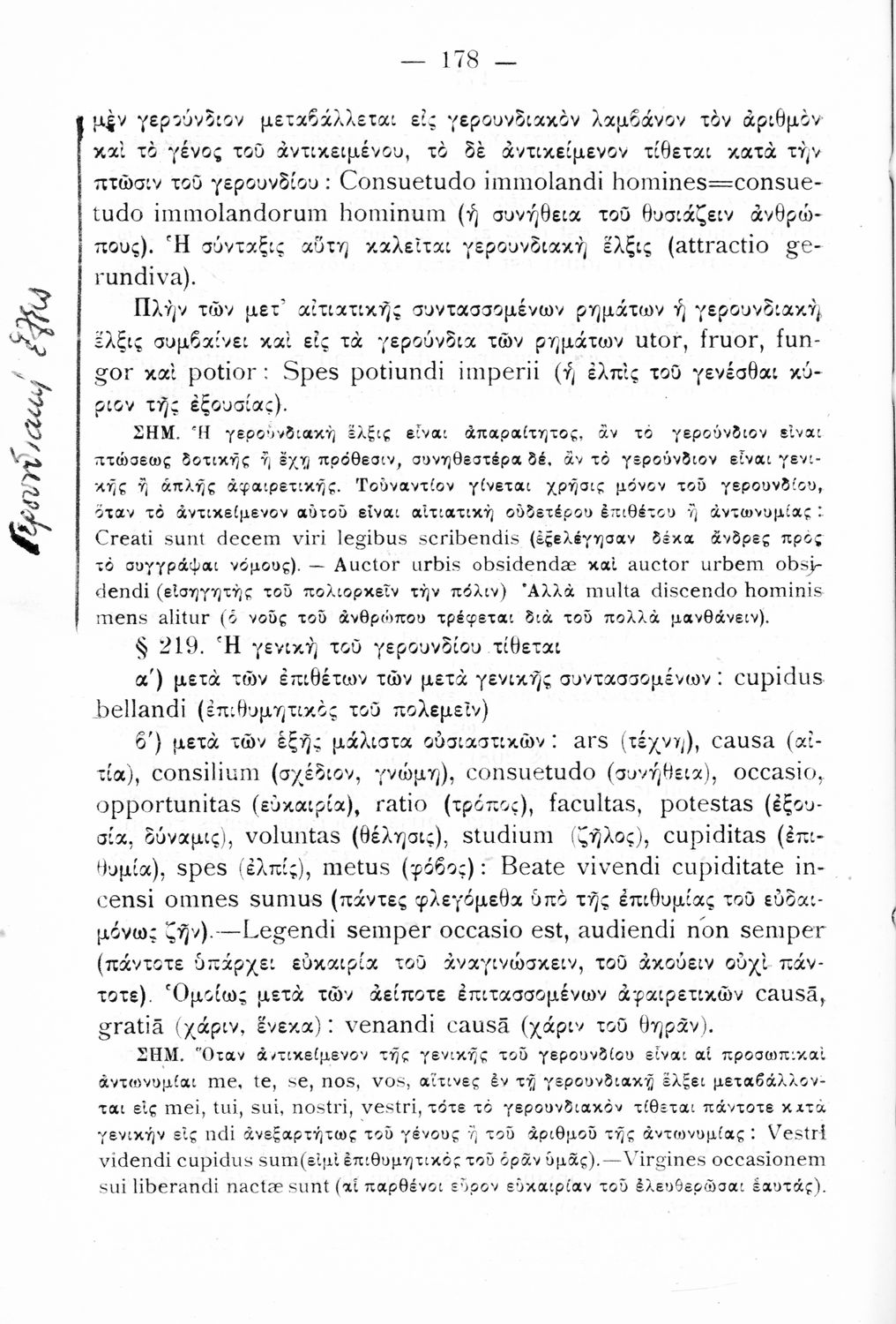 Γραμματικής της λατινικής γλώσσας για τα Ελληνικά Σχολεία και Γυμνάσια που περιέχει δύο τμήματα: το τεχνολογικό που εστιάζει στα μέρη του λόγου και το συντακτικό που ασχολείται με τις πτώσεις, τις εγκλίσεις, ...